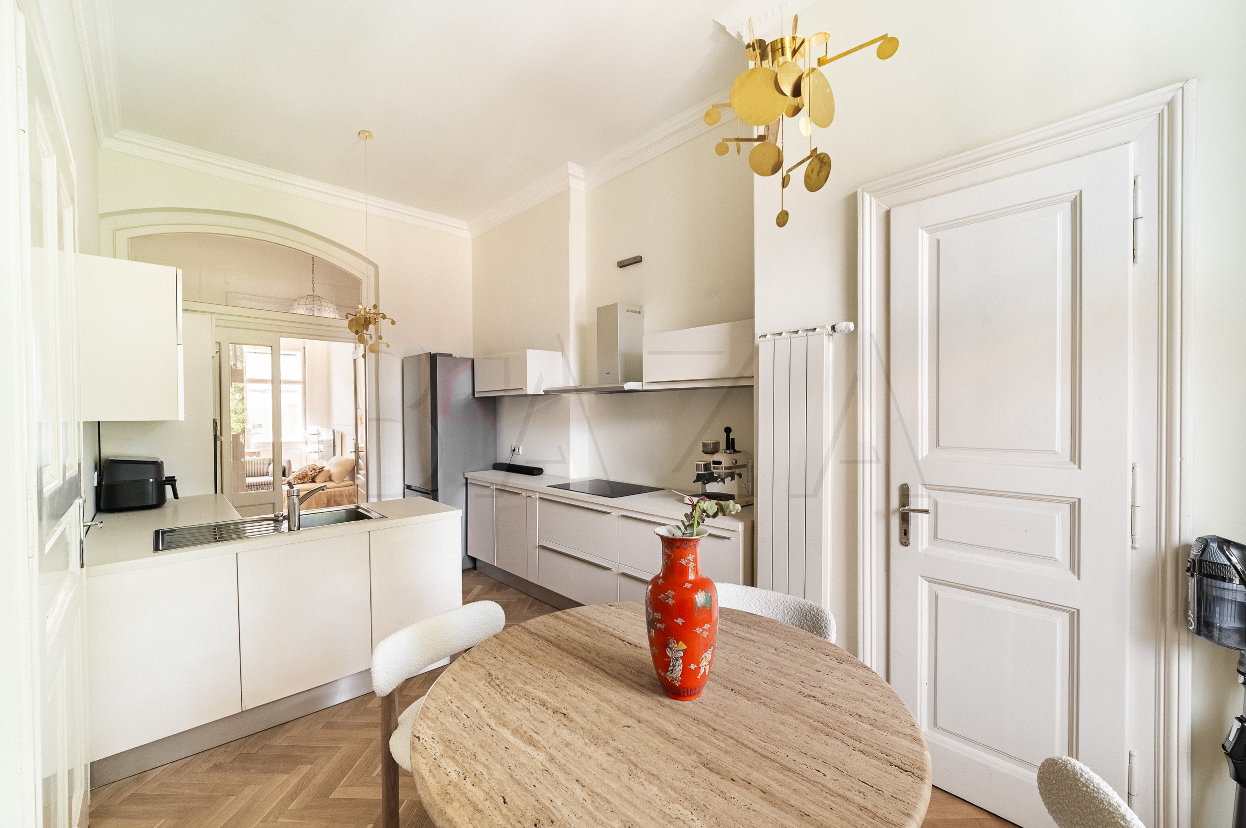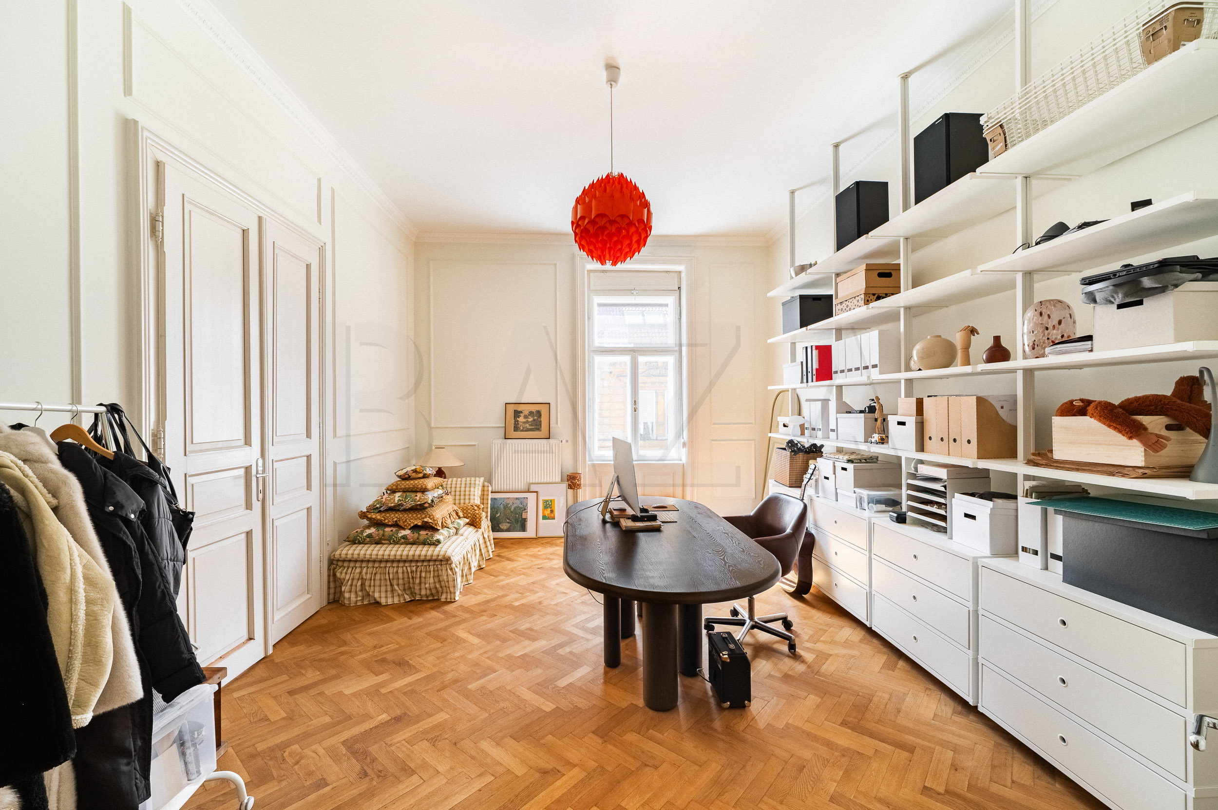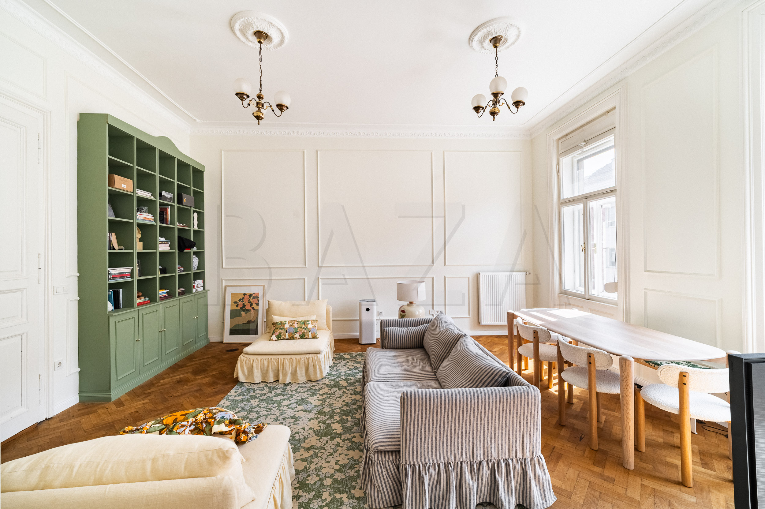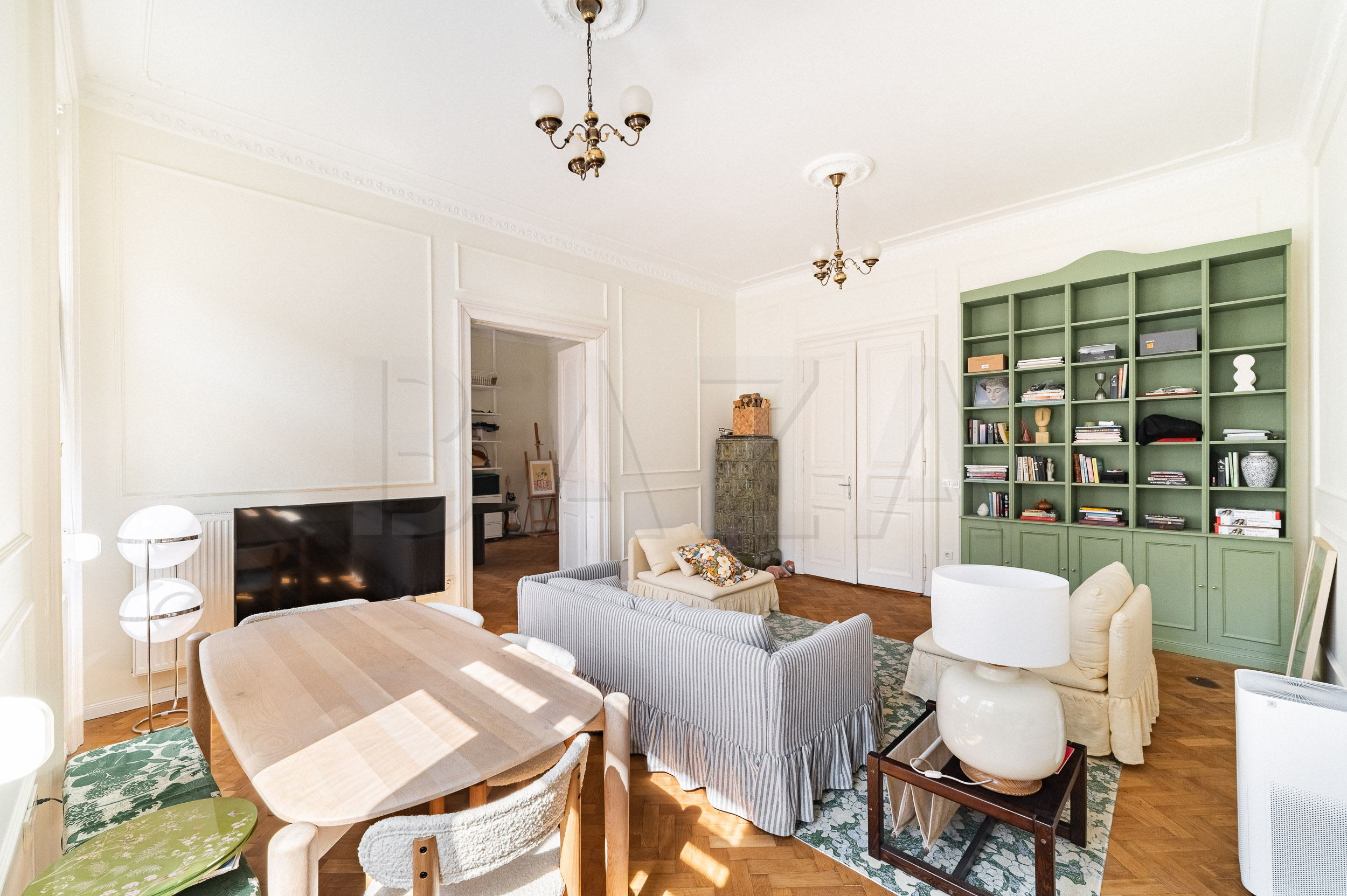 Our first owned property was a newly built house in Radvanje. After two years, we realized we were more drawn to life in the city center, where we had lived before. We love the old-town style. When we began searching for a new apartment, we wanted high ceilings, lots of natural light, a balcony, parking, preserved original building elements, spaciousness (since I work from home, I need an extra room for my office), and a well-maintained building in a good central location. We were looking for an apartment in as original condition as possible.