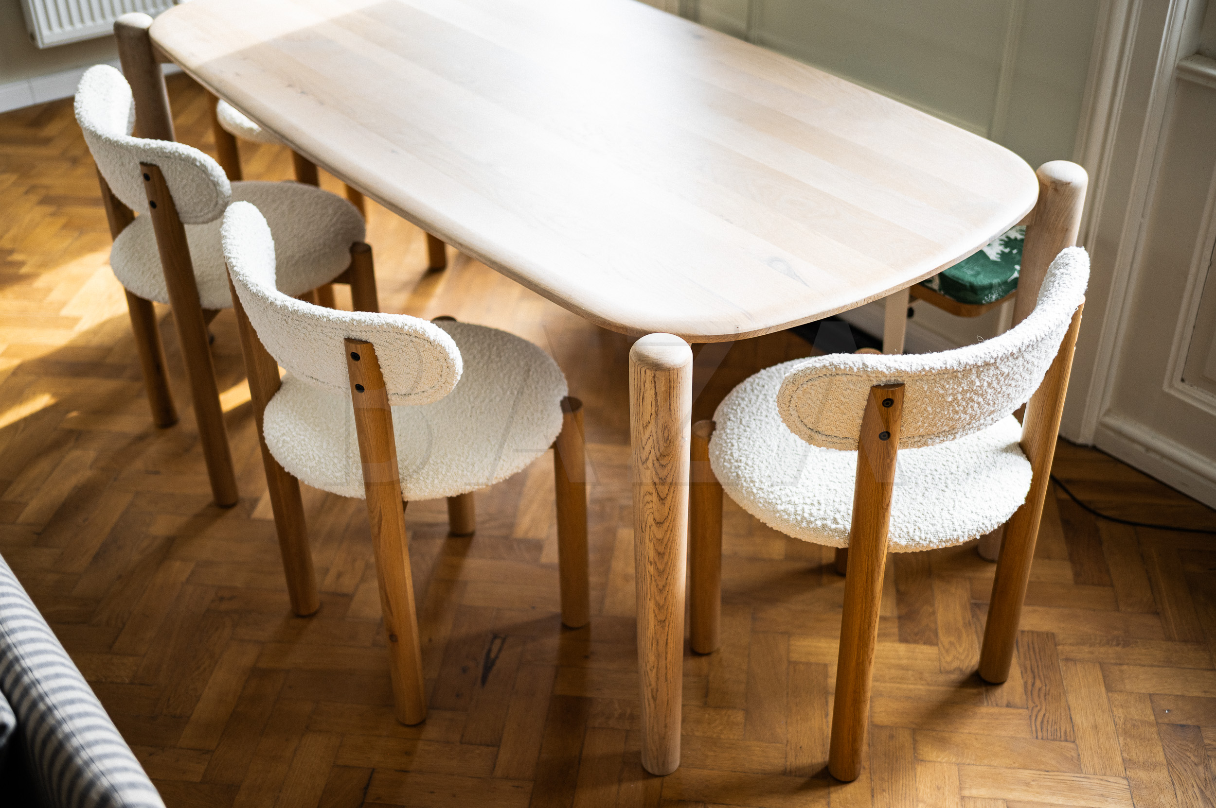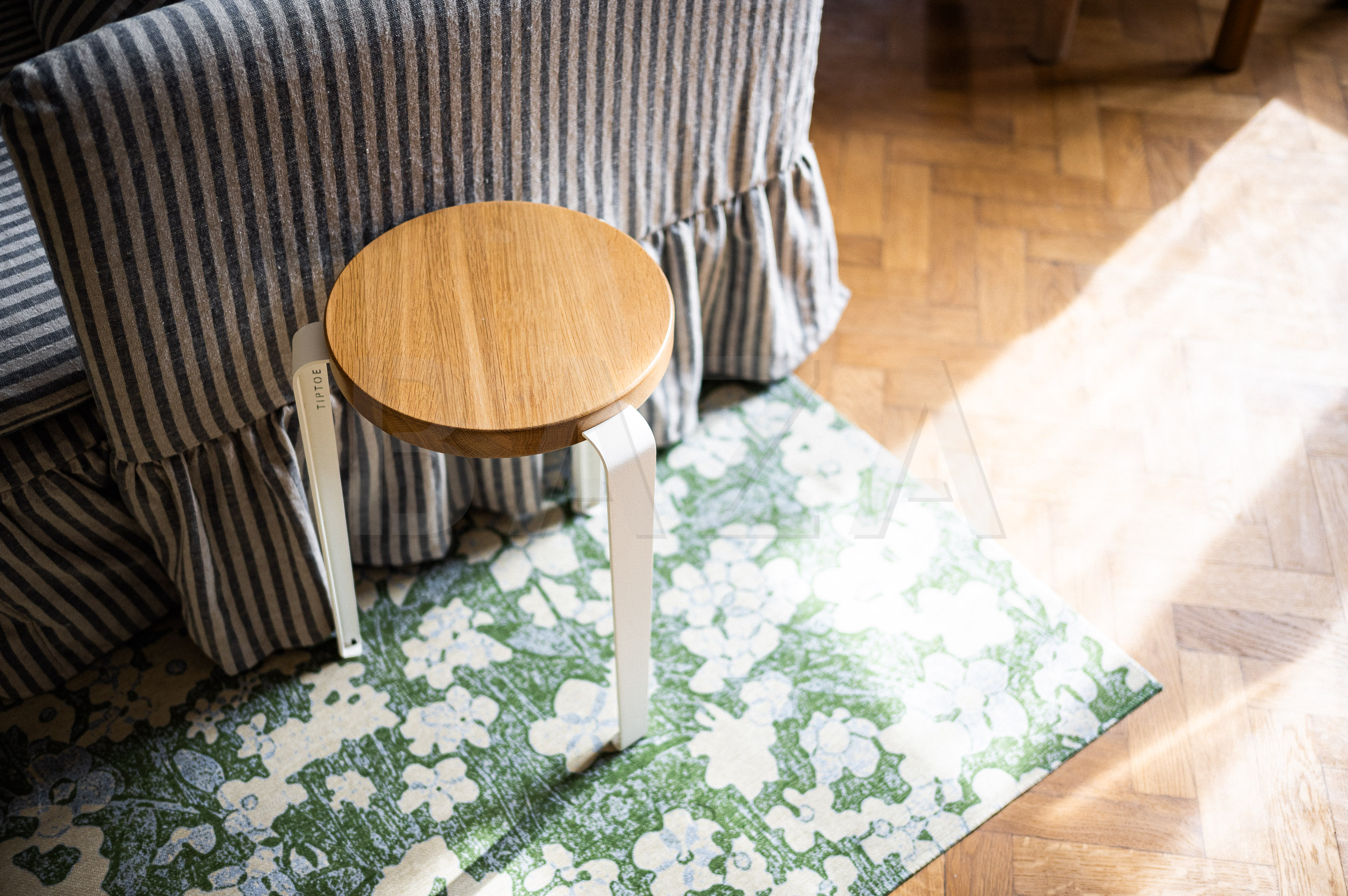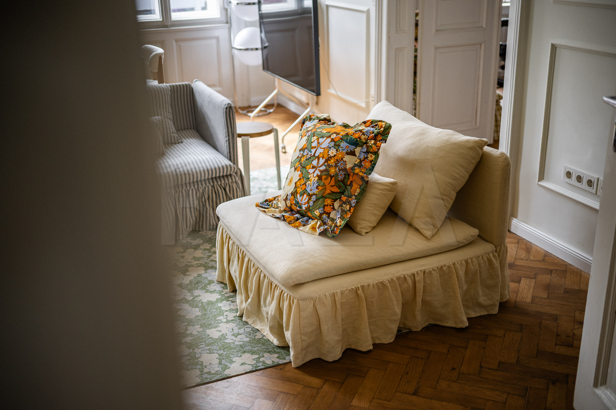 Alja Horvat is one of the most recognizable Slovenian illustrators of the younger generation. Her patterns adorn textiles, prints, and products around the world, but she found her greatest creative freedom at home – quite literally. Together with her partner Niko, she embarked on the renovation of an old bourgeois apartment in the center of Maribor. They purchased the apartment with high ceilings, original windows, and characteristic parquet flooring with a clear goal: to preserve its character and soul, while completely renovating it according to their own ideas and needs.