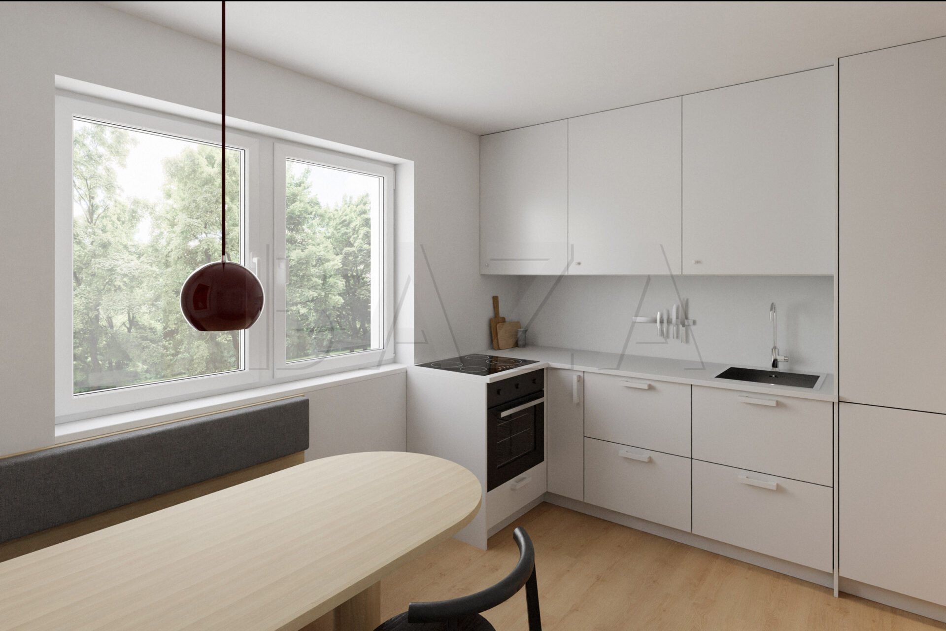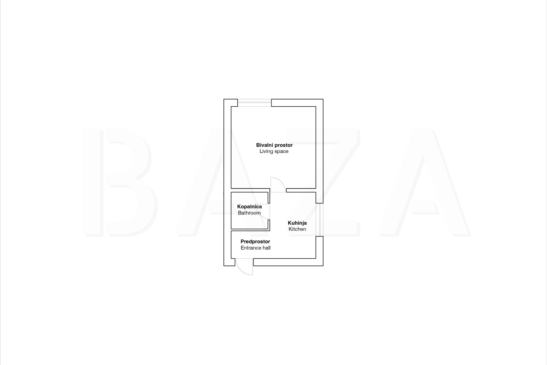 The spaces are functionally designed for optimal use of the area and comfortable living. The floor plan includes an entrance hall, kitchen with dining area, bathroom, and a larger room designed as a living area with the possibility of arranging a separate bedroom. The apartment includes a spacious basement storage room and shared use of common areas – bicycle storage and drying room. The building also offers access to an inner green courtyard intended for all floor owners, with arranged individual gardens for growing vegetables, herbs, or ornamental plants. Parking is available in front of the building.