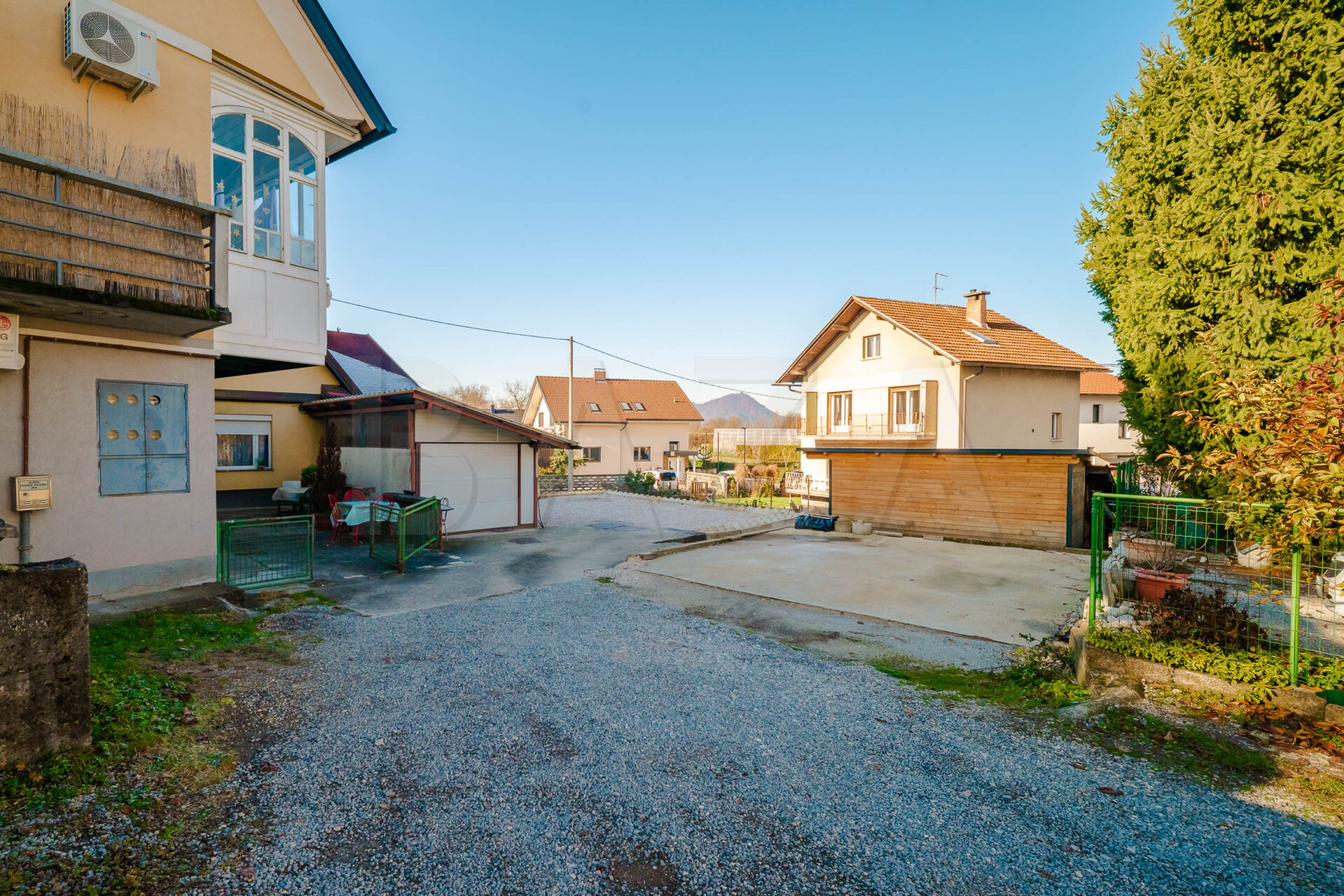 The floor plan includes a stylish living room with kitchen, spacious bedroom, attic bathroom, and storage room. From the living room, there is access to a beautiful terrace with a view of Šmarna gora. The apartment includes a vegetable garden, garden shed (8 m2), and the use of parking spaces for two cars.