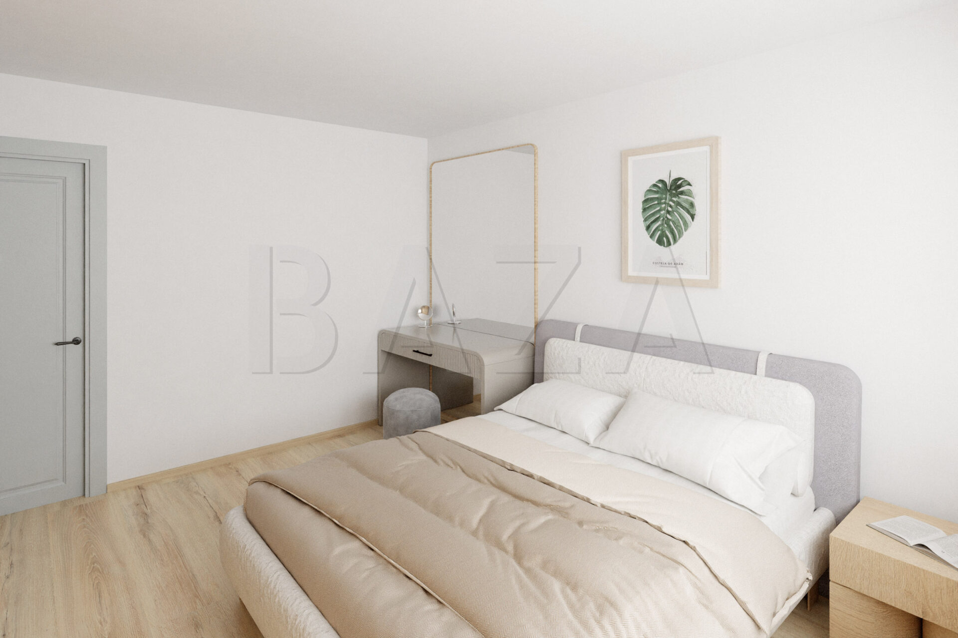 Stanovanje ponuja funkcionalno razporeditev s spalnico, kuhinjo z jedilnico, predprostorom, balkonom, kopalnico s prho, dnevno sobo in kabinetom. Stanovanje je orientirano proti vzhodu (kuhinja, jedilnica, kabinet) in zahodu (spalnica, dnevna soba). Posebnost stanovanja je njegova zasnova, ki omogoča visoko stopnjo prilagodljivosti tlorisa ter različne razporeditve prostorov glede na želje kupca. Stanovanje je mogoče preurediti tudi v tri ali več sobno enoto.