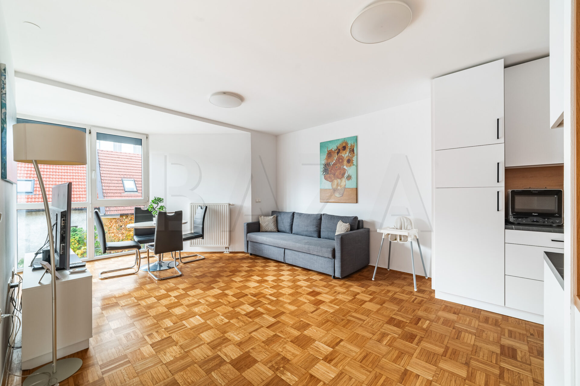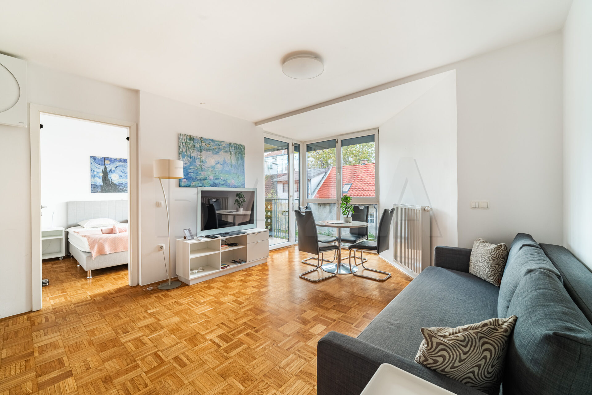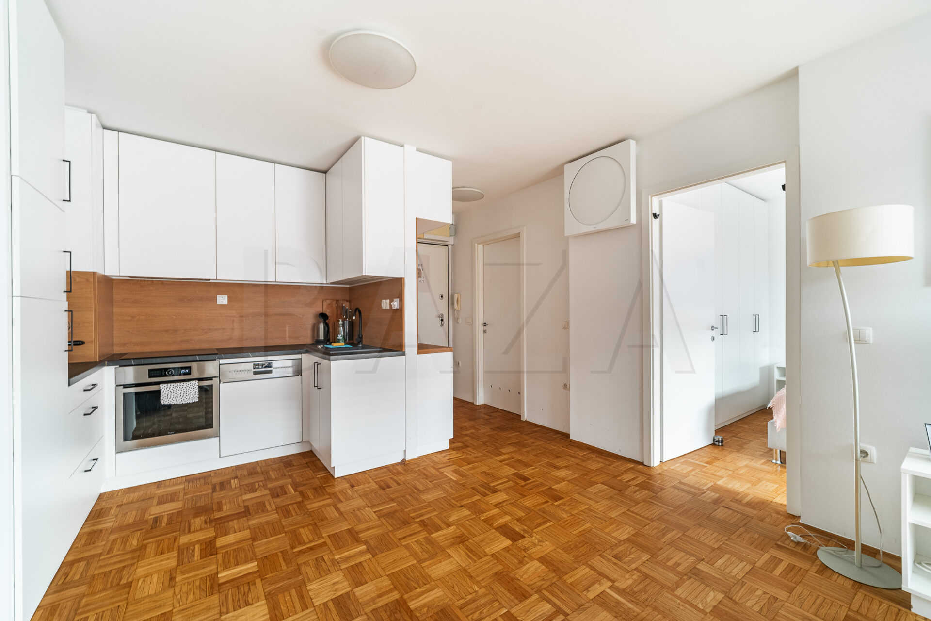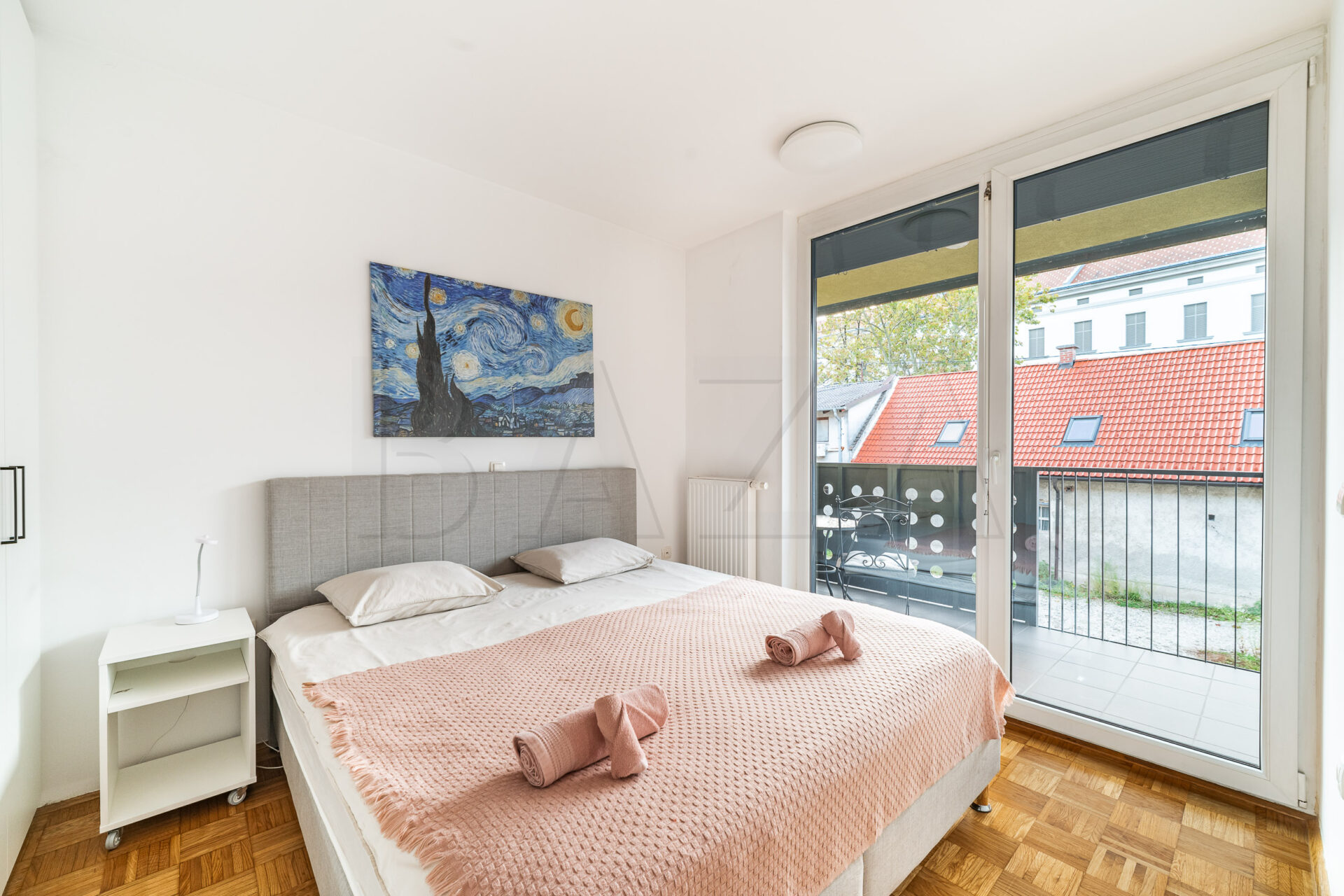 In the well-maintained neighborhood of Mesarska in the heart of Ljubljana, we offer for rent an exceptionally pleasant and bright 2-room apartment with a balcony and a parking space in the underground garage. The apartment is located on the 1st floor of a well-kept building with an elevator. The location provides proximity to the city center, a quiet environment without traffic, and direct access to green and recreational areas (Golovec, walking trails).