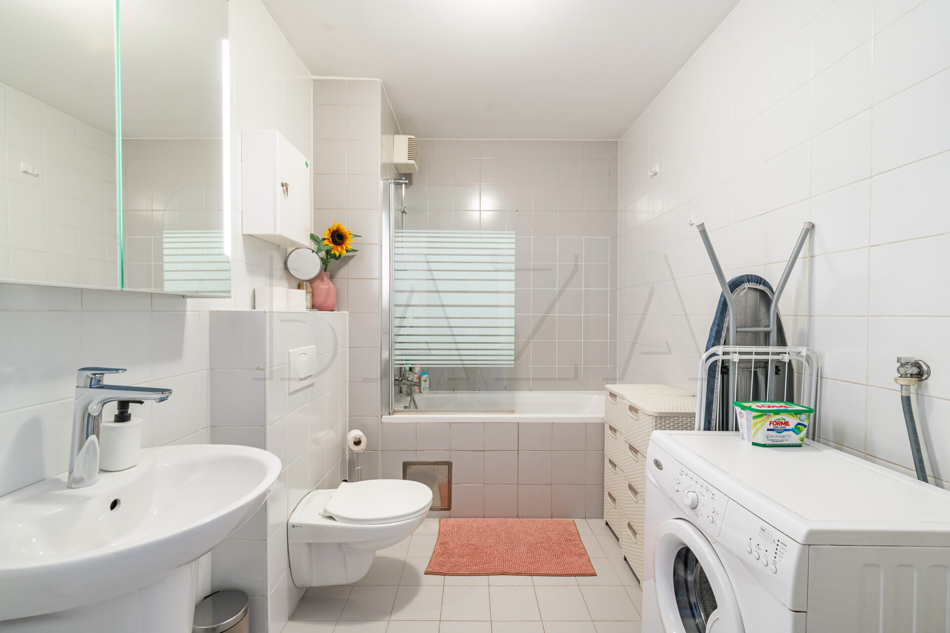Heating and cooling are centralized via district heating (radiators), cooling is provided by air conditioning (in the living room). Average monthly costs depend on usage and are relatively low, around 220 EUR per month (heating and hot sanitary water, electricity, water, electricity demand, fiber optic internet). A functioning internet connection is already established in the apartment.