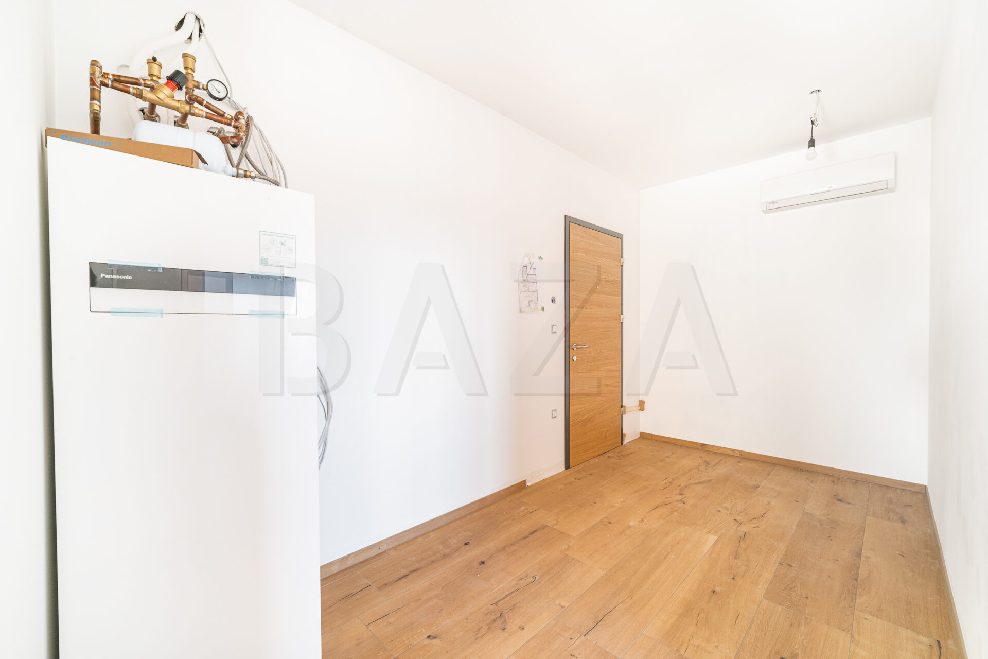 The apartment will have a separate system for heating and cooling the rooms and sanitary water with a heat pump and built-in wall convector.