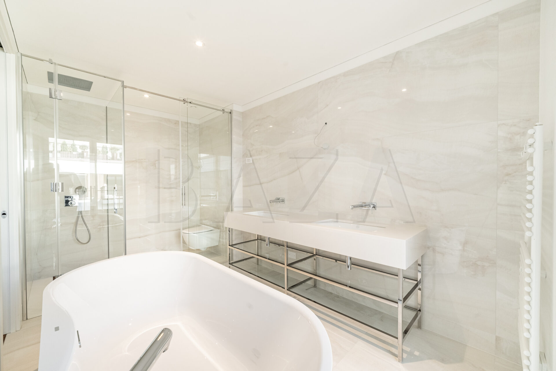 The building has a 24-hour reception. The apartment has modern, easy-to-manage installations. The living areas of the apartment are heated and cooled with underfloor heating and cooling, additionally cooled with convectors in the suspended ceiling, and the bathrooms have installed panel radiators. The building is connected to the hot water heating network. The apartment is ventilated with centrally installed devices that provide maximum comfort and easy operation.