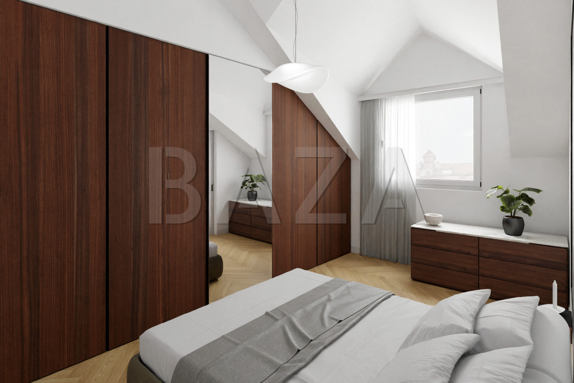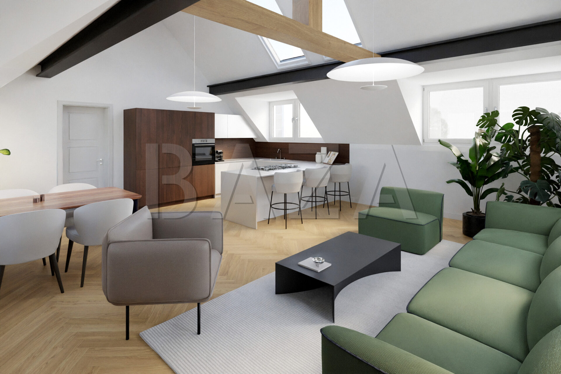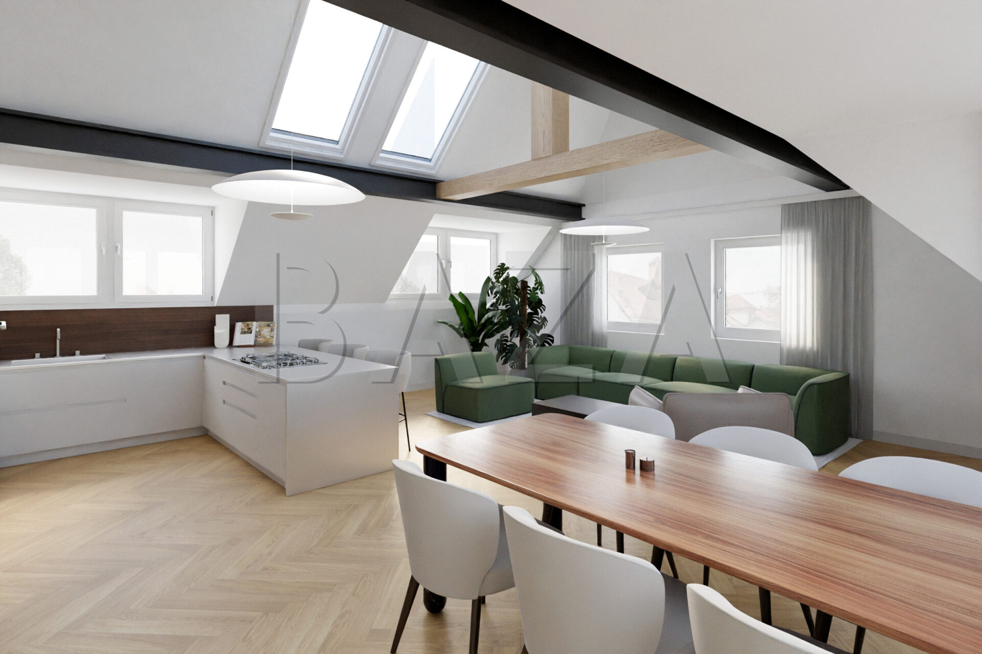 In a unique location in the old town center, a rare opportunity is offered to purchase an unfinished attic with a private garden. It is situated in one of the most beautiful late Baroque buildings in Ljubljana. The picturesque street offers shops, restaurants, cafes, city