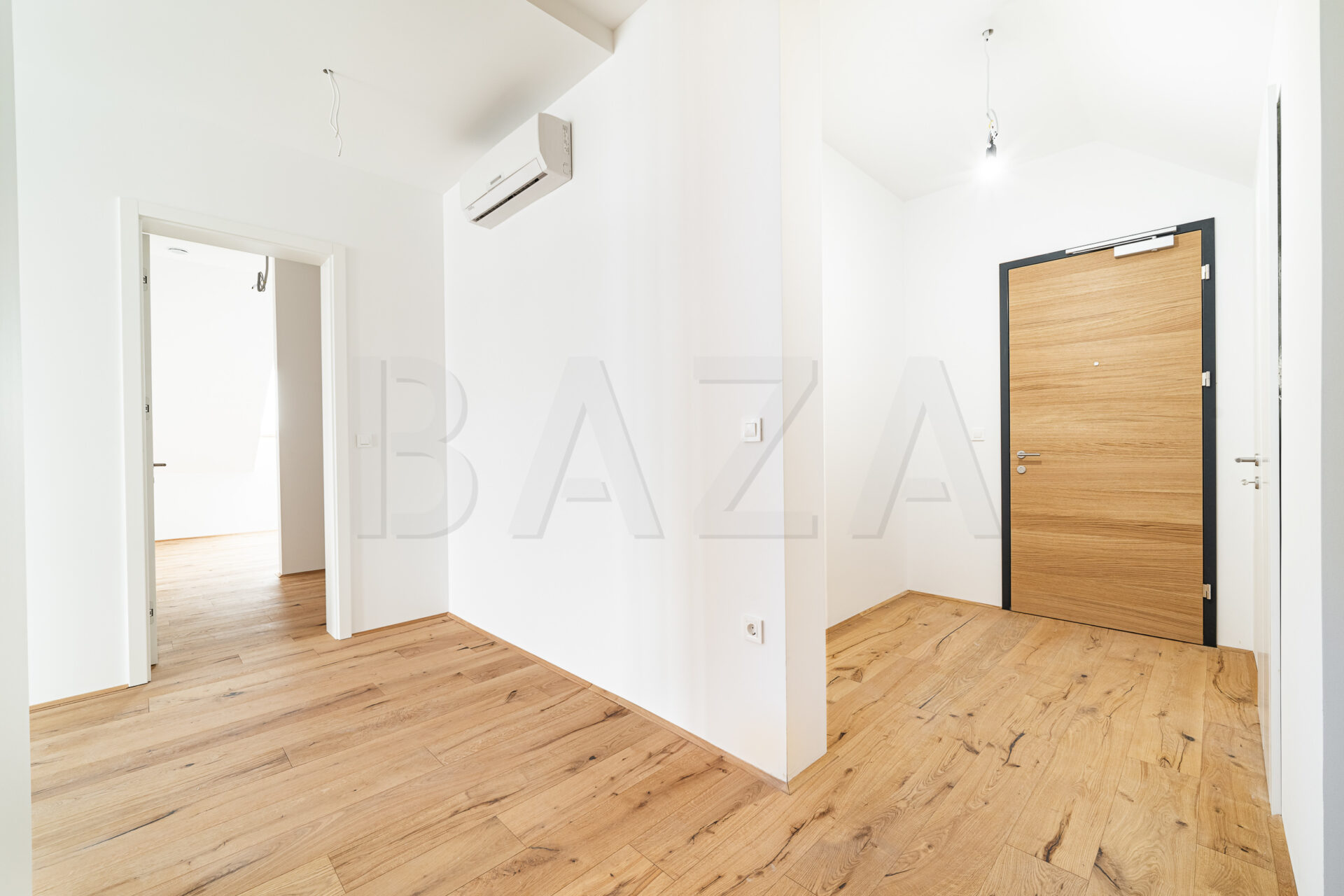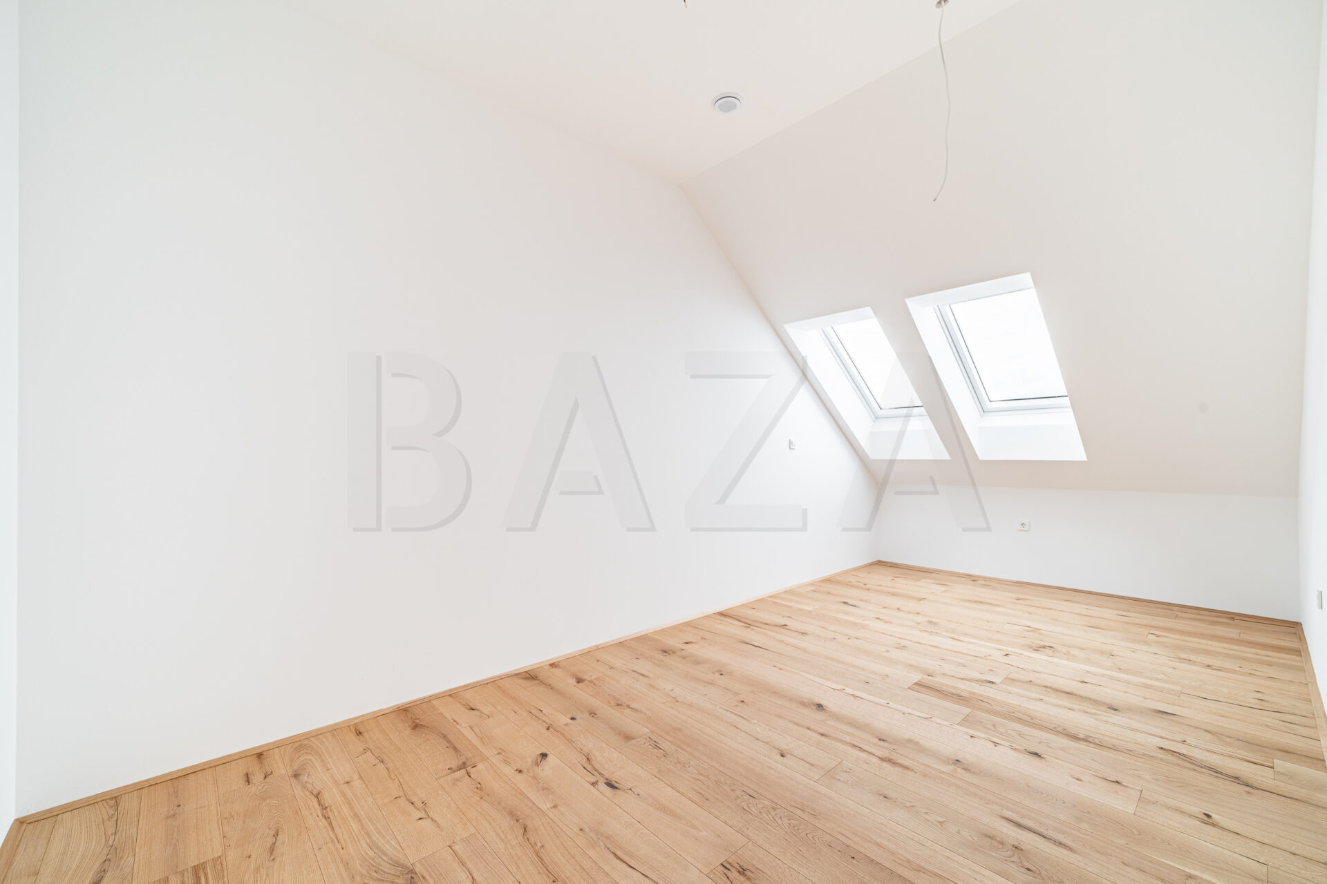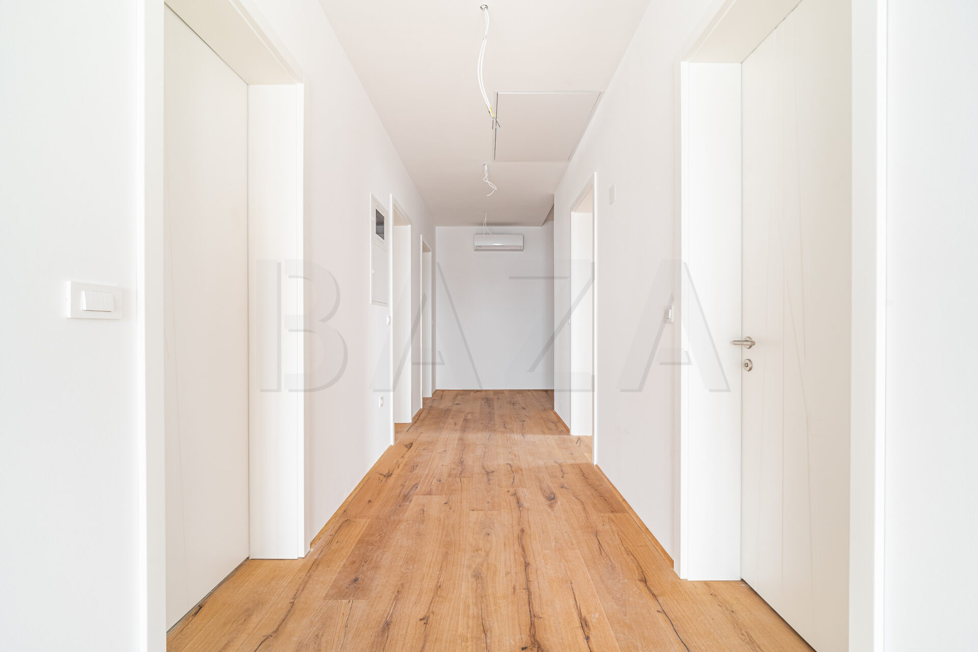 The windows are triple-glazed, with electrically operated ALU blinds. Flooring consists of high-quality 3-layer oak parquet and quality ceramics. The doors are wooden, oak veneered with metal frames.