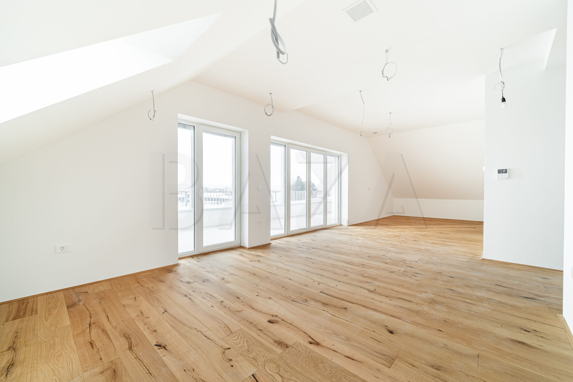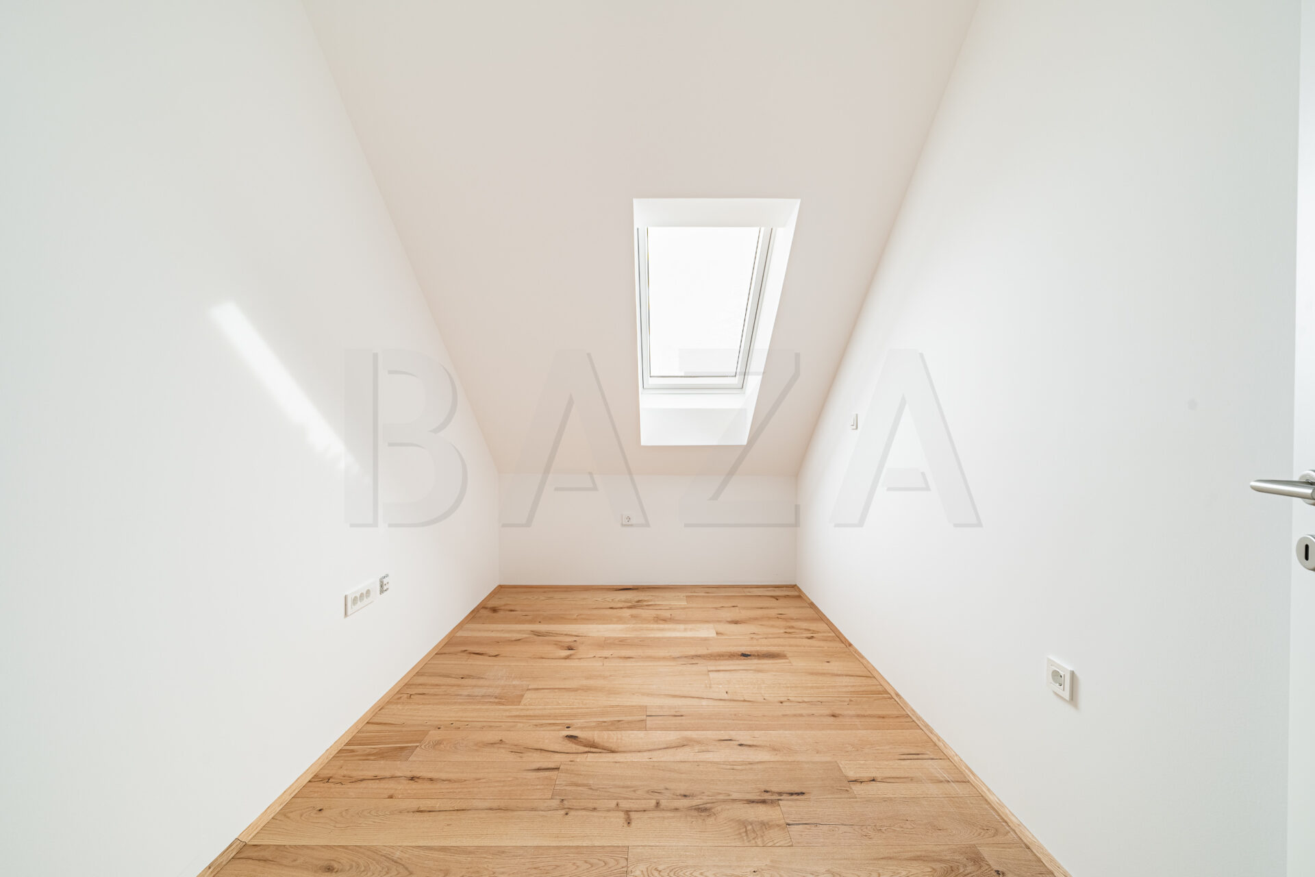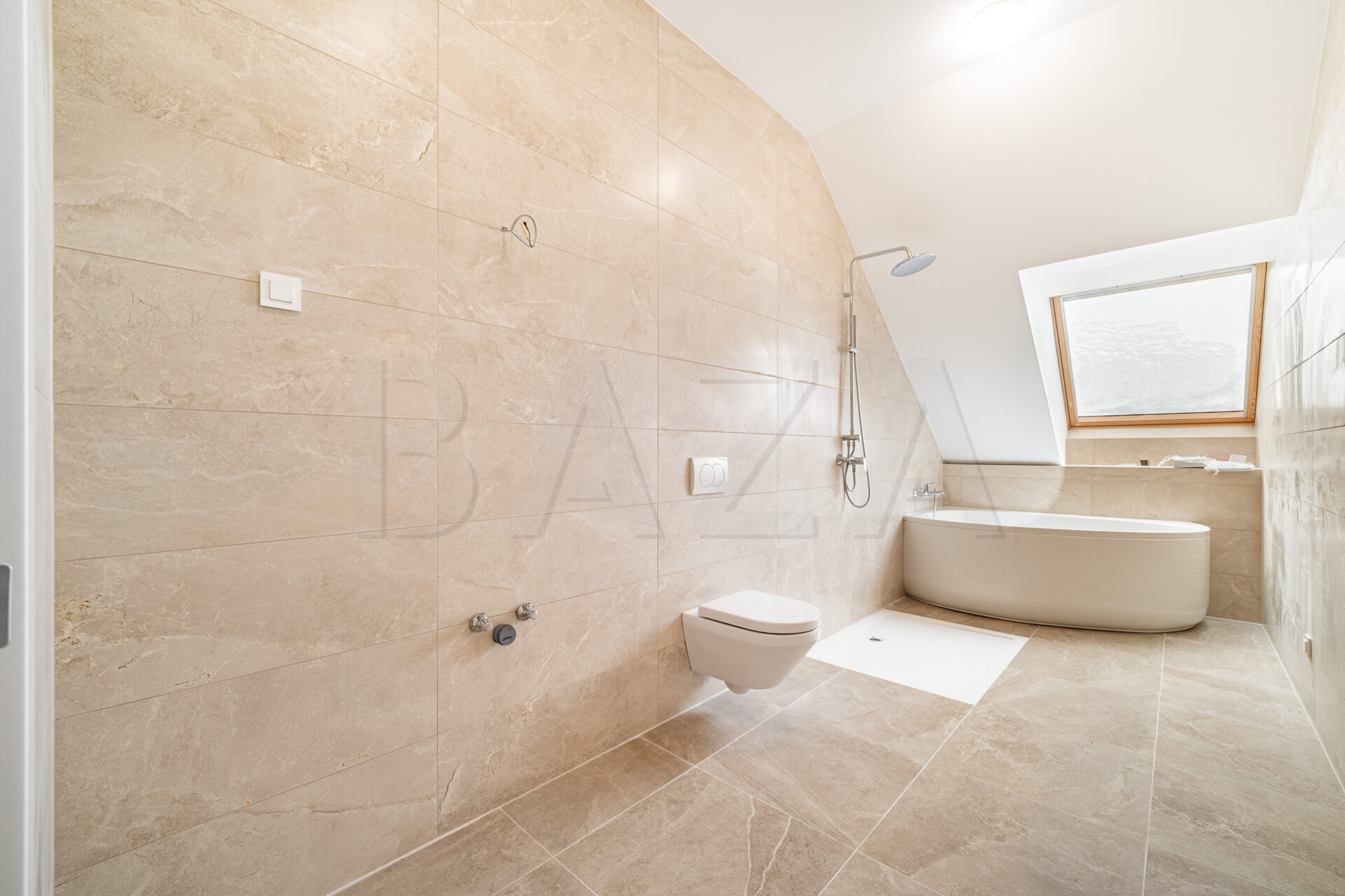 The windows are triple-glazed, with electrically operated ALU blinds. Flooring consists of high-quality 3-layer oak parquet and quality ceramics. The doors are wooden, oak veneered with metal frames.