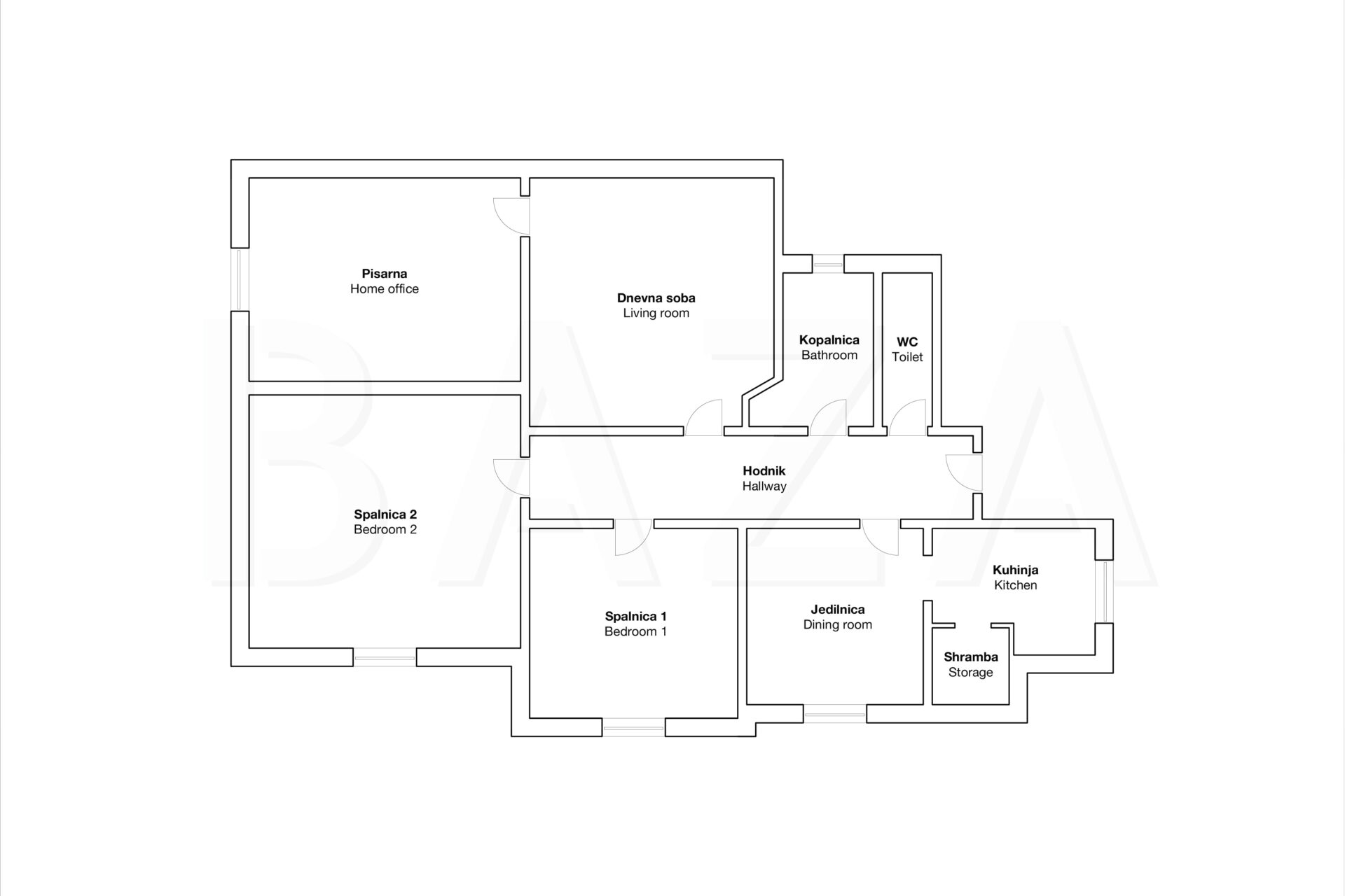 The apartment features a hallway measuring an impressive 9.8 meters in length, which elegantly connects all rooms; kitchen, separate dining room, two bedrooms, office, living room, bathroom, and separate toilet. All rooms are very spacious, most of them oriented to the east, the office faces south, and the living room, bathroom, and toilet face west.