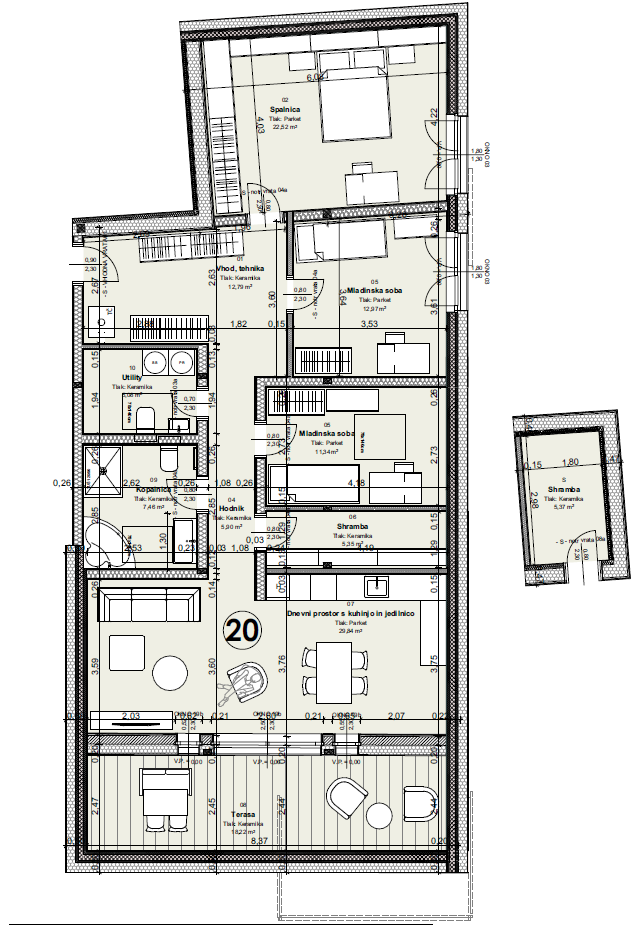 4-room apartment, Pomurska, Apače, built in 2025, 3rd floor of 3, net living area 136.84 m2, including 5.35 m2 storage and 18.22 m2 terrace. Price: 287,919.30 EUR.