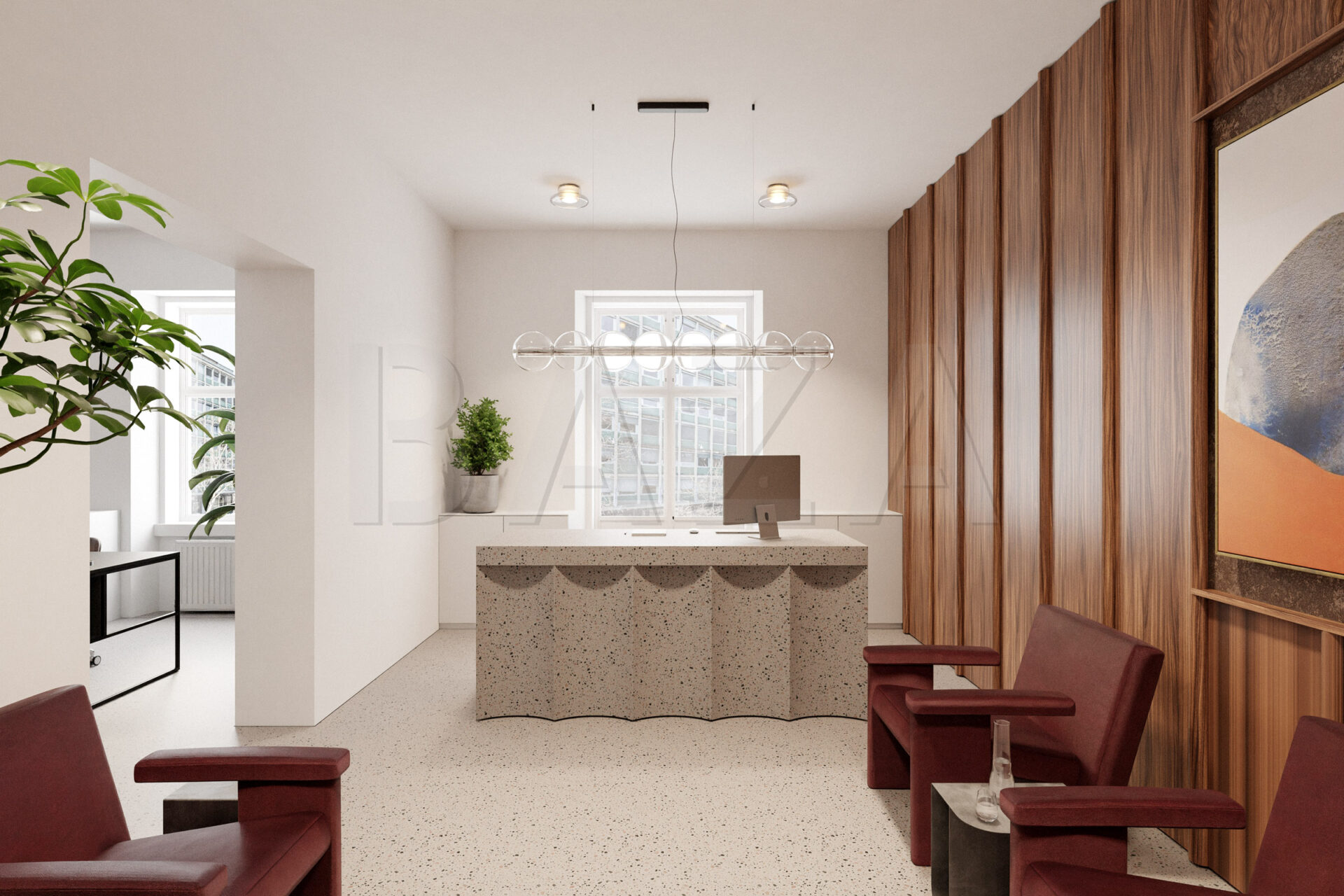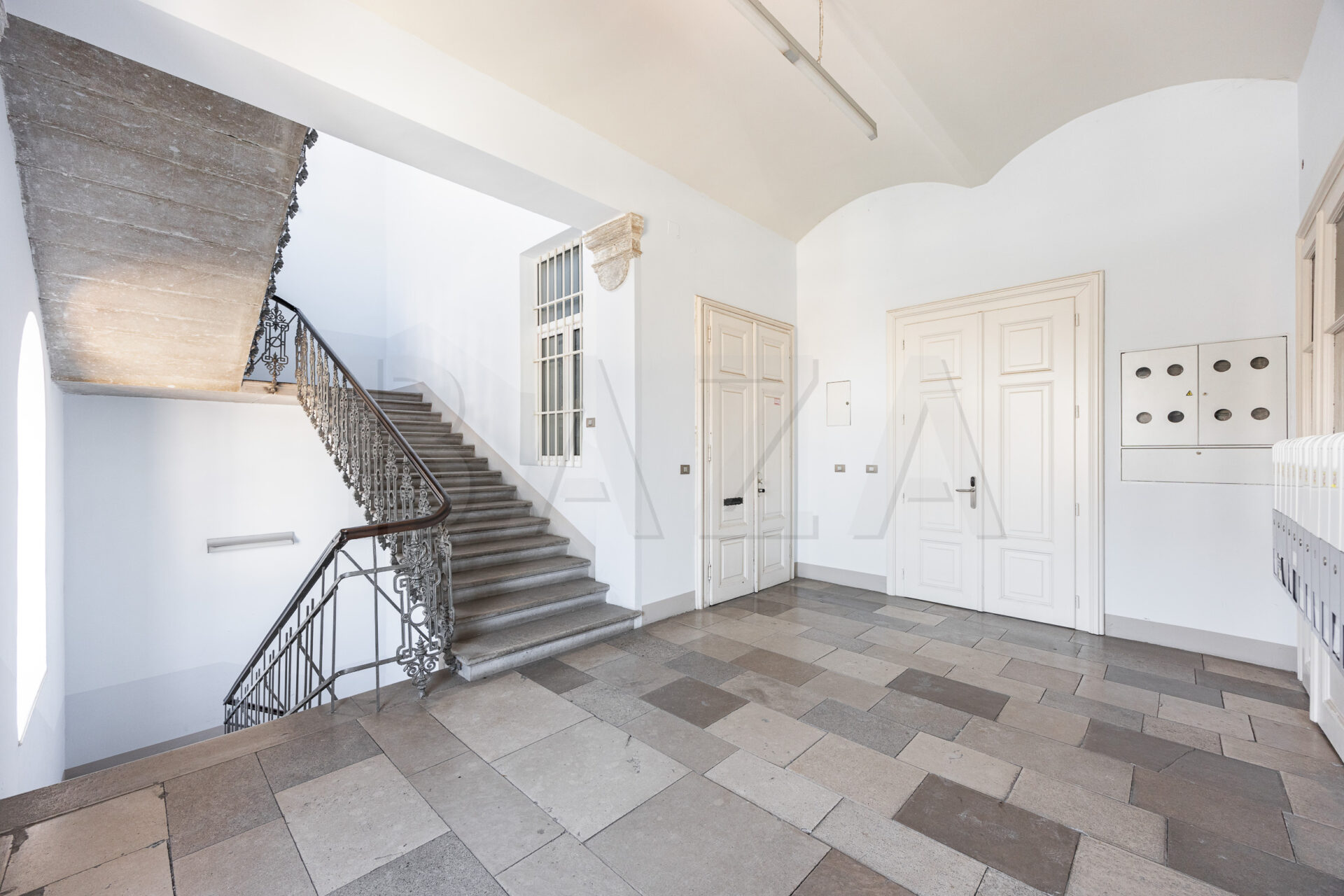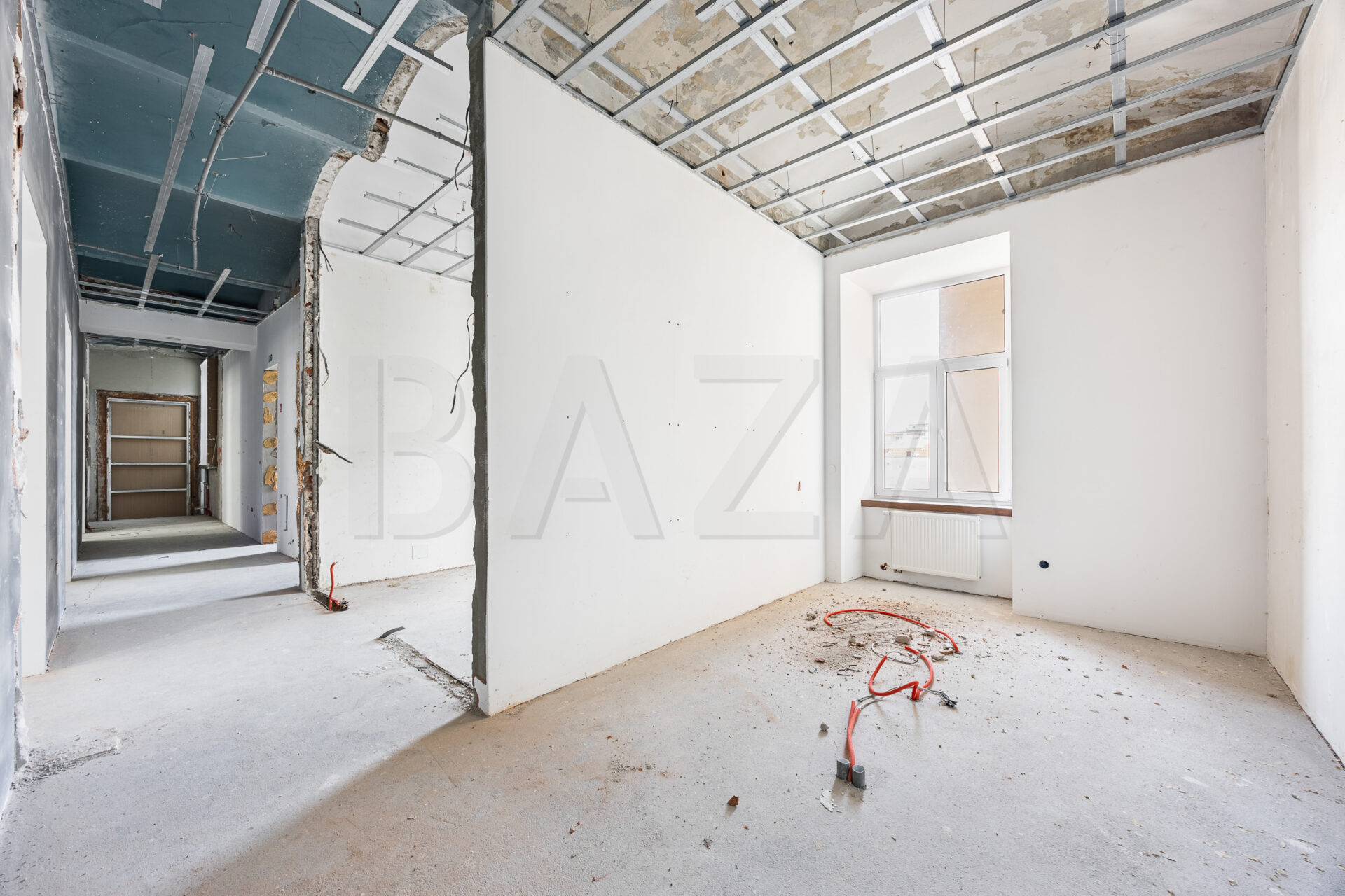 The space is located on the first floor of a representative building in the city center. It comprises six offices, double restrooms, an entrance lobby, and two balconies. Access is via an old-town staircase, and the space features high old-town ceilings. The tenant finishes the space according to their preferences and business needs. Current monthly heating costs amount to 300 EUR, with other utilities charged based on consumption. The tenant pays property tax. Parking for one vehicle is allowed in the building’s inner courtyard.