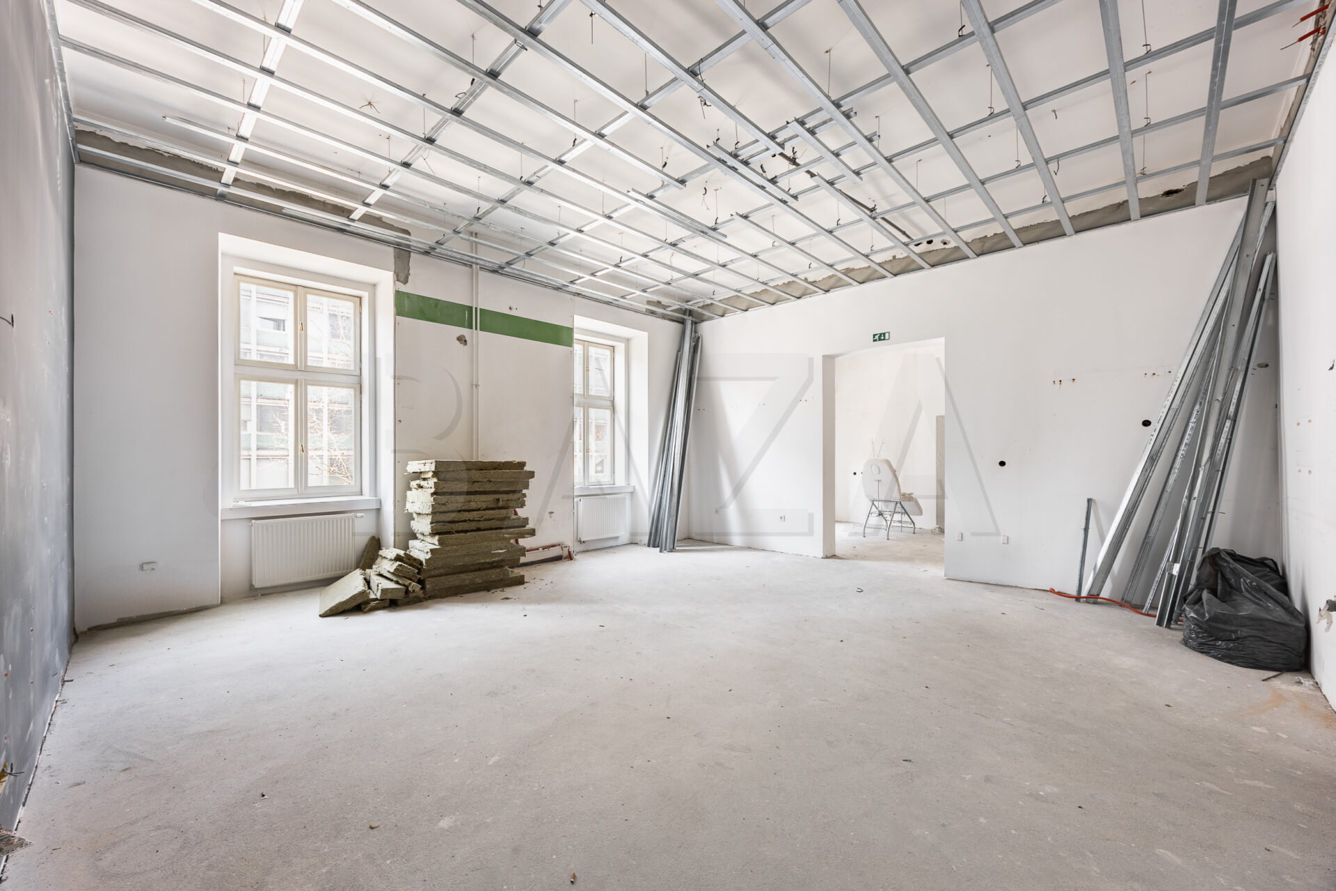 Available immediately for long-term lease. The notice period is 6 months, and the security deposit equals one month’s rent. A building permit has been obtained for a change of use to a beauty salon.