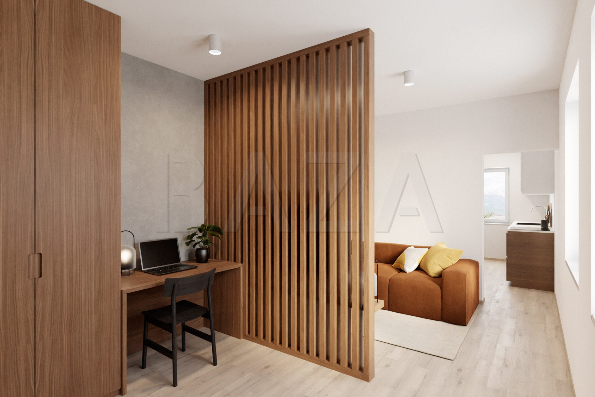 A VISUALIZATION OF THE POTENTIAL ARRANGEMENT OF THE INTERIOR SPACES IS ATTACHED TO THE AD.