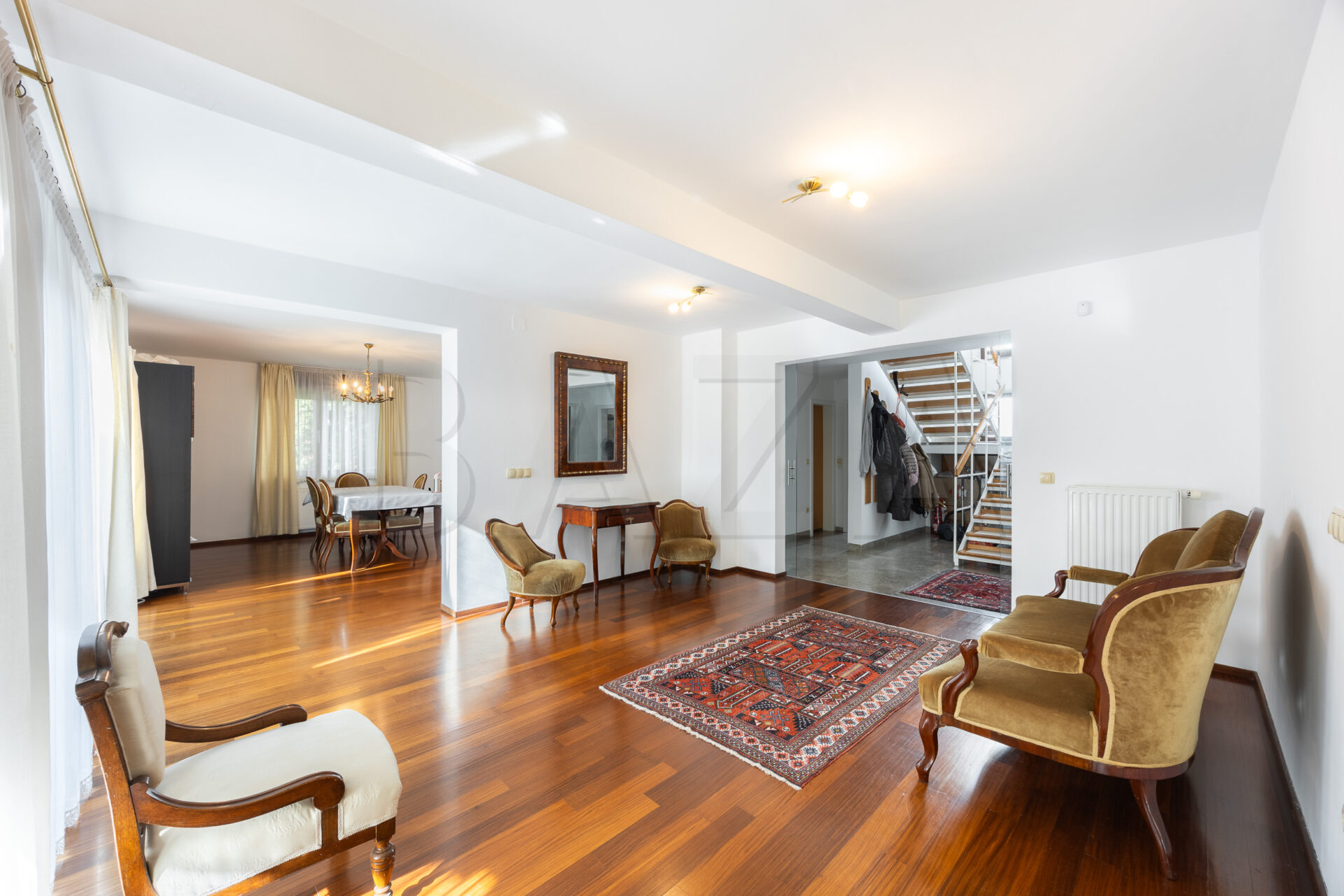 In the immediate vicinity of the center, in Kolezija, we are renting a spacious and modernly designed detached house located in a quiet and green neighborhood. All necessary infrastructure is nearby, and the location allows quick access to the city center and the bypass.