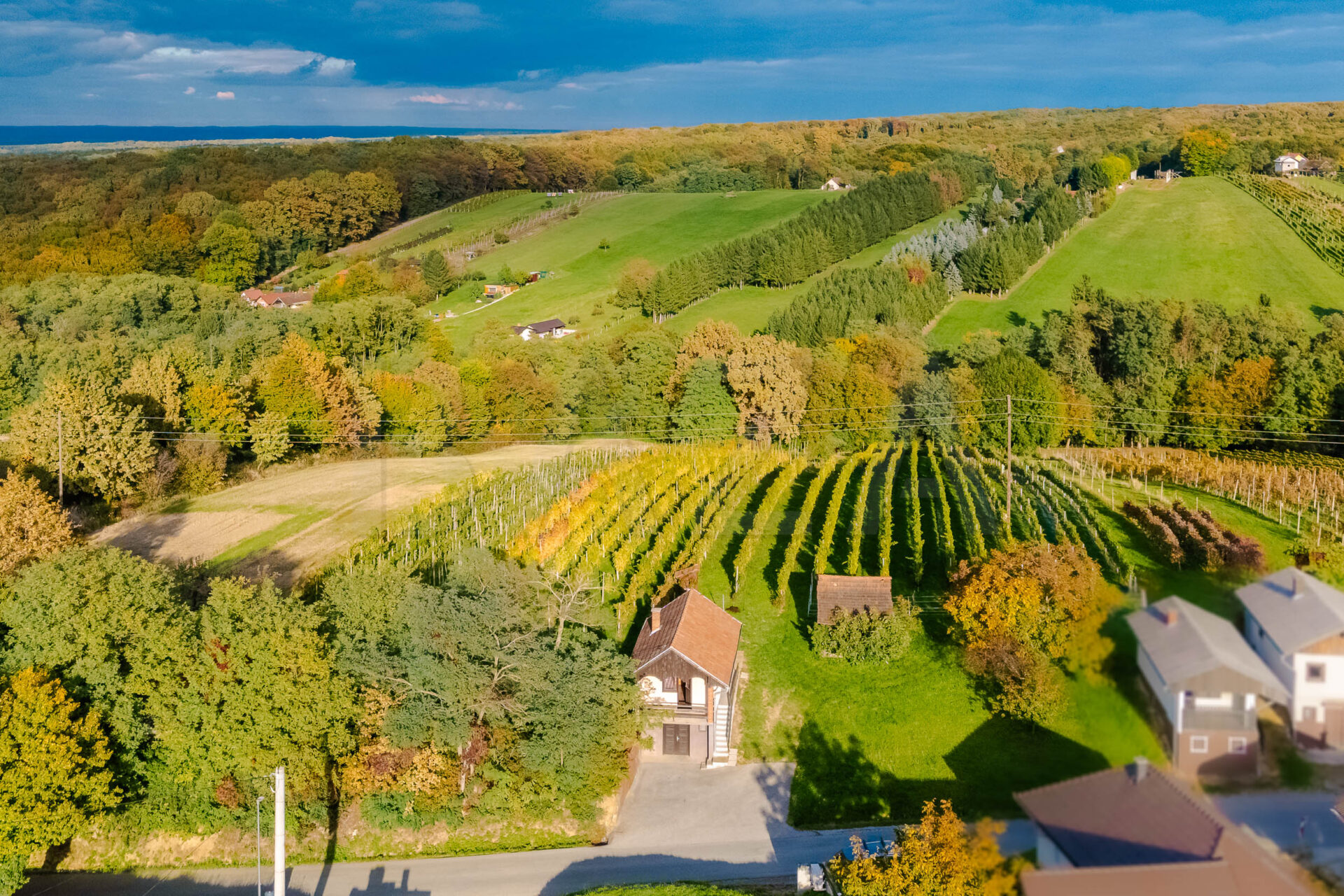In Lendava, in Dolgovaške Gorice, a stone’s throw from the Vinarium Tower, we are selling a well-maintained wine cellar situated on a 170 m2 building plot. Additionally, we are selling a vineyard with 200 vines (1187 m2) and forest land measuring 457 m2.