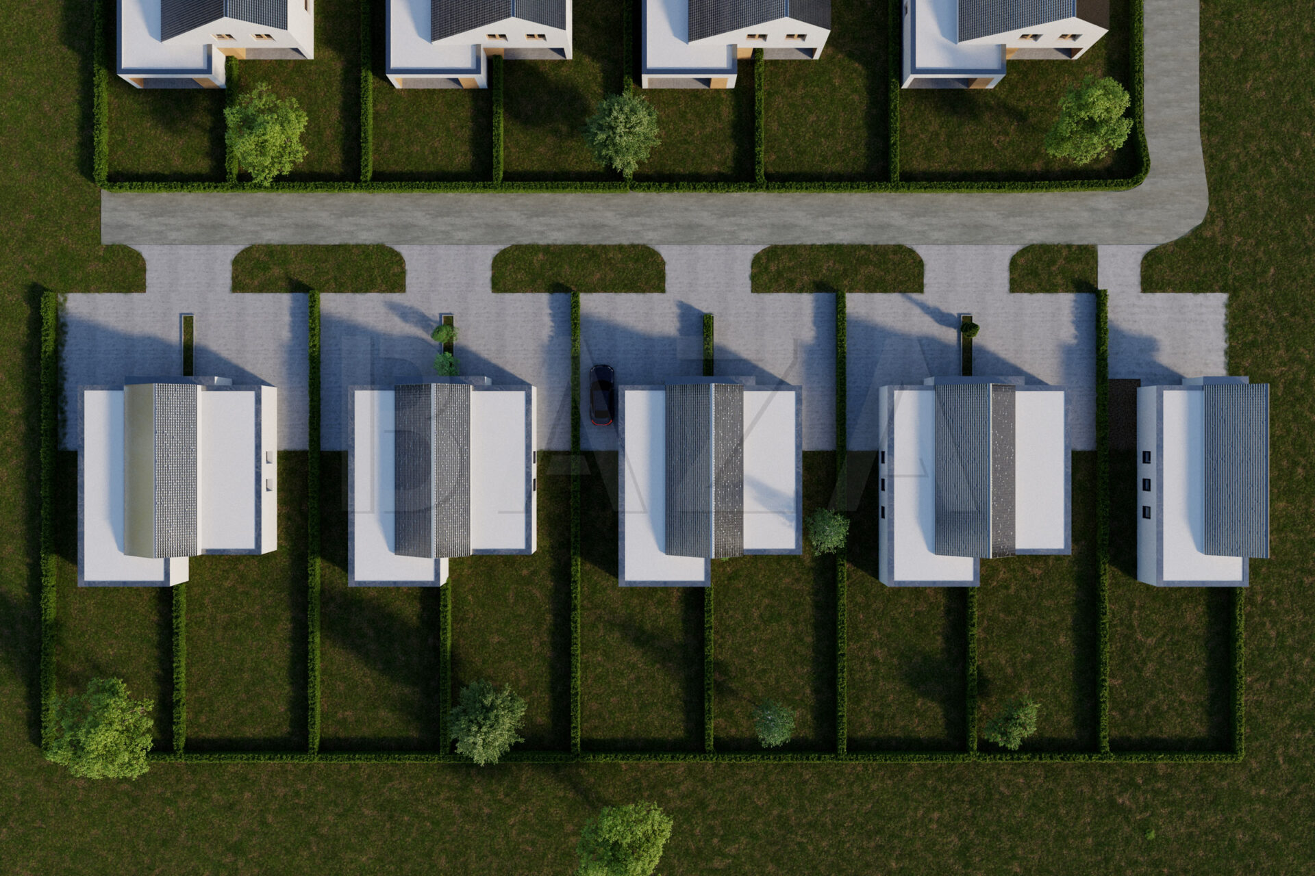 We present to you the second phase of a project of modernly designed eight houses – semi-detached and detached houses, which will be located in a quiet and sunny location on a dead-end street, not far from the center of the town of Lendava. The location is characterized by proximity to infrastructure (kindergarten, school, healthcare, shops, gastronomy, etc.), as well as opportunities for relaxation and recreation in the beautiful Lendava Hills, near the famous Vinarium Tower or in thermal spas with thermal water. Quick access to the highway connection enables uninterrupted mobility.