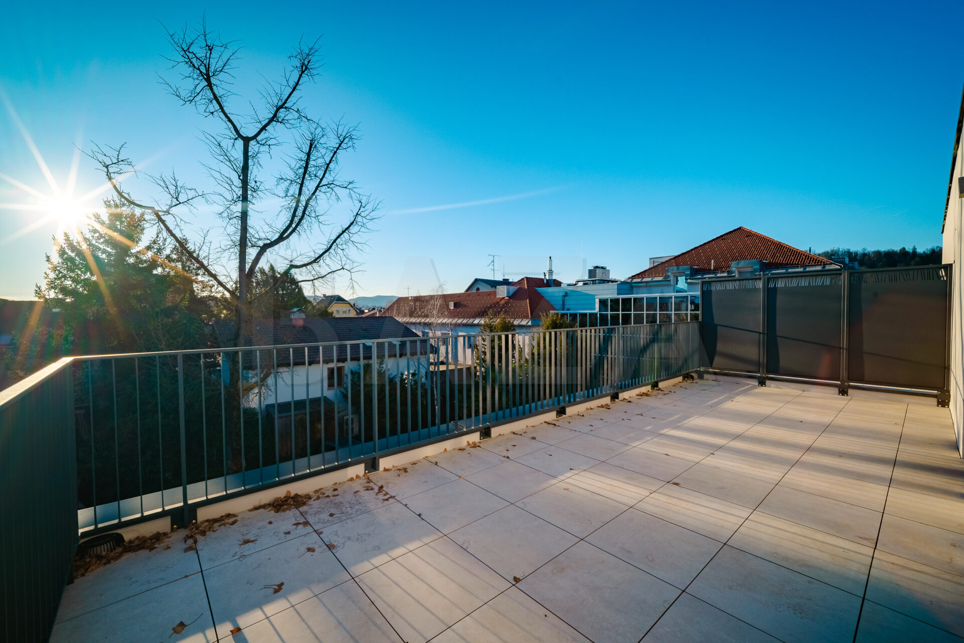 The ground floor includes an entrance hall, sanitary facilities, a technical room, an open living area with kitchen, dining room, and access to a green atrium with a terrace. On the upper floor, there are 3 rooms, a bathroom with a shower, and a utility room with a washing machine. The top floor features the master bedroom with a bathroom and a luxurious roof terrace of 30.40 m2. The NE/SW orientation provides plenty of natural light.