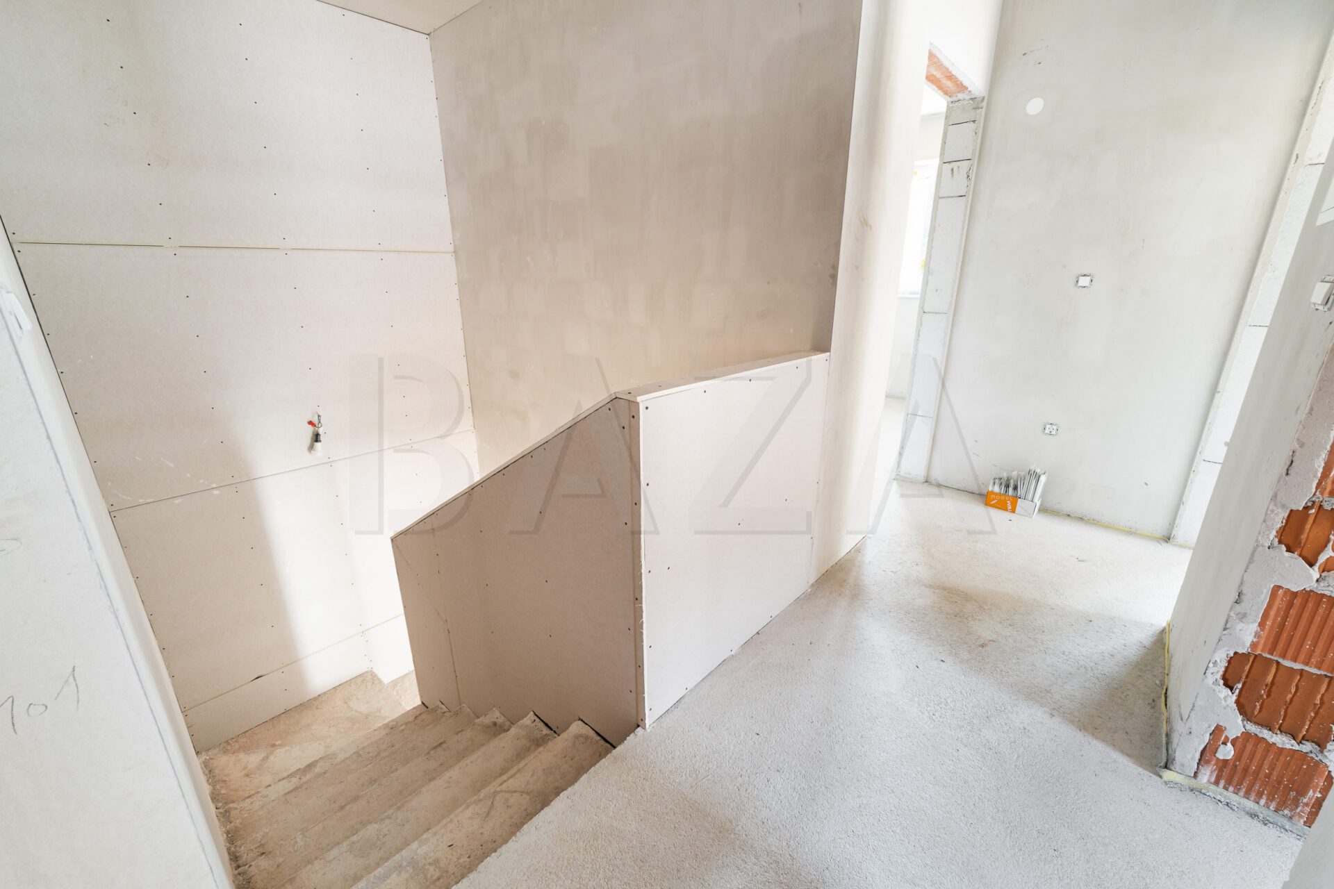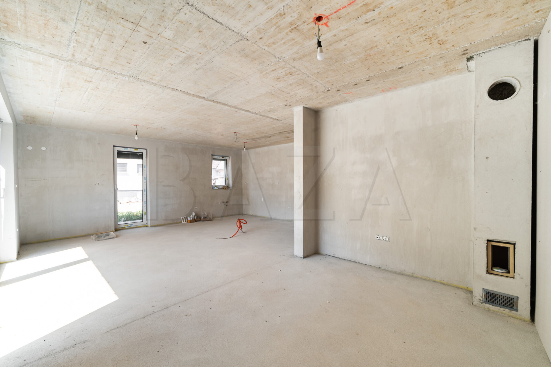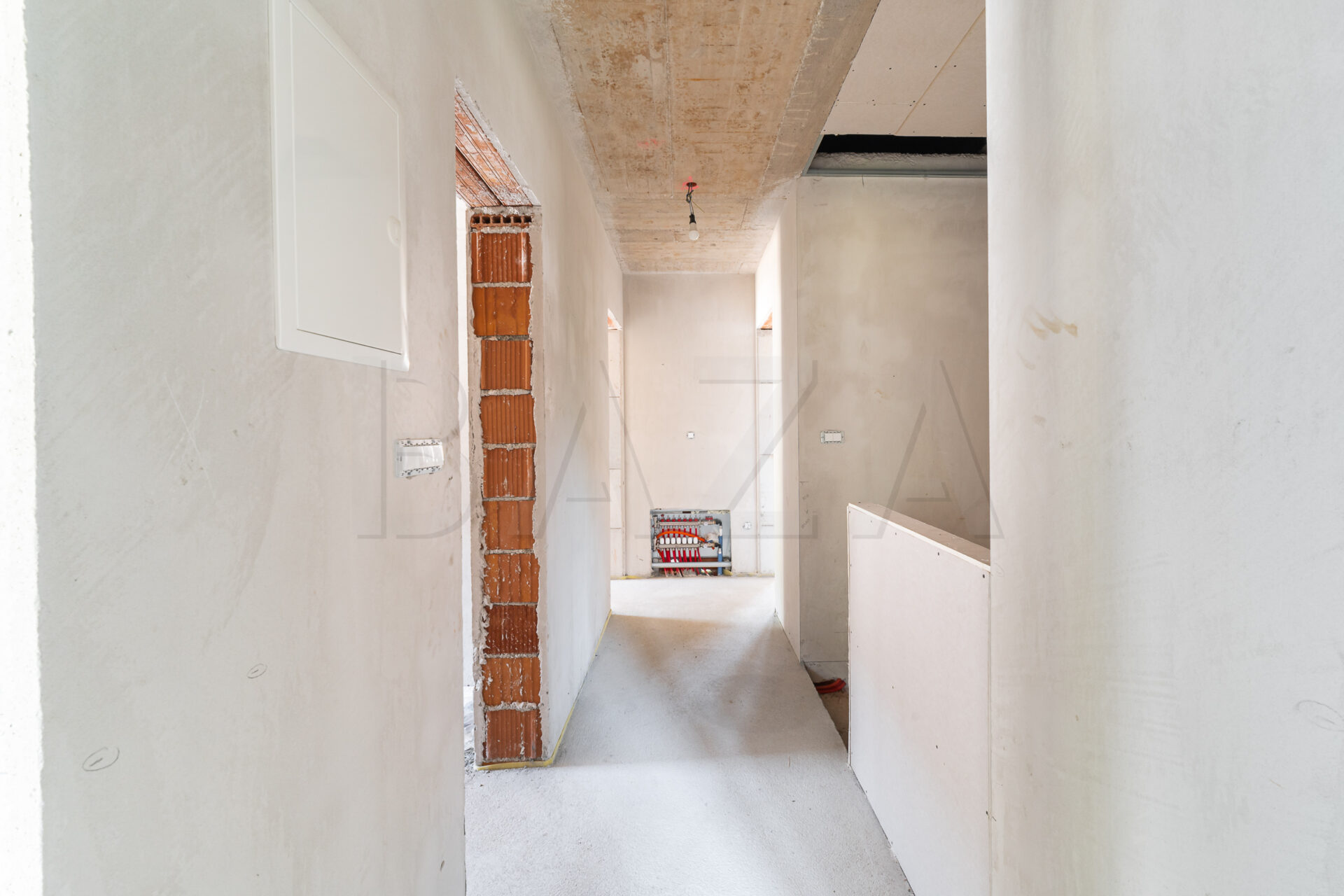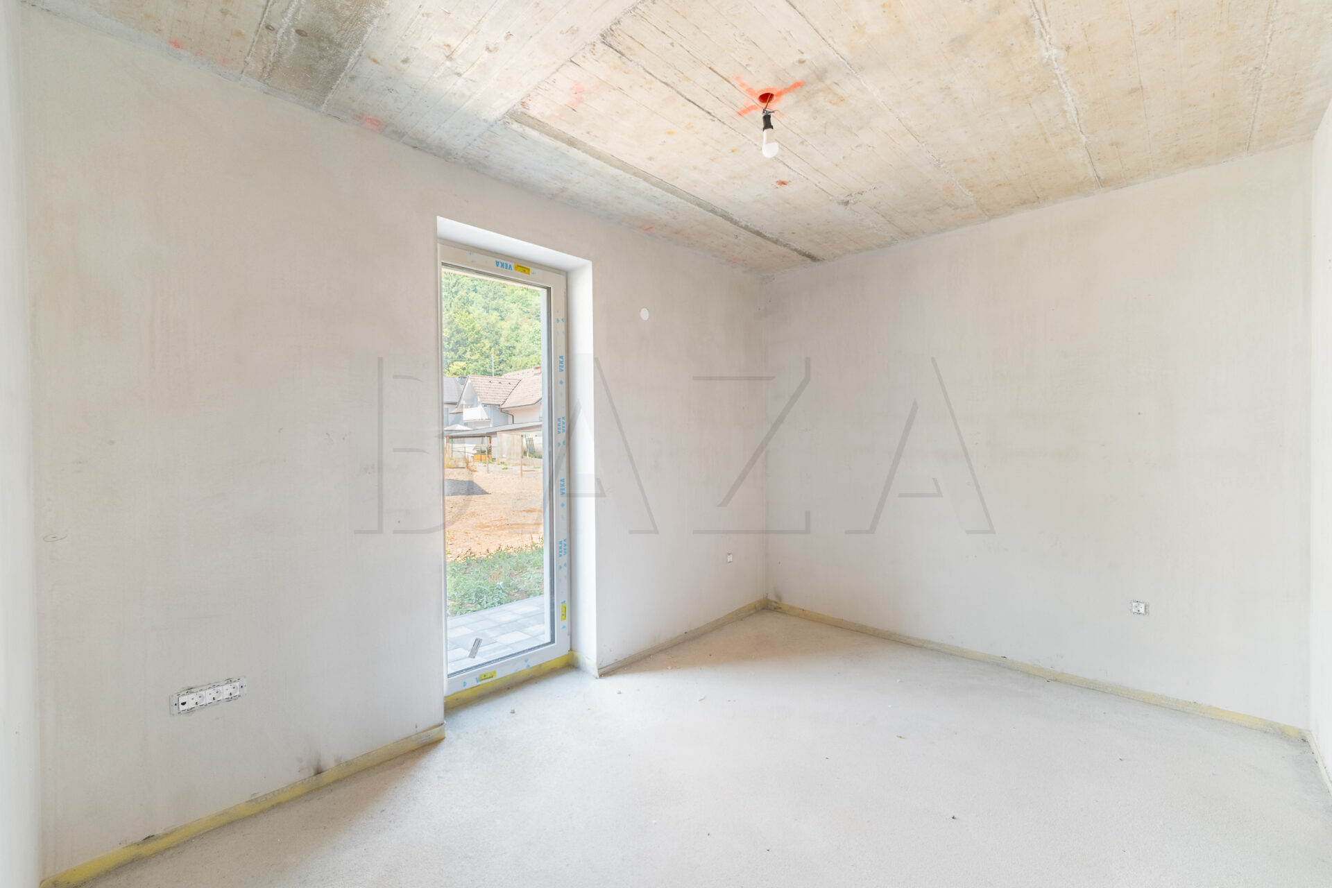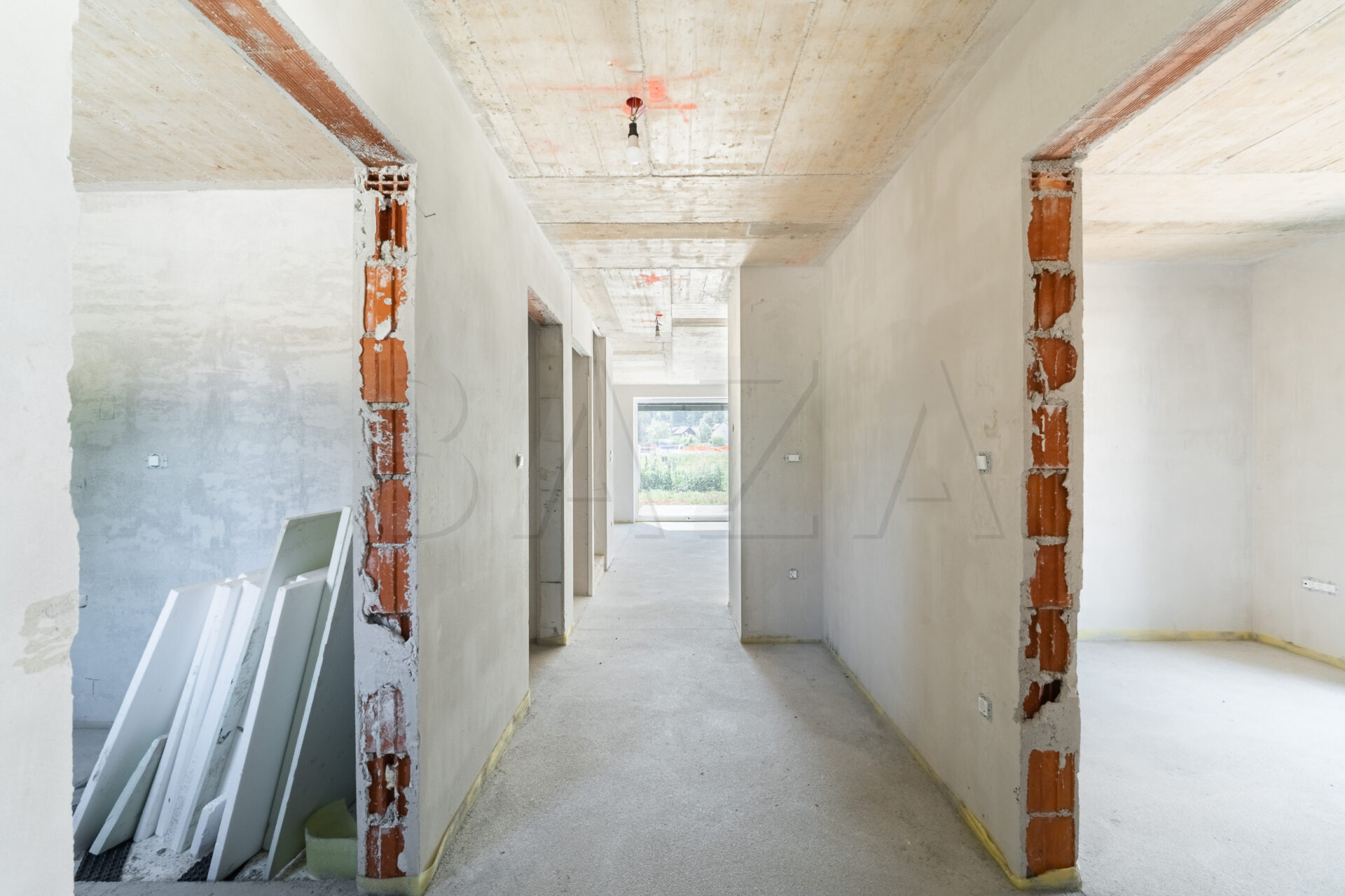 The unit will be built from quality materials, with high-quality triple-glazed PVC windows with external blinds and preparation for mosquito nets. The wall insulation thickness is 20 cm. Heating and cooling of the building is planned by a water-to-air heat pump, including underfloor heating. Preparation for a solar power system, electric car charger, fireplace (chimney), and a local ventilation system is also planned.