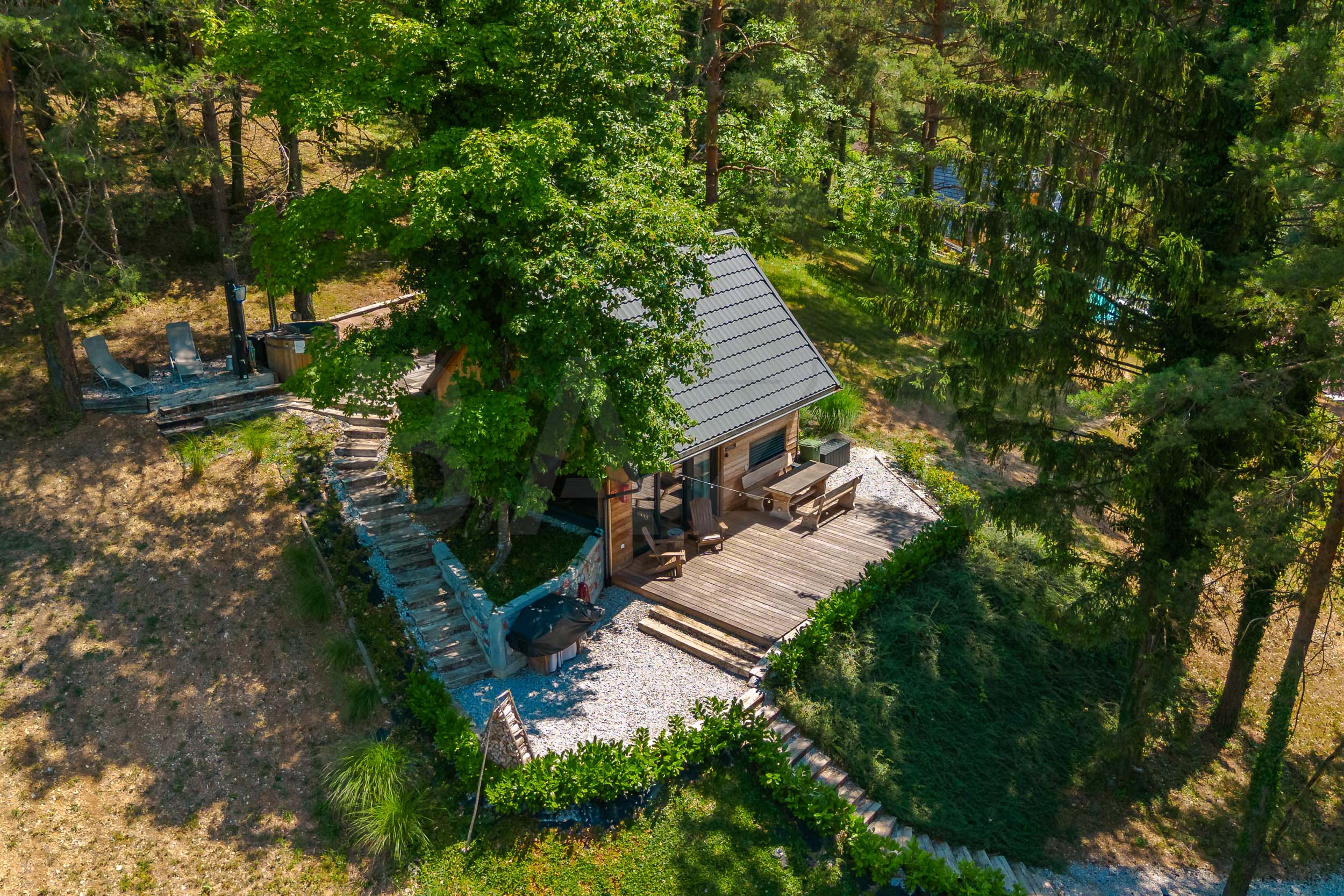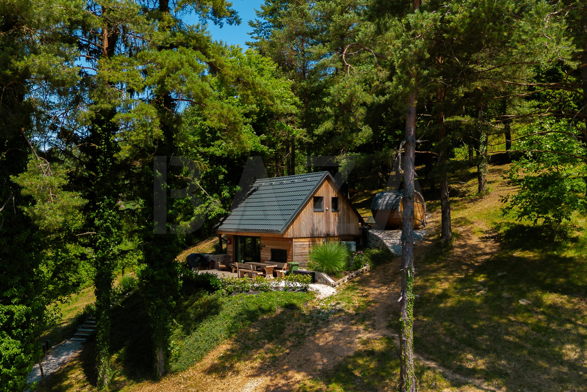 Naša zgodba se je začela pred nekaj leti, ko sva kupila parcelo, na kateri je stala stara, skoraj pozabljena zidanica. Strmo pobočje je bilo zaraščeno, zapuščeno, a nosilo je tisto posebno tišino in moč narave, ki te ustavi. V času korone smo z družino stopili skupaj, prijeli za roke in začeli odstranjevati trnje, visoko travo – in plast za plastjo razkrivati skriti potencial kraja. Prav v teh trenutkih je v naju dozorela ideja, da tej zidanici vdihneva novo življenje.