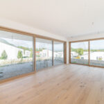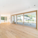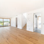 Notranjost odlikujejo vrhunski materiali – hrastov beljeni parket, kakovostna keramika in sanitarna oprema višjega razreda, medtem ko napredne tehnične rešitve zagotavljajo energetsko učinkovitost in udobje. Vgrajena so troslojna lesena okna z električnimi senčili Medle, vhodna vrata Delutech z odpiranjem na prstni odtis, talno gretje s toplotno črpalko Daikin ter centralna rekuperacija Zehnder, ki skrbi za svež zrak in nizko porabo energije.