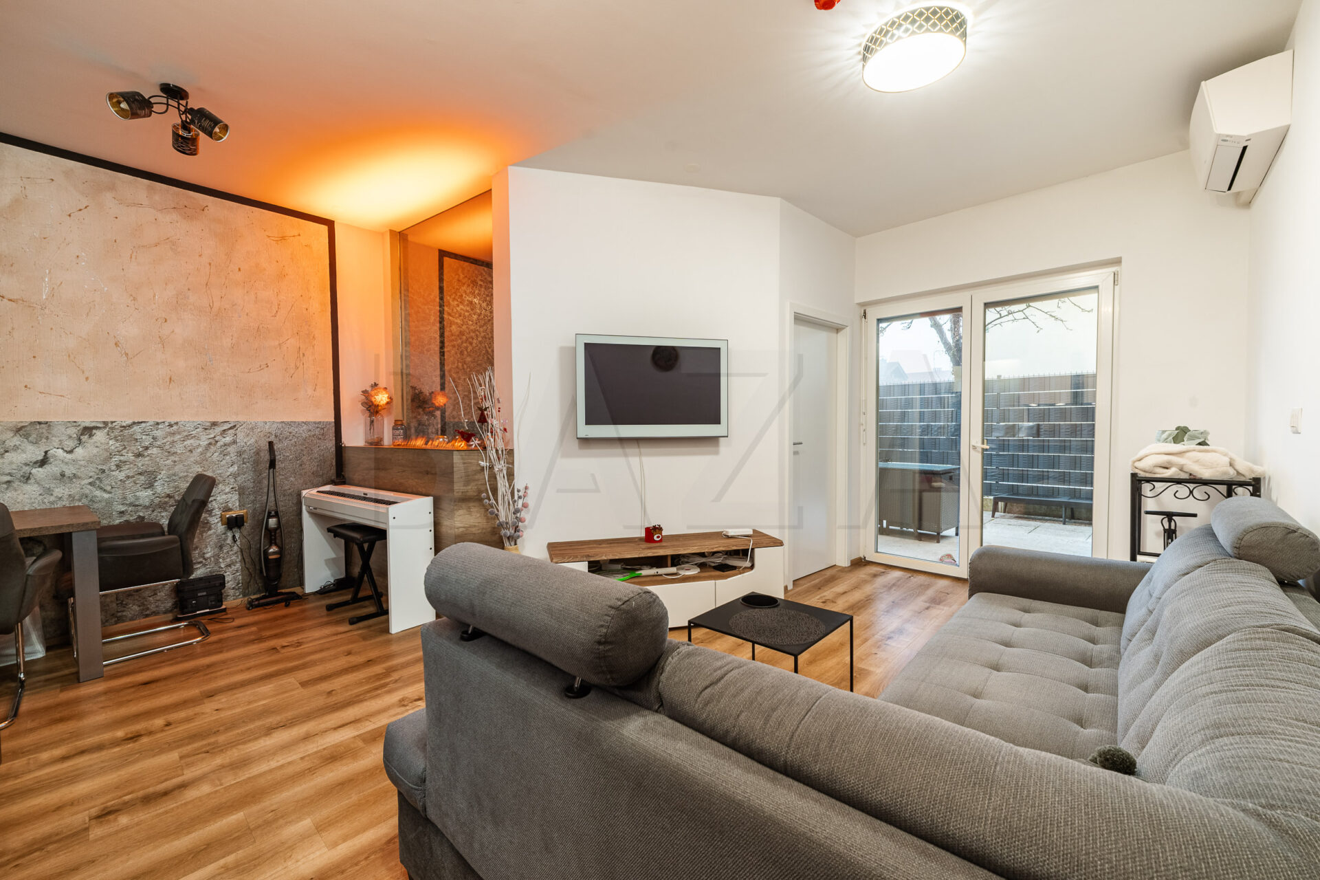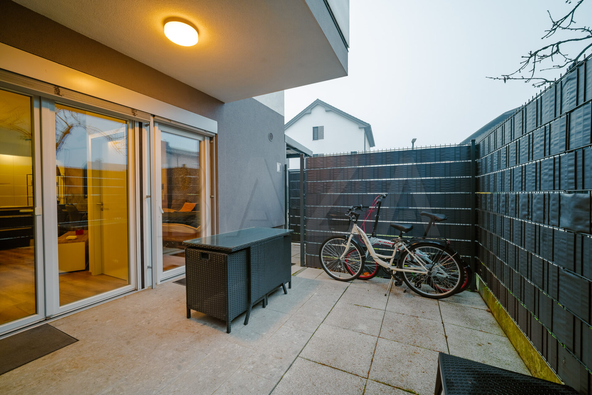 Stanovanje se nahaja v pritličju stavbe in je zaradi atrijske zasnove zelo primerno za pare, posameznike, starejše ali kot investicija. Neto uporabna površina znaša 43,1 m², dodatno pa stanovanju pripada še 7,2 m² nadkrite terase ter 20 m² zasebnega atrija, ki omogoča prijetno bivanje na prostem in visoko stopnjo zasebnosti. Pred atrijem se nahaja lastniško parkirno mesto, dodatno pa je na voljo tudi brezplačno parkiranje v okolici.