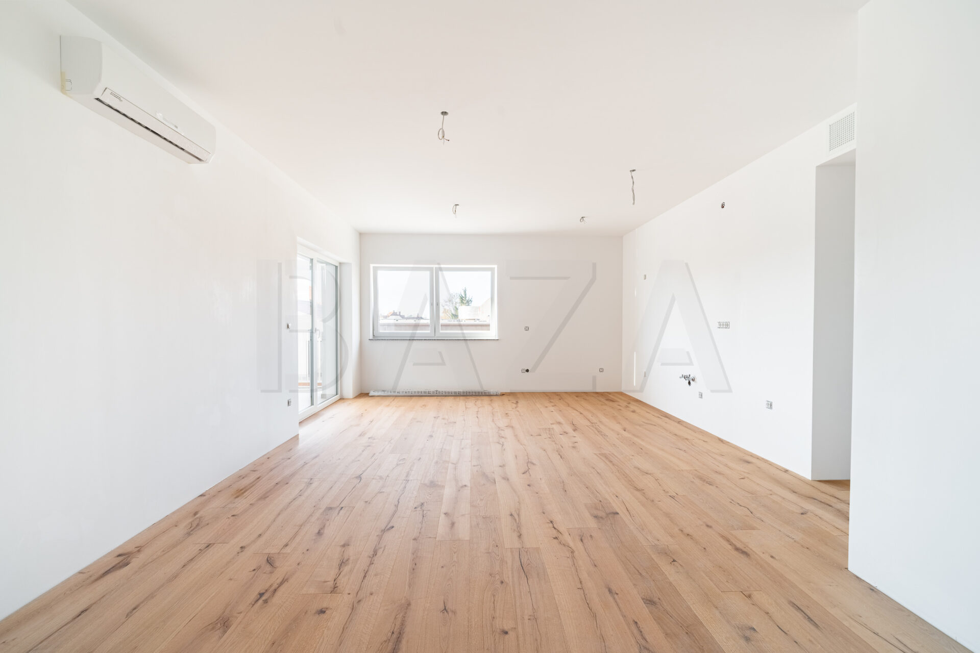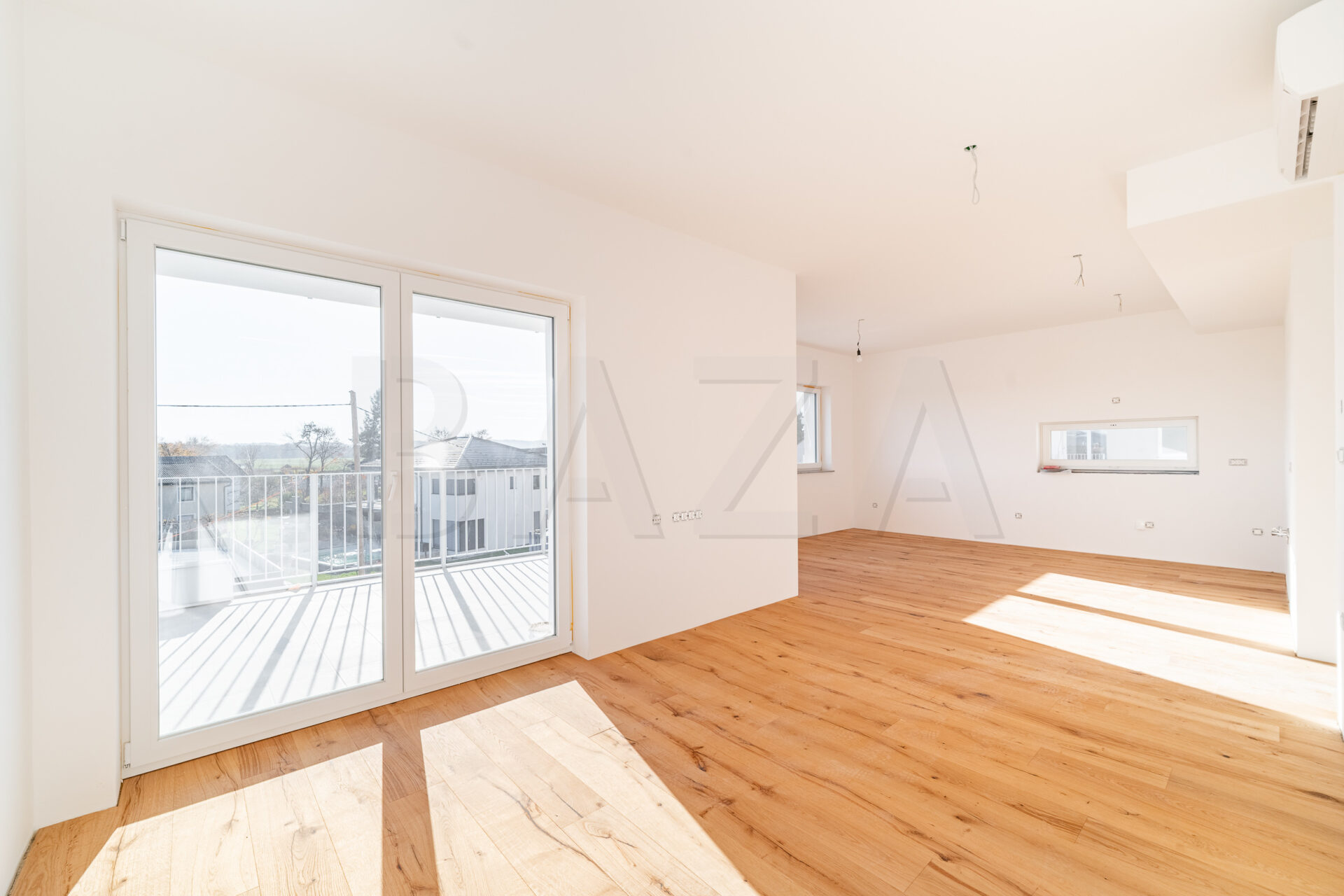 Okna bodo 3-slojna, z ALU žaluzijami na električni pogon. Talne obloge bodo iz vrhunskega 3 slojnega hrastovega parketa ter kvalitetne keramike. Lesena, furnirana hrastova s kovinskim podbojem bodo tudi vrata.