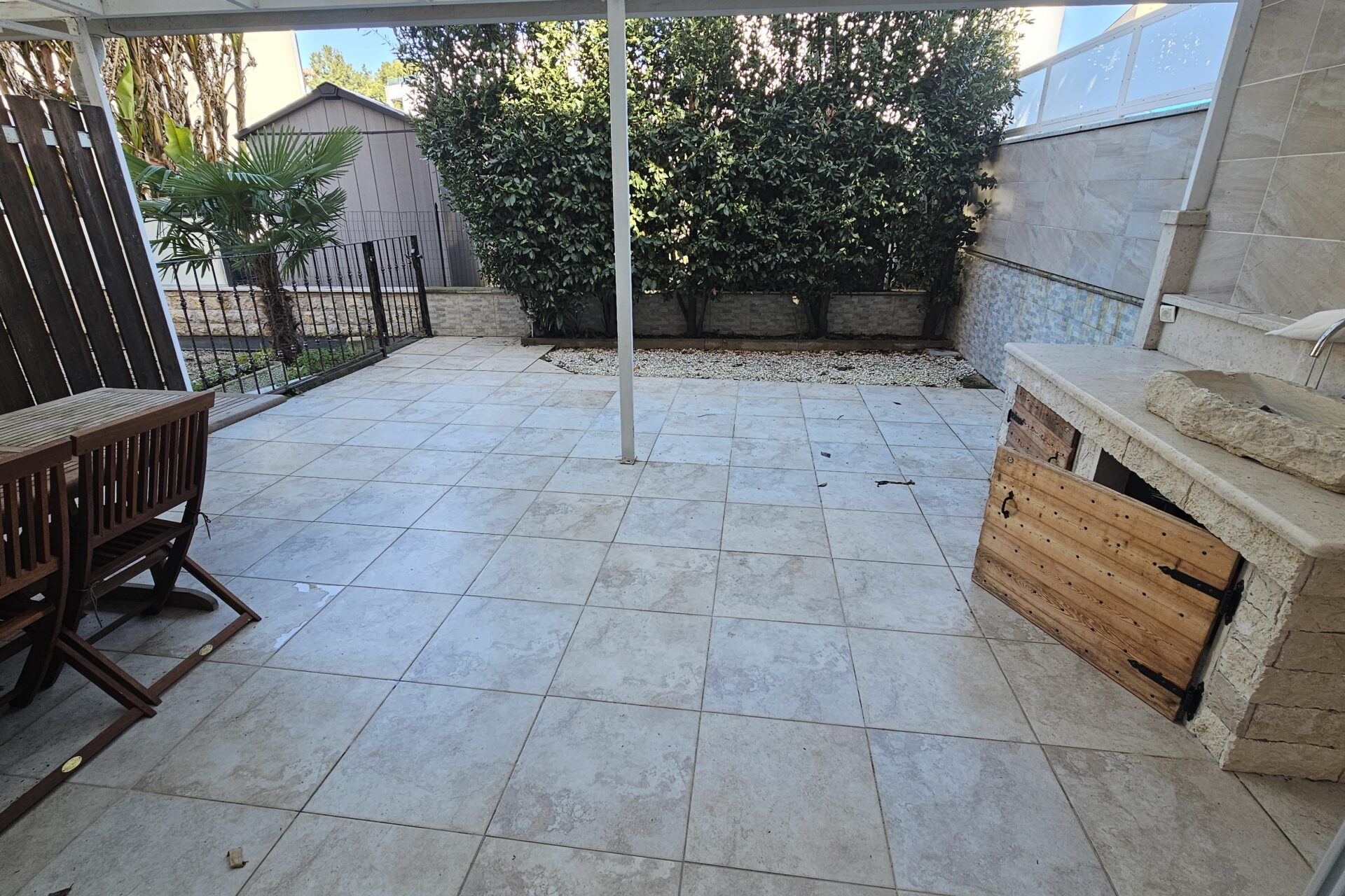 Stanovanje se nahaja v pritličju večstanovanjske stavbe in ponuja prijetno bivanje ali odlično investicijsko priložnost. Tloris obsega dnevno-bivalni prostor s kuhinjo in jedilnico, dve ločeni sobi, kopalnico ter izhod na teraso in vrt, ki omogoča prijetno bivanje na prostem. Dodatno obsega tudi dve shrambi. Opremljeno je s klimatsko napravo in dimnikom.