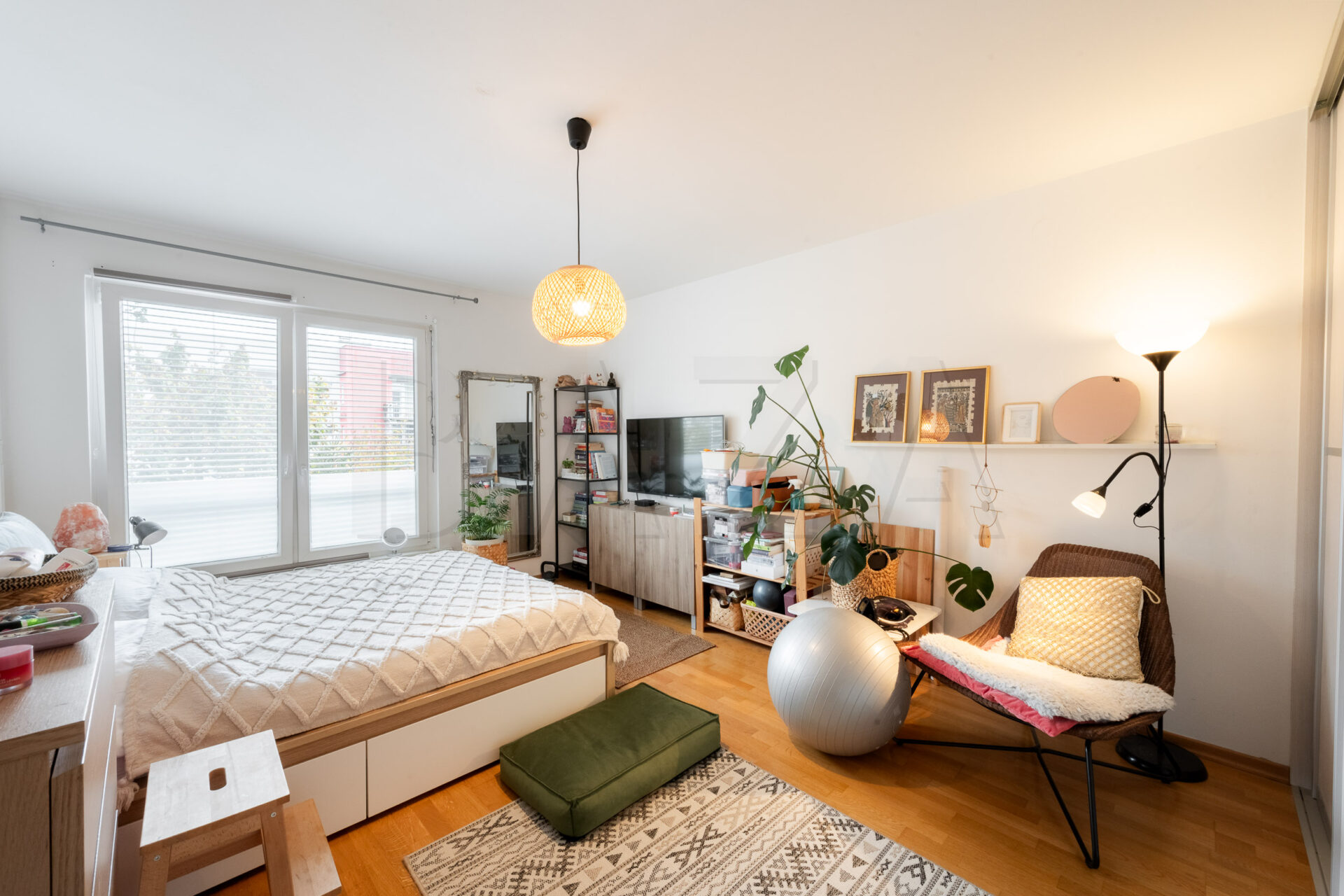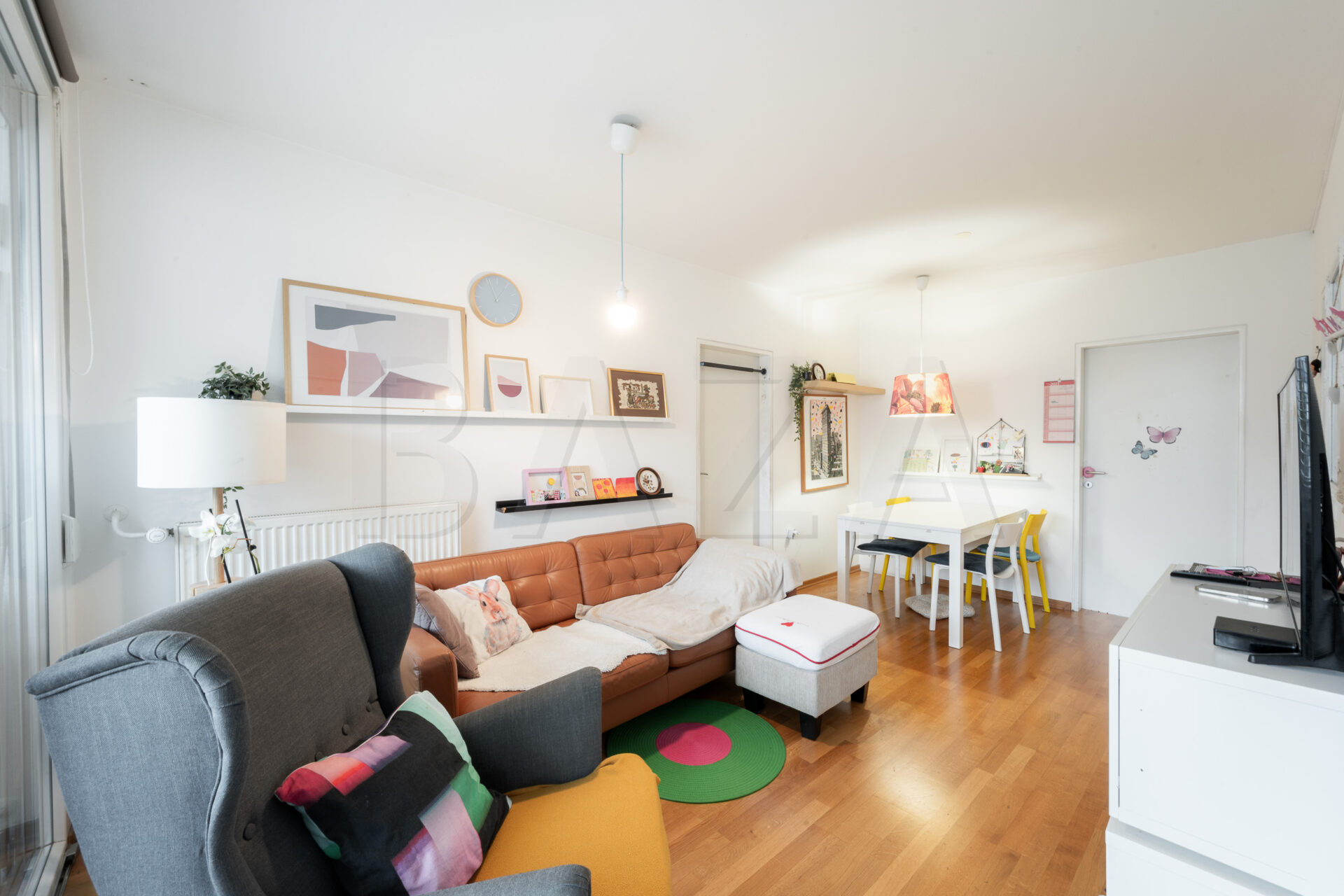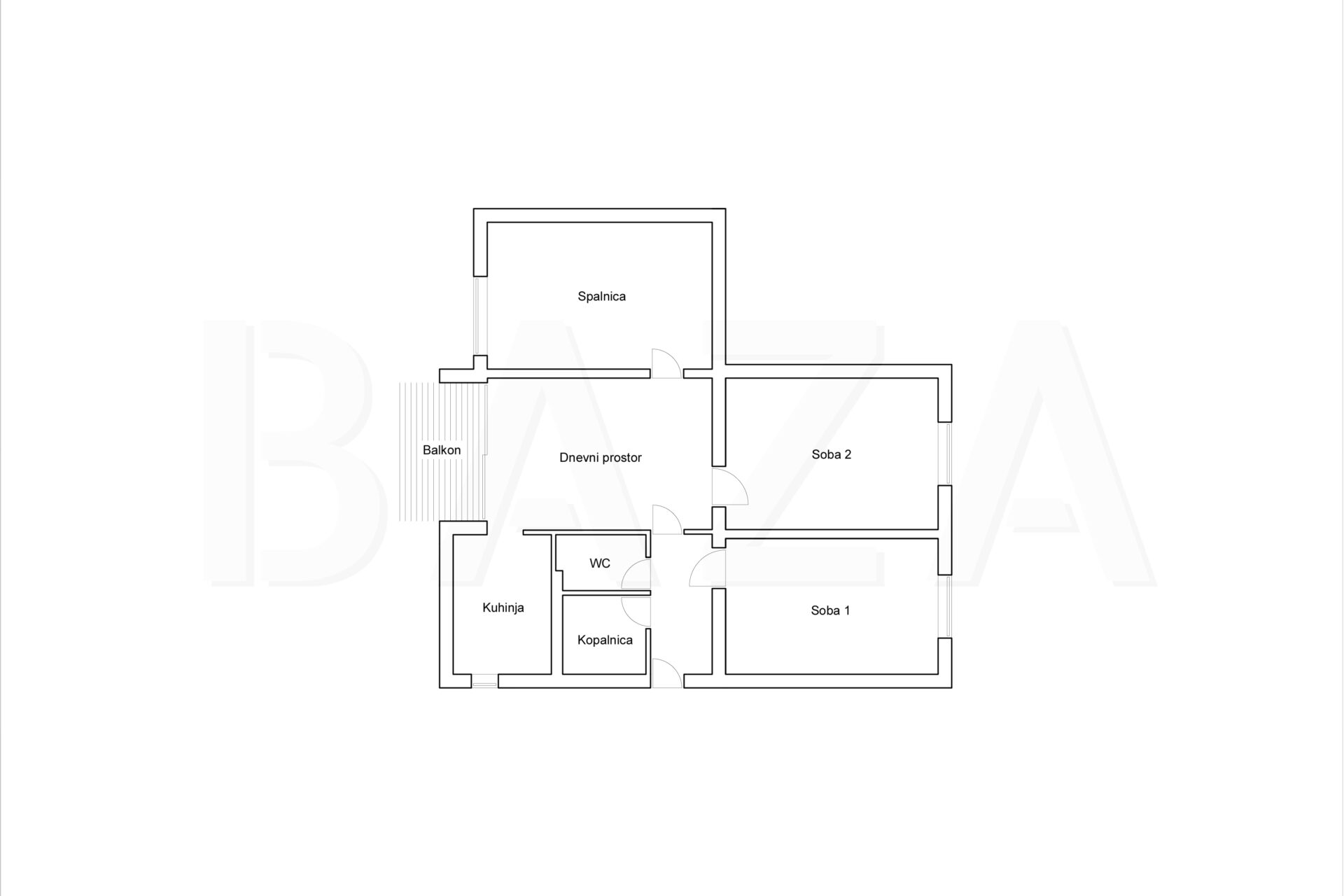 Stanovanje ima lego vzhod – zahod, kar nudi veliko dnevne svetlobe tekom celotnega dne. Tloris je izredno funkcionalen in obsega: hodnik, kopalnico, ločene sanitarije, dve sobi obrnjeni na zahod, spalnico, kuhinjo ter dnevni prostor z jedilnico iz katerega se dostopa na balkon, obrnjeno proti vzhodu. Parkiranje je zagotovljeno na parkirišču za zapornico v bližnji okolici objekta.