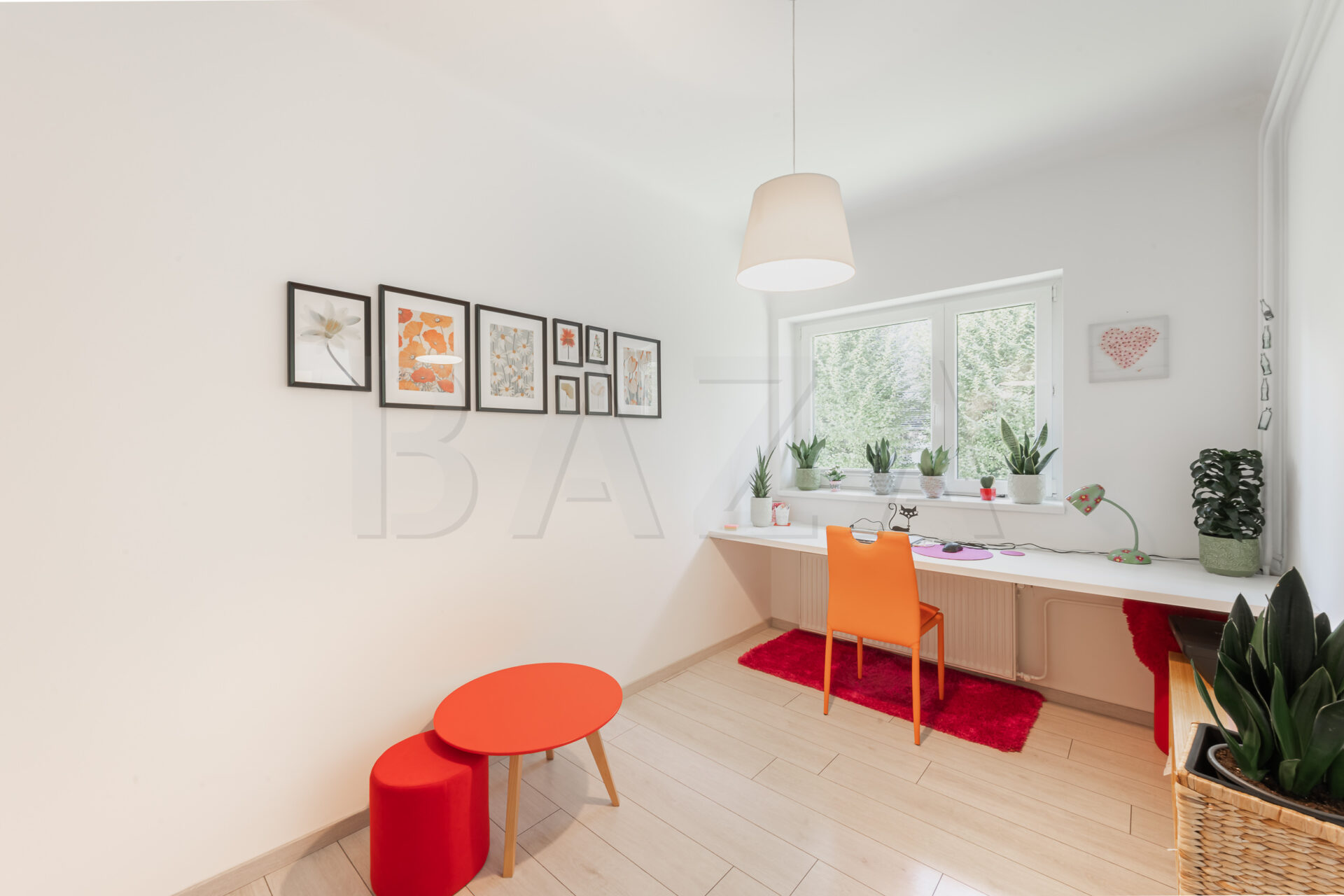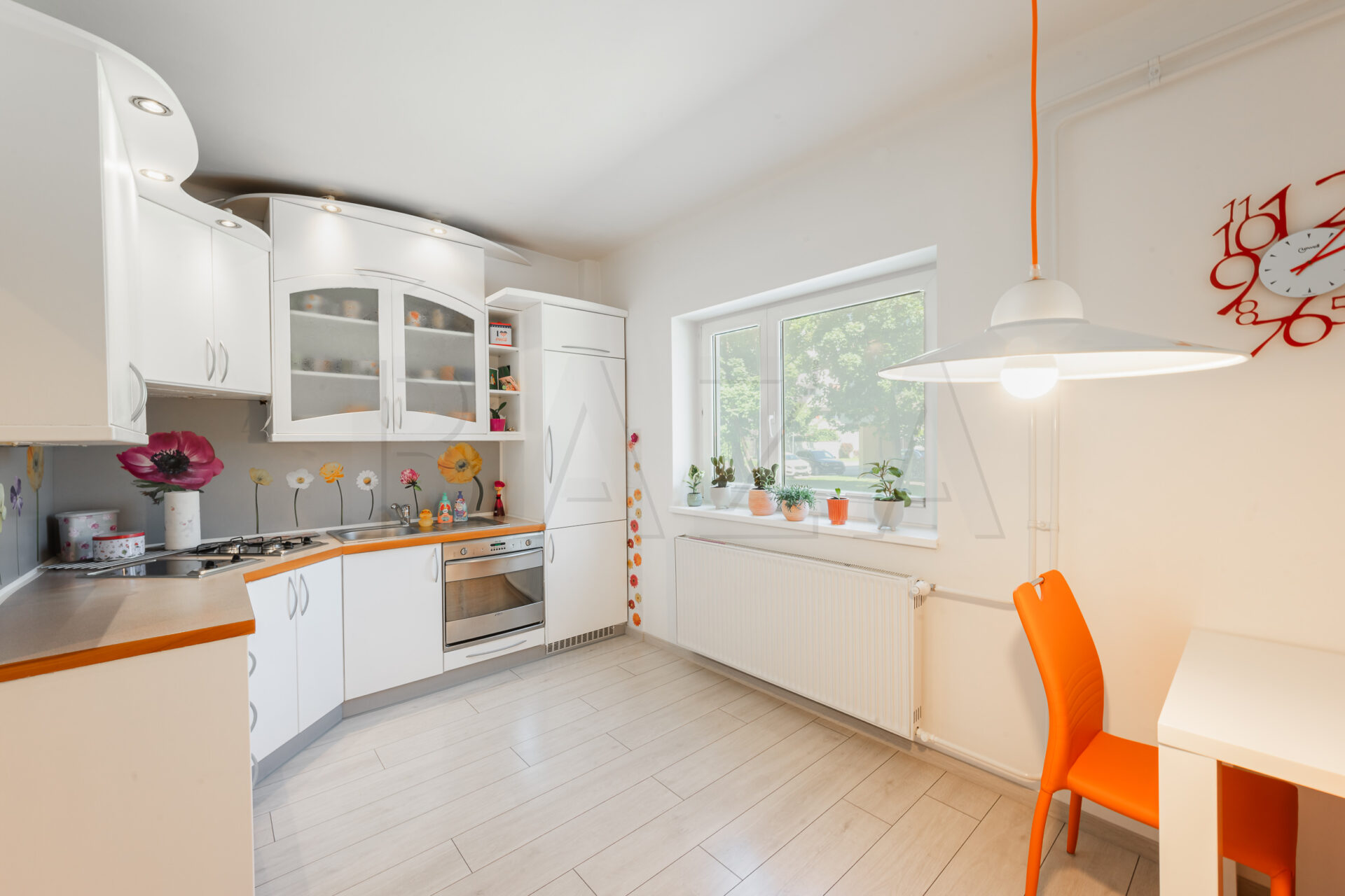 Stanovanje ima funkcionalno razporeditev, ki vključuje hodnik, svetlo bivalno kuhinjo z jedilnico, ločene sanitarije, kopalnico z banjo, manjši balkon, prostorno dnevno sobo, prehodno delovno sobo ter udobno spalnico. Stanovanje je orientirano proti vzhodu in zahodu, kar omogoča prijetno naravno svetlobo skozi cel dan. Poleg tega stanovanju pripada večja shramba v kleti ter souporaba skupnih prostorov. Parkiranje je urejeno na dvorišču bloka, namenjeno izključno stanovalcem. Stanovanju pripada eno parkirno mesto.