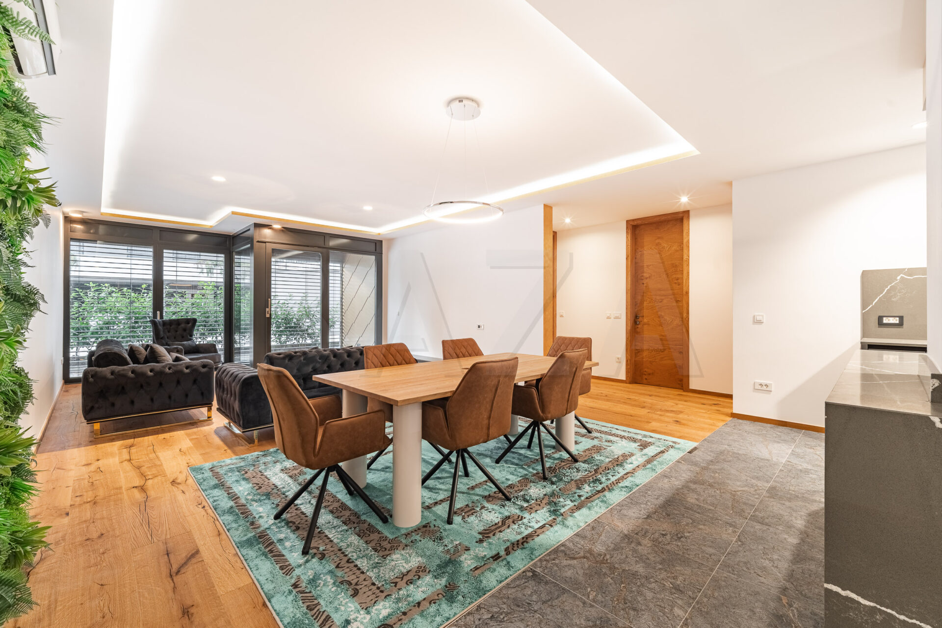 3-sobno stanovanje z atrijem, Ljubljana, Vič, zgrajeno l. 2009, popolnoma prenovljeno 2025, P./ 2. nad, v večstanovanjskem objektu, neto tlorisna površina 114,50 m2, bivalni prostor 107,30 m2, loža 7,20 m2, atrij 150,00 m2, 2x parkirno mesto v podzemni garaži. Cena: 3700,00 EUR/mesec.