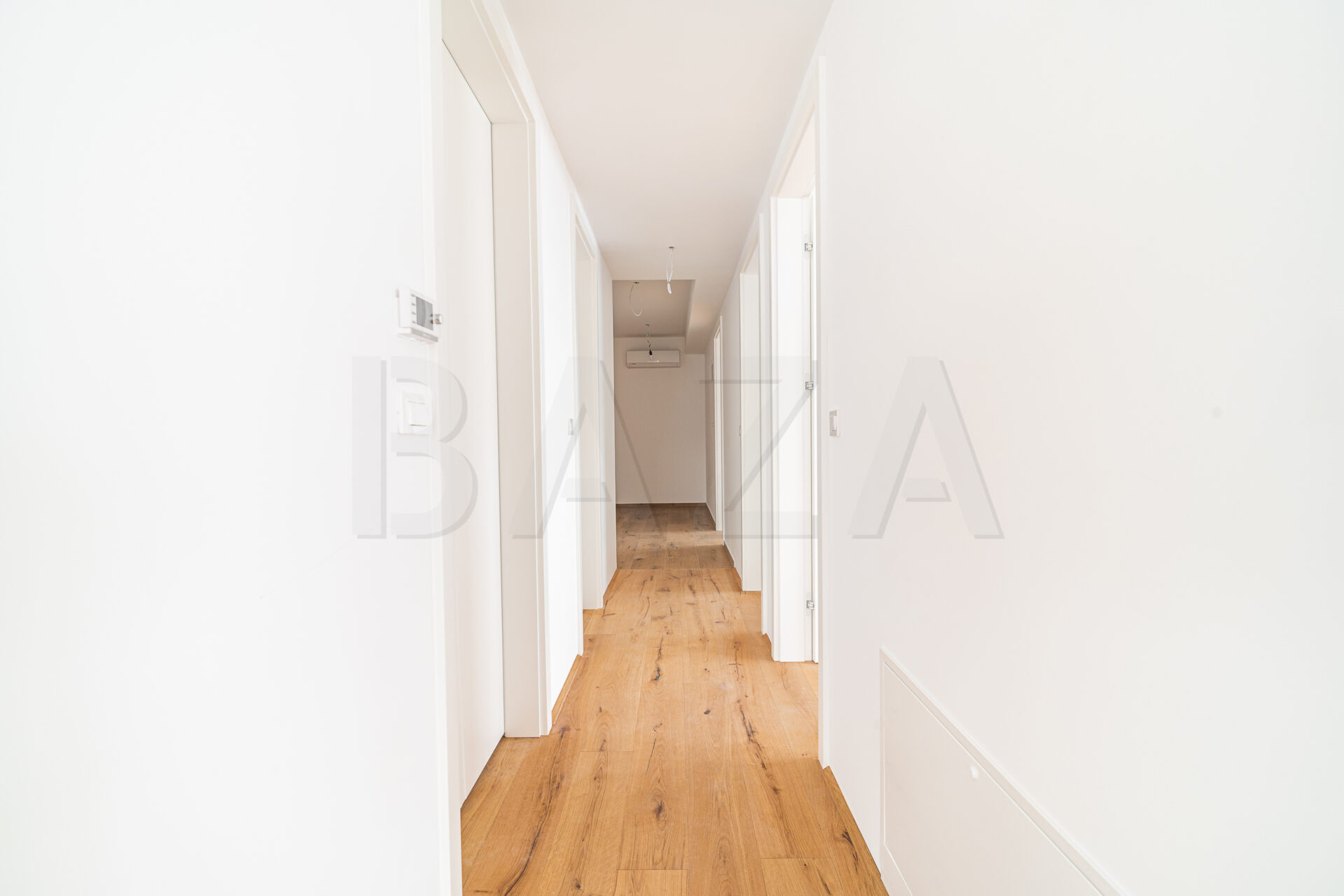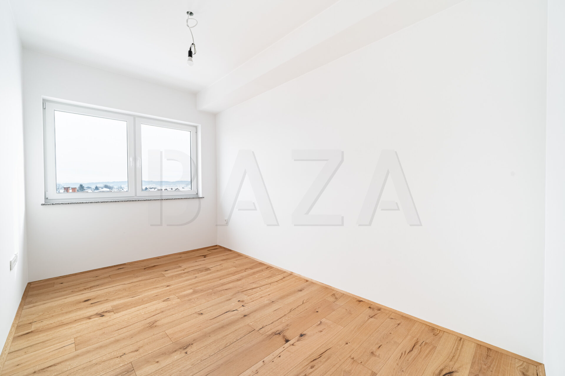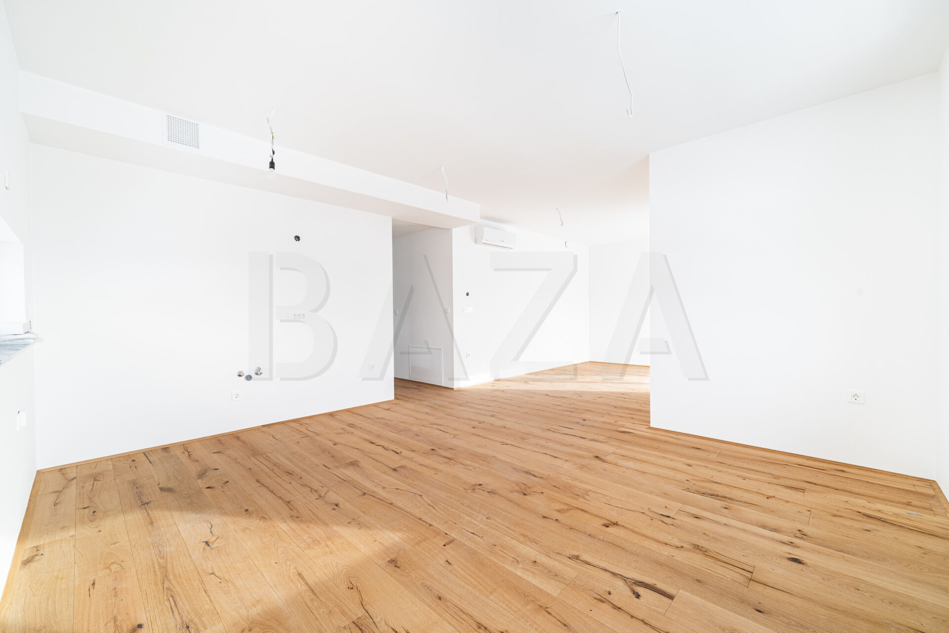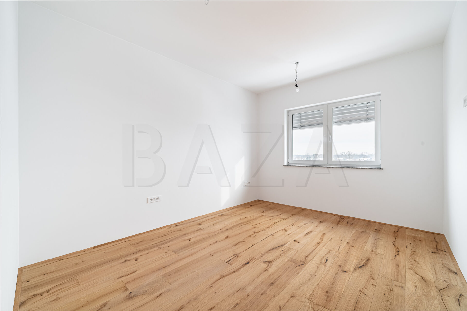 Tlorisna zasnova nudi funkcionalno razporeditev z veliko udobja in naravne svetlobe, ter obsega dnevni prostor s kuhinjo in jedilnico z izhodom na balkon, kopalnico, utility, spalnico ter dve otroški sobi. Oprema v kopalnici je priznane znamke vrhunske kvalitete – Villery Boch, Geberit.