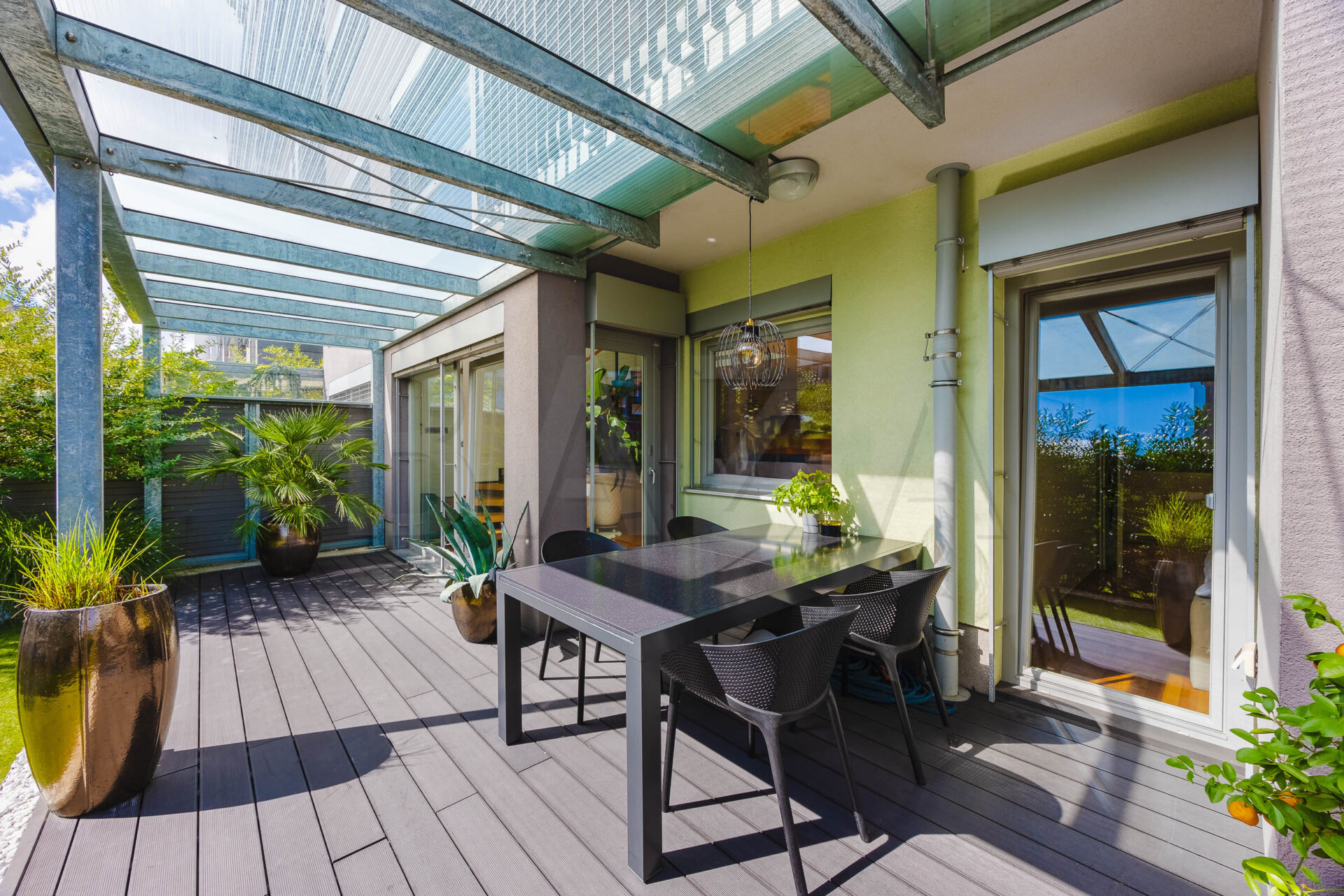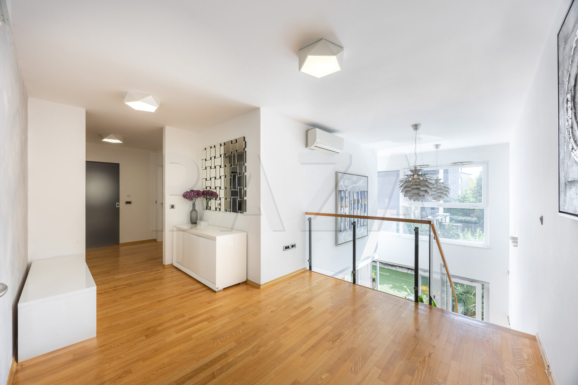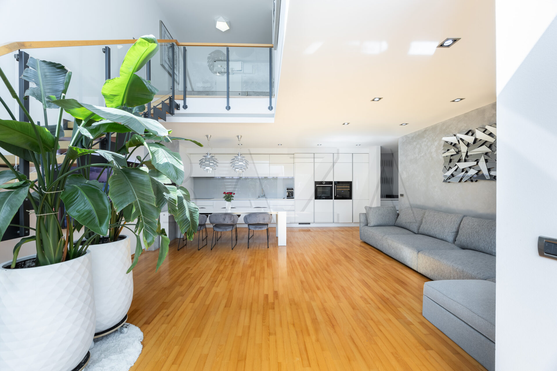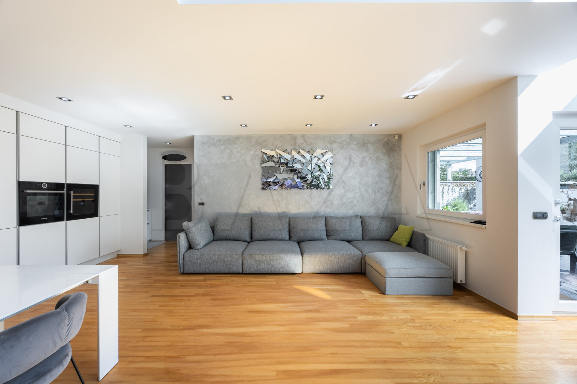Neto tlorisna površina stanovanja znaša 138,3 m², od tega bivalna površina meri 110,8 m². Stanovanju pripada tudi kletna shramba v izmeri 5,4 m² ter balkon in terasa v skupni površini 9,2 m². Atrij v velikosti 65 m² dodatno obogati stanovanje in povezuje udobje bivanja v hiši s prednostmi življenja v stanovanju. Orientacija proti jugu zagotavlja prijetno osončenost in naravno svetlobo čez ves dan.