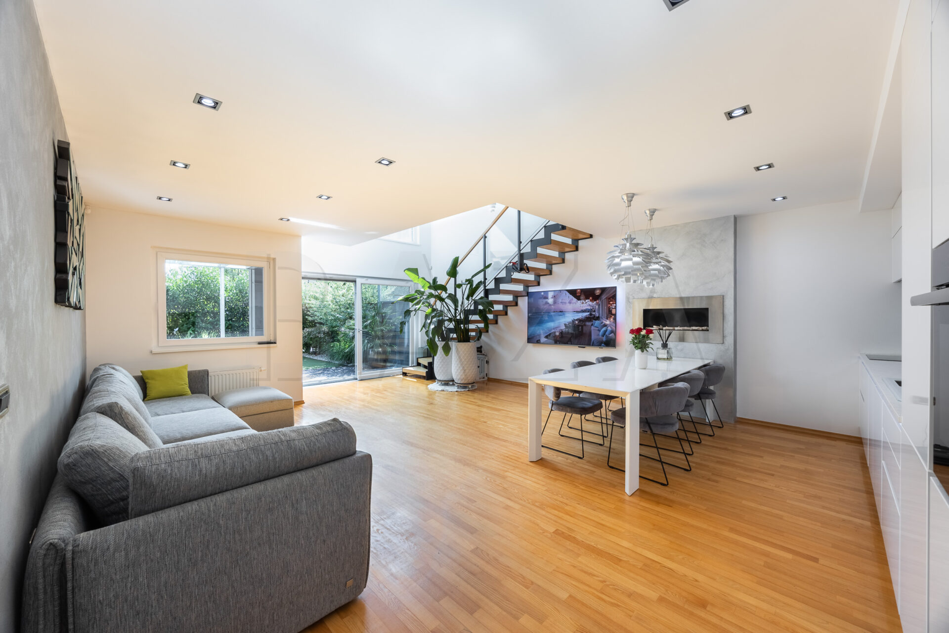 Na izjemni lokaciji v prestižnem stanovanjskem kompleksu Atrium v Ljubljani je naprodaj prostorno in razgibano 4-sobno stanovanje, ki združuje premišljeno arhitekturno zasnovo, veliko naravne svetlobe ter udobje urbanega bivanja v neposredni bližini mestnega središča. Stanovanje se nahaja v večstanovanjski stavbi, zgrajeni leta 2009, ki je opremljena z dvigalom in sodobnimi priključki. Okolica nudi vso potrebno infrastrukturo za udobno življenje, saj so v neposredni bližini šola, vrtec, trgovine, javni prevoz ter hiter dostop do mestne obvoznice in središča Ljubljane.