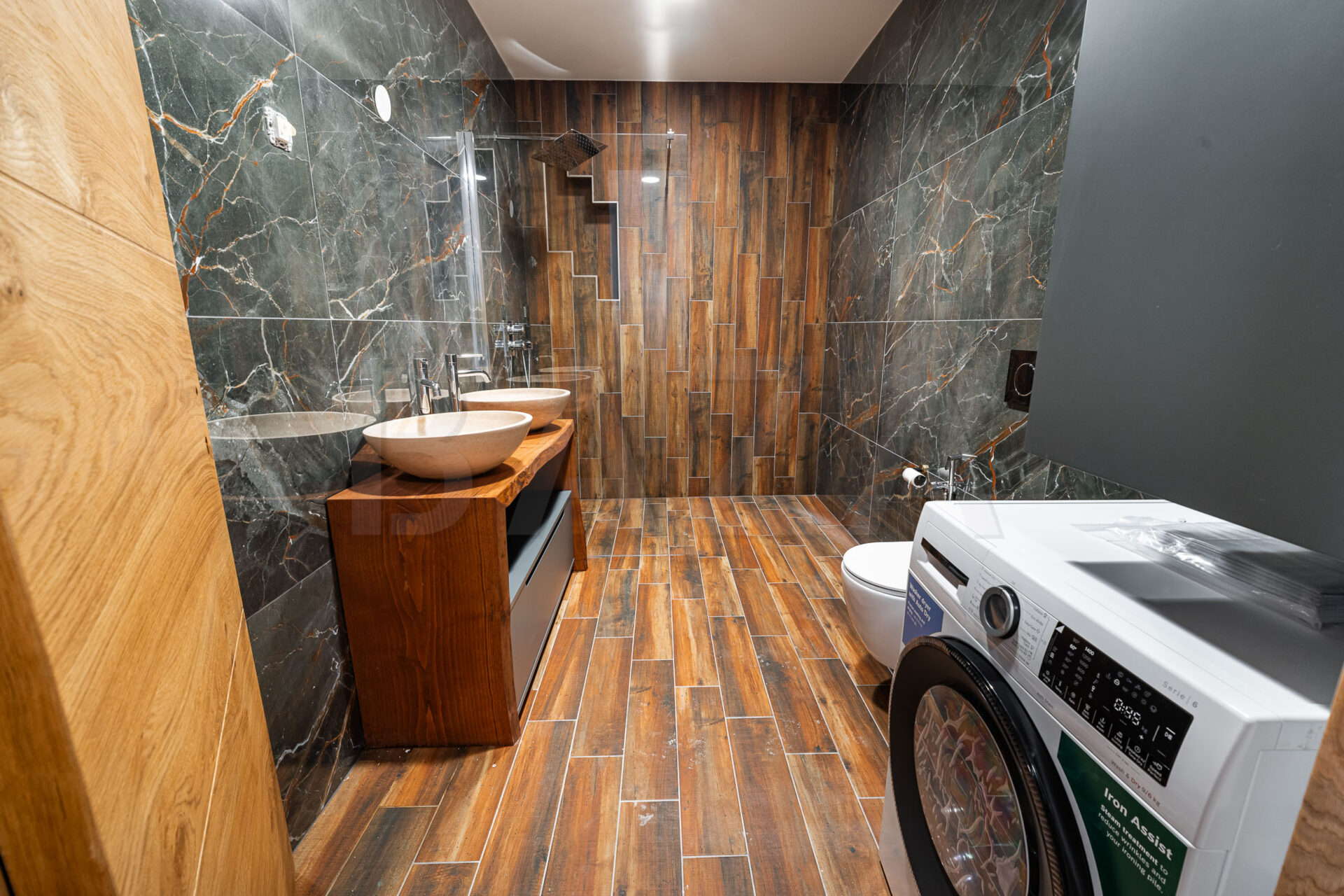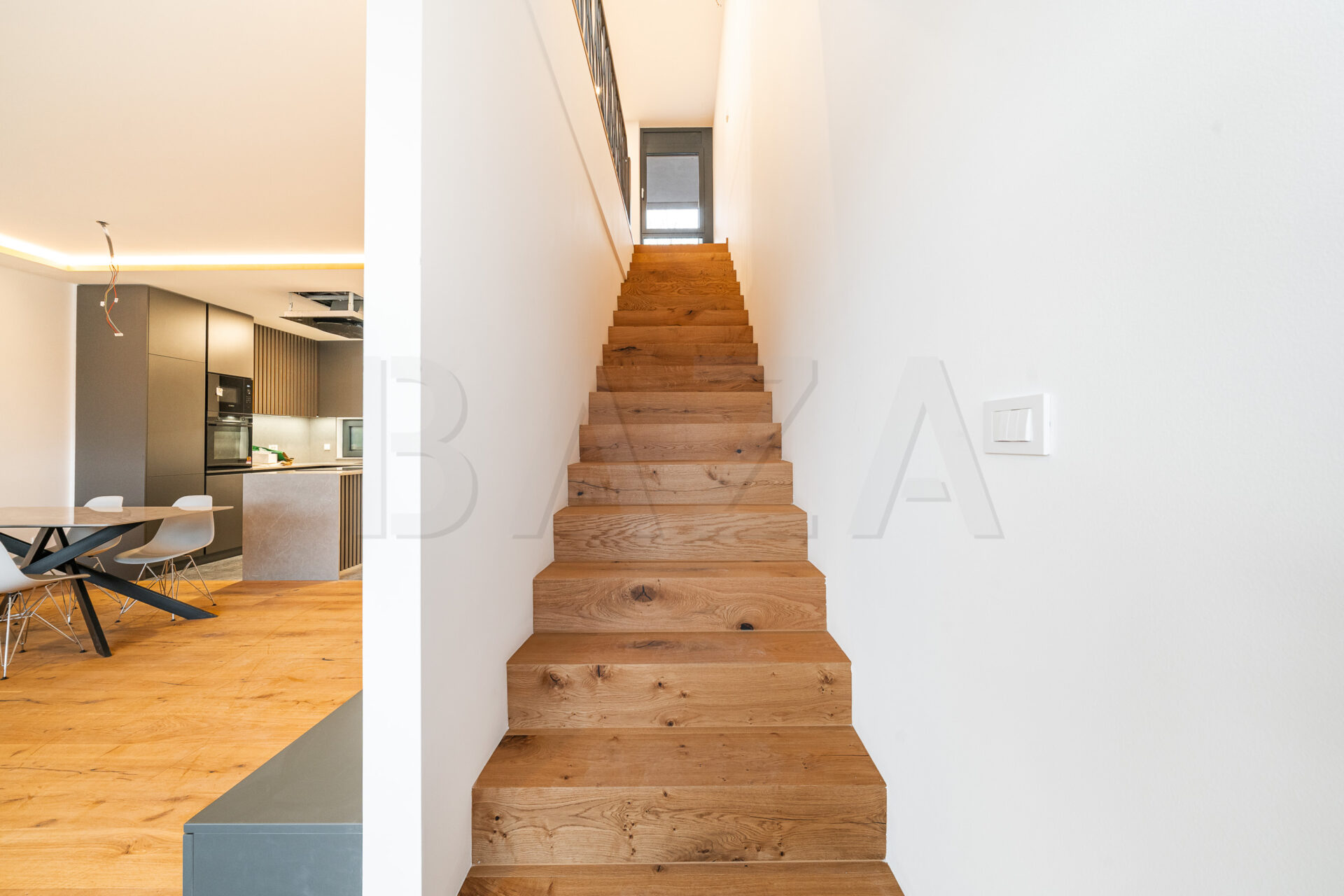 Stanovanje je opremljeno tudi s pametnimi inštalacijami, ki omogočajo upravljanje razsvetljave, temperature, zatemnitve in drugih funkcij preko telefona.