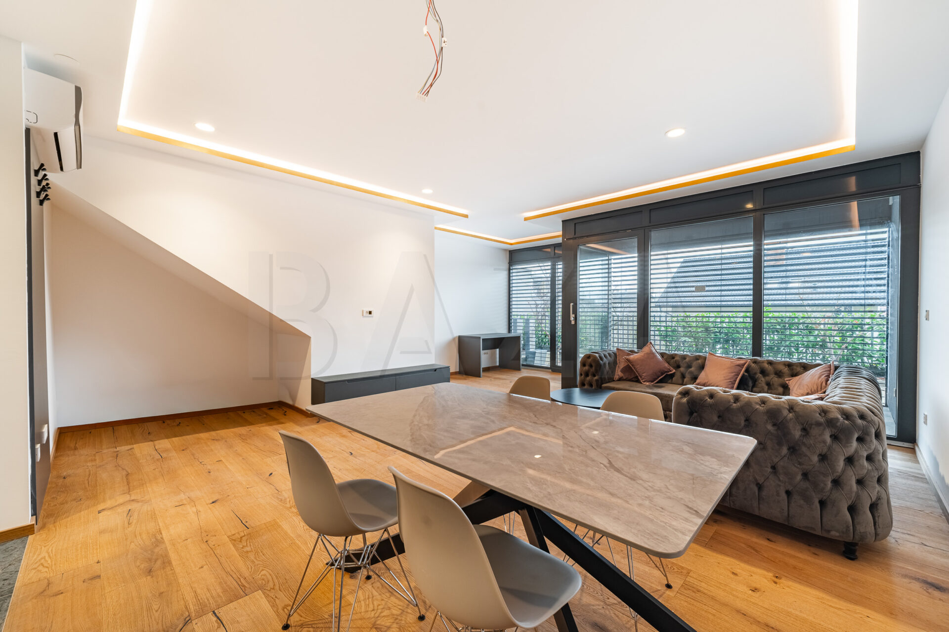 4-sobno dupleks stanovanje z atrijem, Ljubljana, Vič, zgrajeno l. 2009, popolnoma prenovljeno 2025, P.+ 1 / 2. nad. v večstanovanjskem objektu, neto tlorisna površina 122,30 m2, bivalni prostor 113,50 m2, loža 8,80 m2, atrij 25,00 m2, 2x parkirno mesto v podzemni garaži. Cena: 3000,00 EUR/mesec.