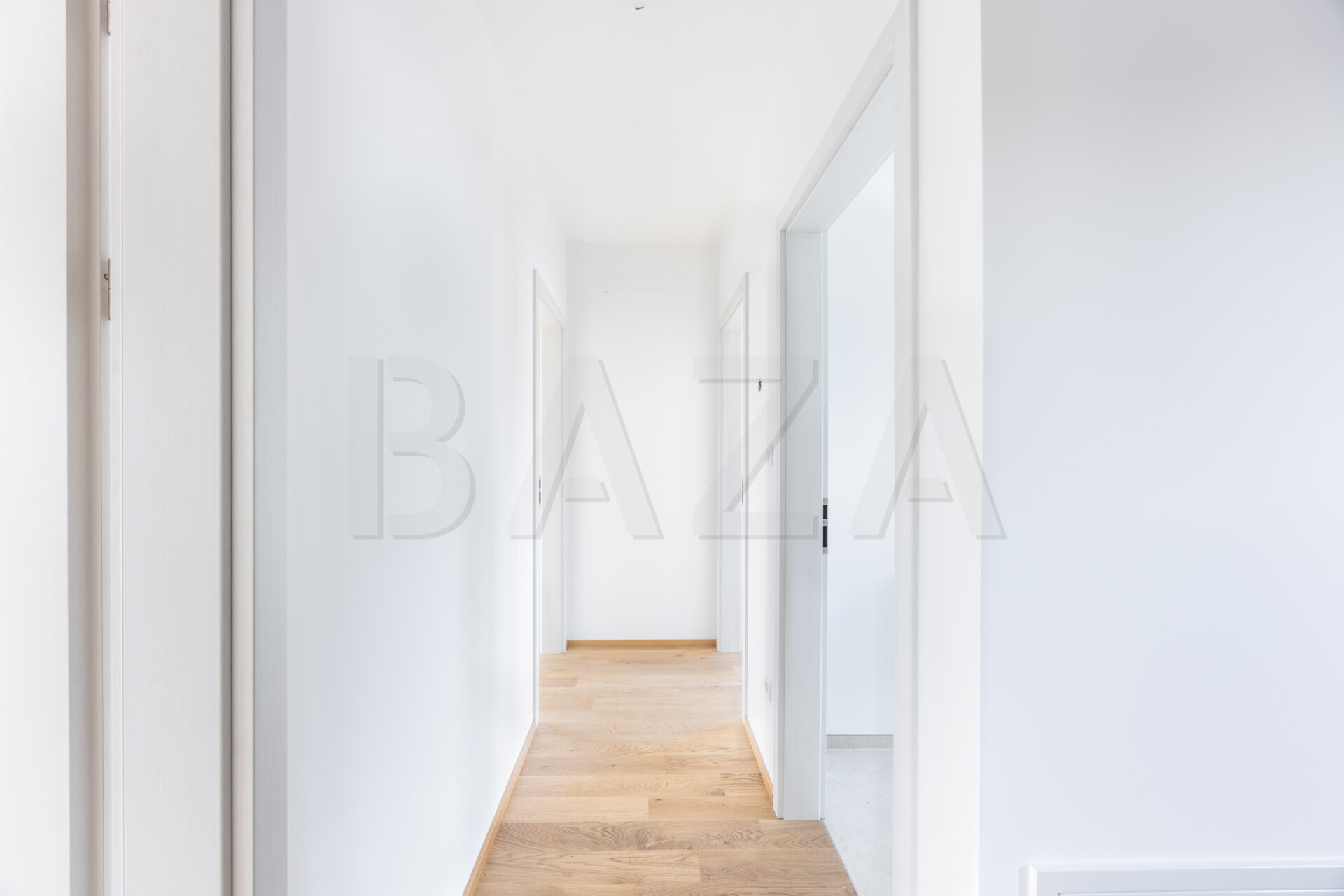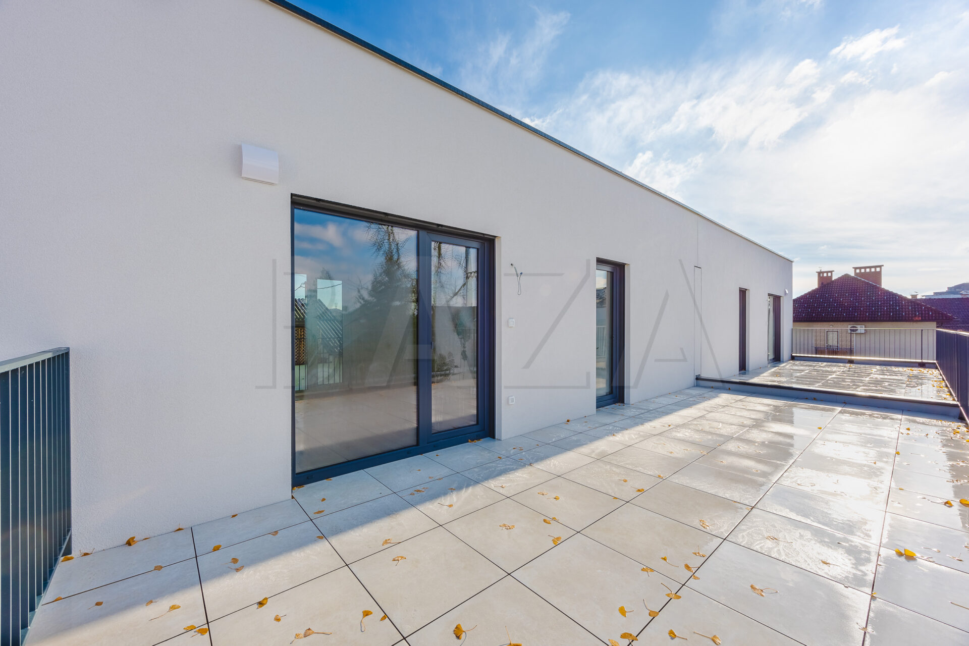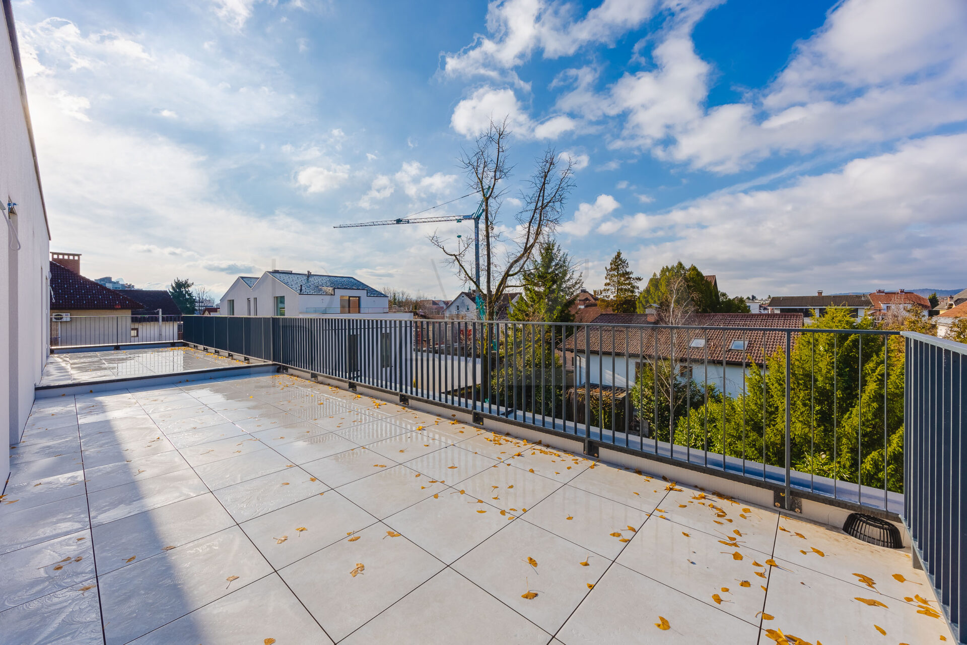 V nadstropju so nanizane 3 sobe, kopalnica in utiliti. V najvišji etaži je glavna spalnica s kopalnico in razkošna strešna terasa velikosti 30,40 m2 z odprtim pogledom. Lega stavbe SV/JZ omogoča veliko naravne svetlobe.