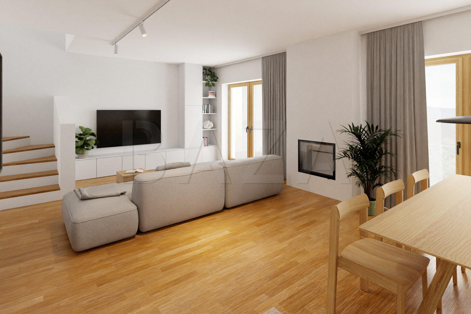 Objekt obsega tri etaže: pritličje, nadstropje in mansardo. V pritličju se nahajajo predprostor, sanitarije ter prostoren dnevno-bivalni del s kuhinjo in jedilnico, ki ima izhod na teraso. V nadstropju sta dve spalnici in kopalnica, opremljena s kadjo in prho. Mansarda nudi večji, svetel prostor primeren za dodatno spalnico, fitnes ali domačo pisarno.