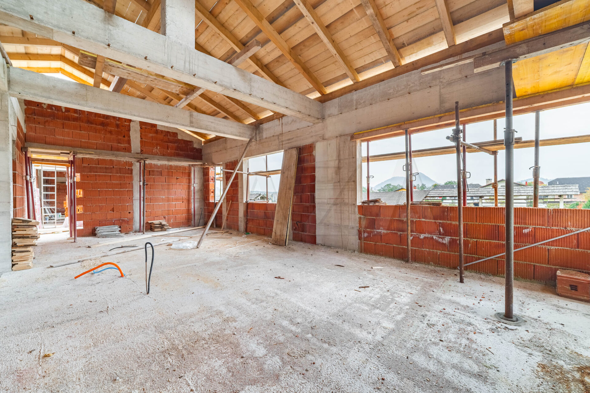 Hiša bo zgrajena do tretje podaljšane gradbene faze do konca leta 2025. Gradnja je klasična, opečnata, z armiranobetonskimi vezmi na armiranobetonski temeljni plošči in medetažnimi ploščami iz armiranega betona. Strešna konstrukcija je lesena, kritina opečnati zareznik. Fasada bo kontaktna z 20 cm toplotne izolacije, okna panoramska PVC s trojno zasteklitvijo. Predvideno je ogrevanje na toplotno črpalko zrak-voda. Komunalni priključki so urejeni, gradbeno dovoljenje je pravnomočno.