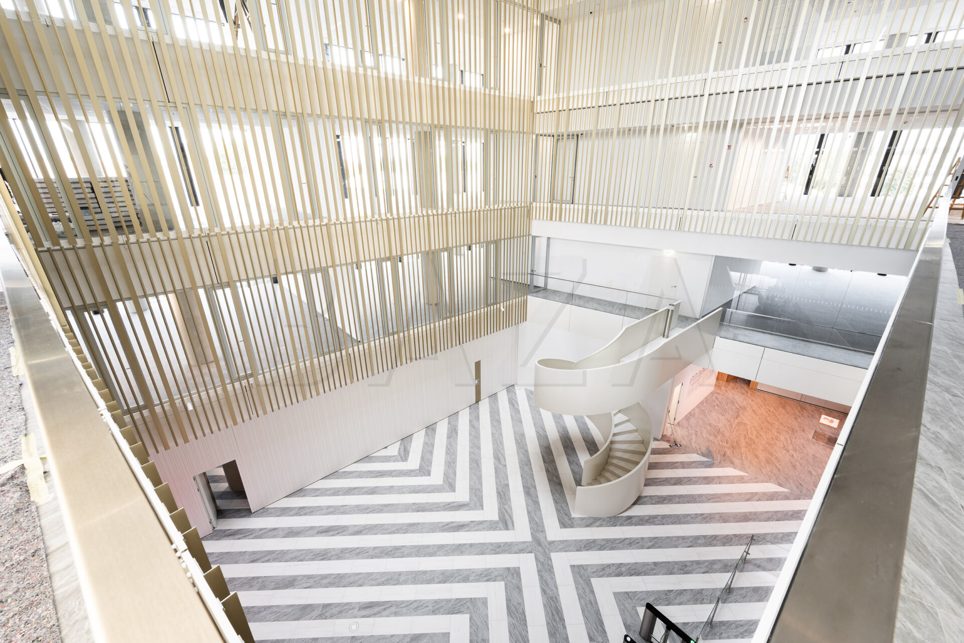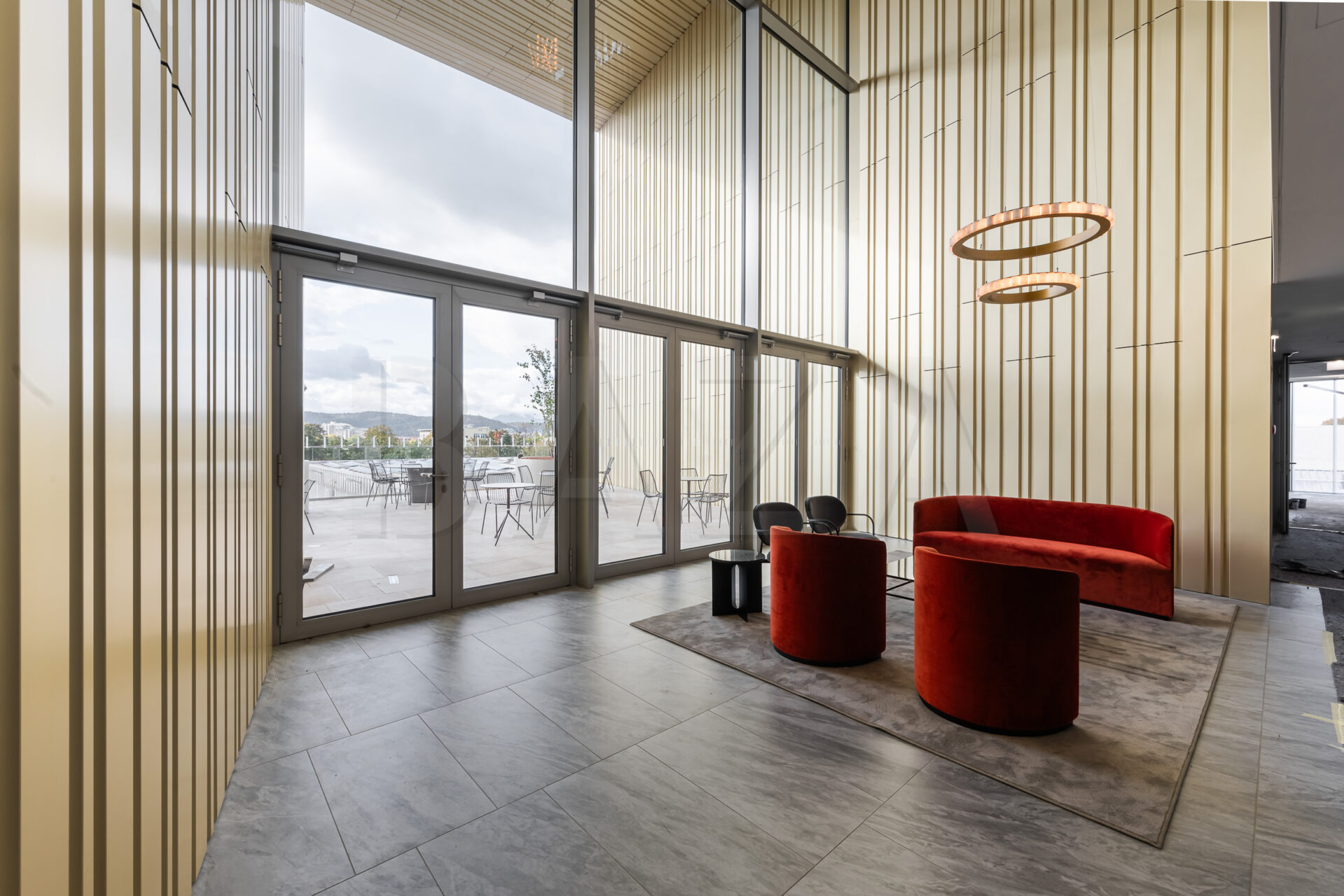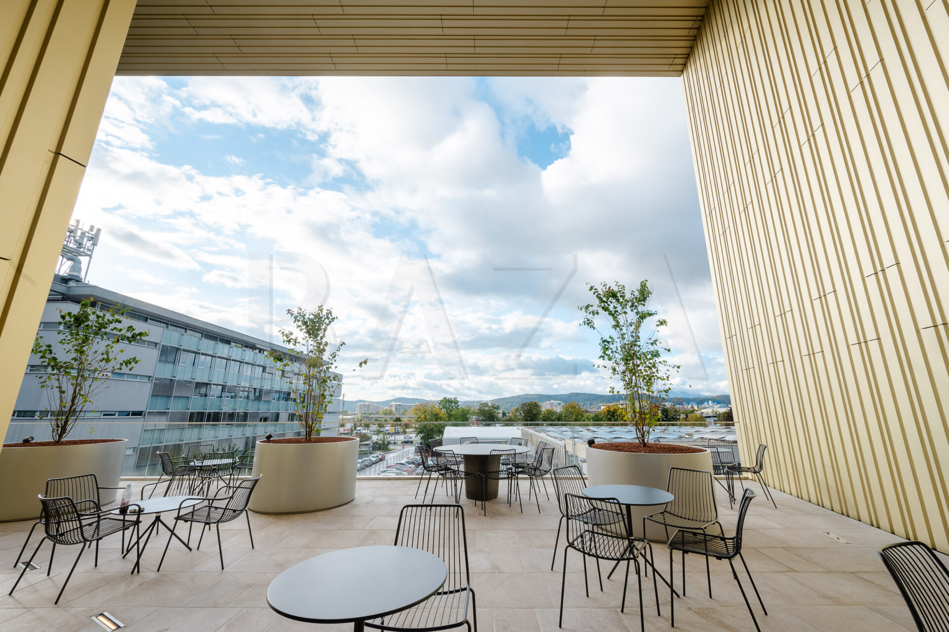 Poslovno stavbo odlikuje prijazna, topla, reprezentativna in sodobna notranjost z atrijem, ki zagotavlja naravno svetlobo vsem poslovnim prostorom.