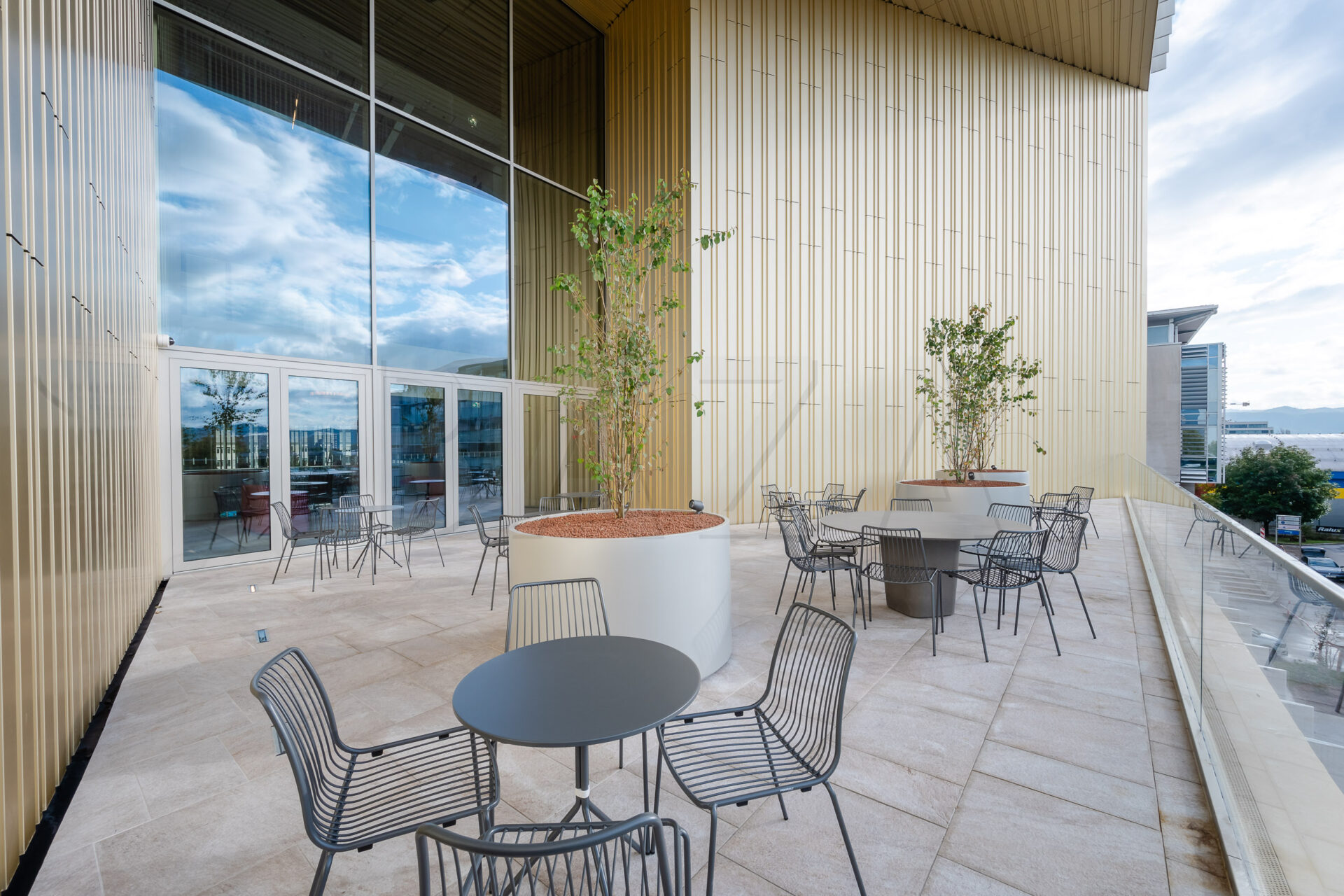 V pritličju se nahajajo kavarna in restavracija ter konferenčne dvorane, v 2. in 6. nadstropju se nahaja terasa, na vrhu stavbe pa zelena streha, ki pripomore k unikatnemu in prijetnemu vzdušju. Stavba ima tudi rekreacijski prostor z urejenimi garderobami in tuši, namenjenimi le uporabnikom stavbe. V parkirni hiši je za najem na voljo 214 parkirnih mest, poslovna stavba pa ima tudi pokrito kolesarnico. Objekt razpolaga tudi z zunanjimi parkirnimi mesti in ločenimi parkinimi mesti za stranke. V bližini so na voljo trajnostne alternative prihoda (javni prevoz, souporaba vozil in koles ter električne polnilnice).