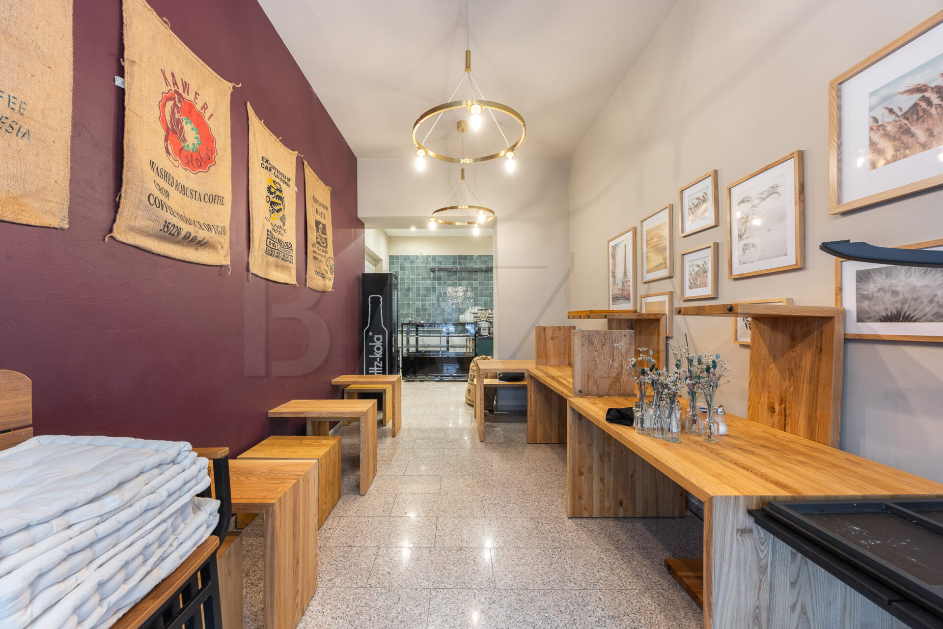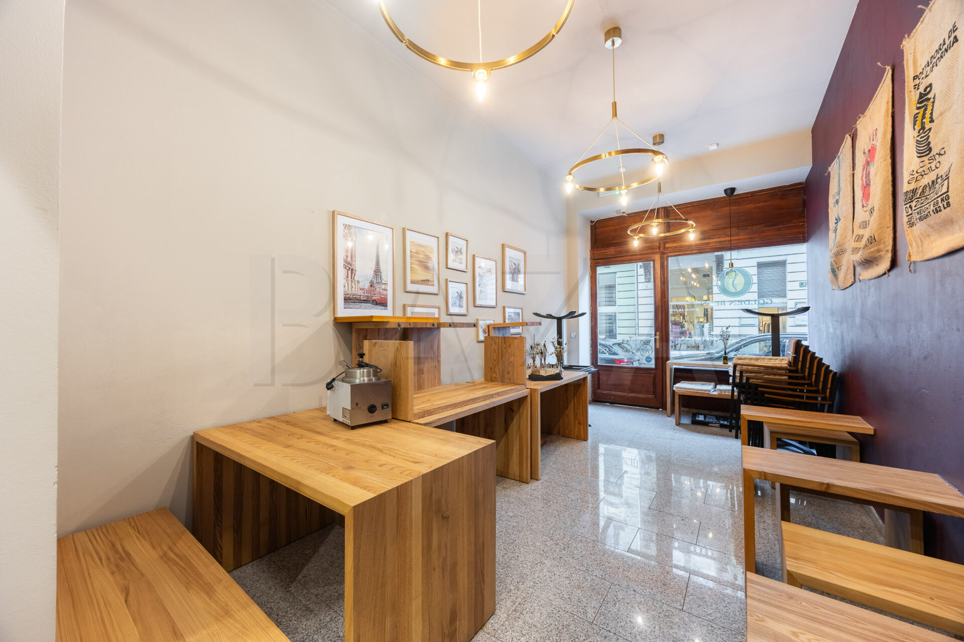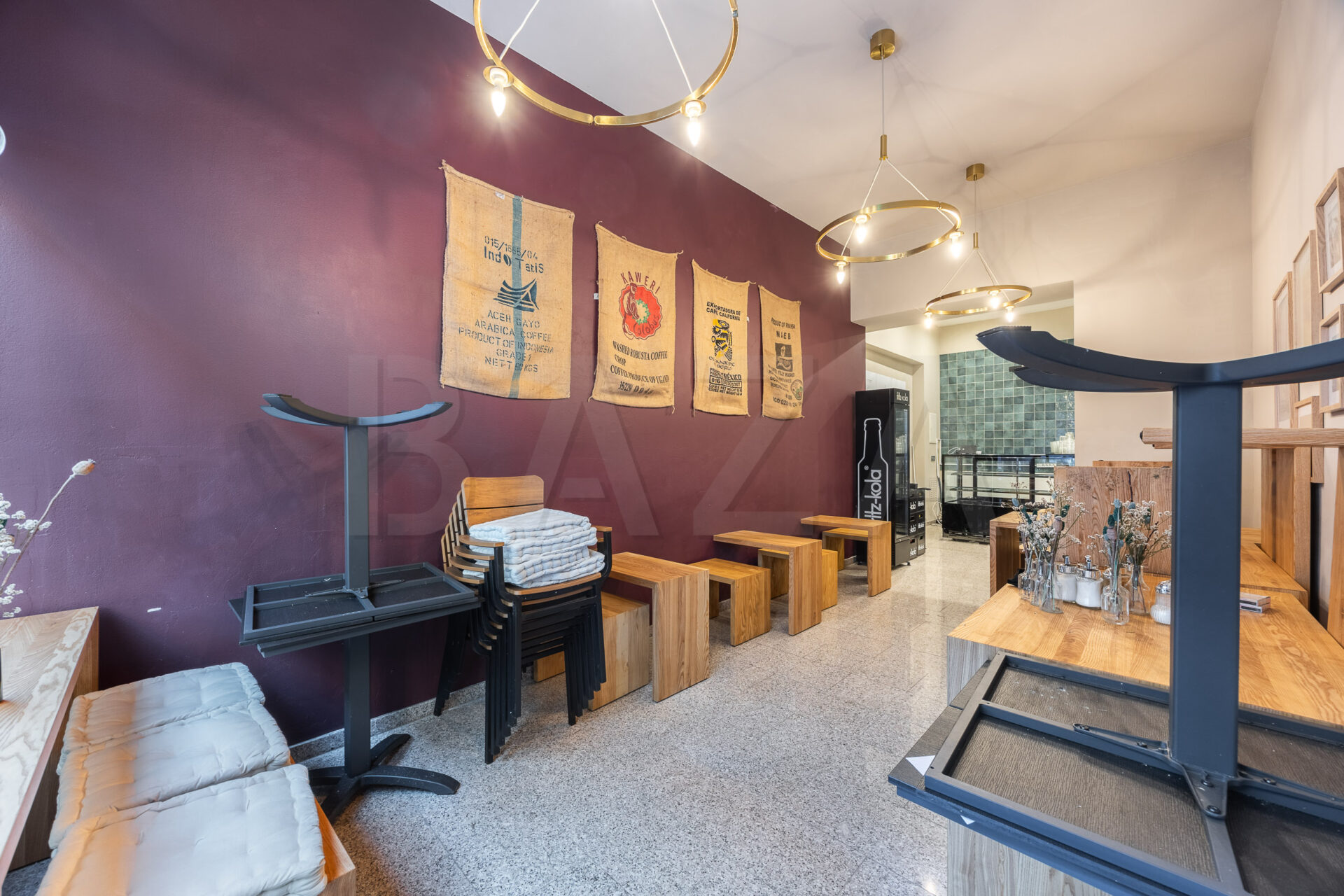 Poslovni prostor je orientiran proti severu in v pritličju obsega glavni prostor z izložbo, v kleti pa se nahaja skladišče/prostor za čajno kuhinjo ter sanitarije. Prostor ima urejeno prezračevanje.