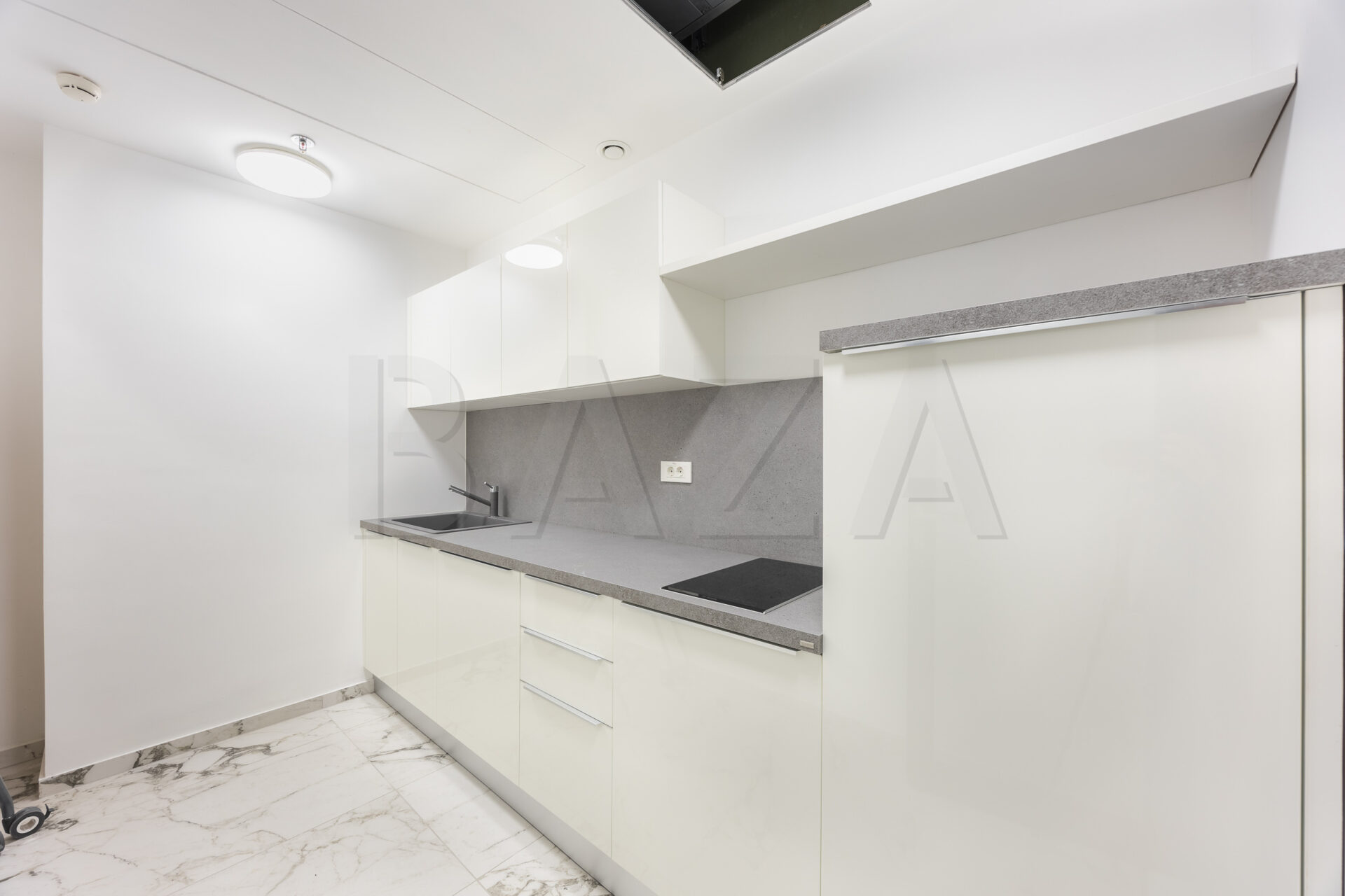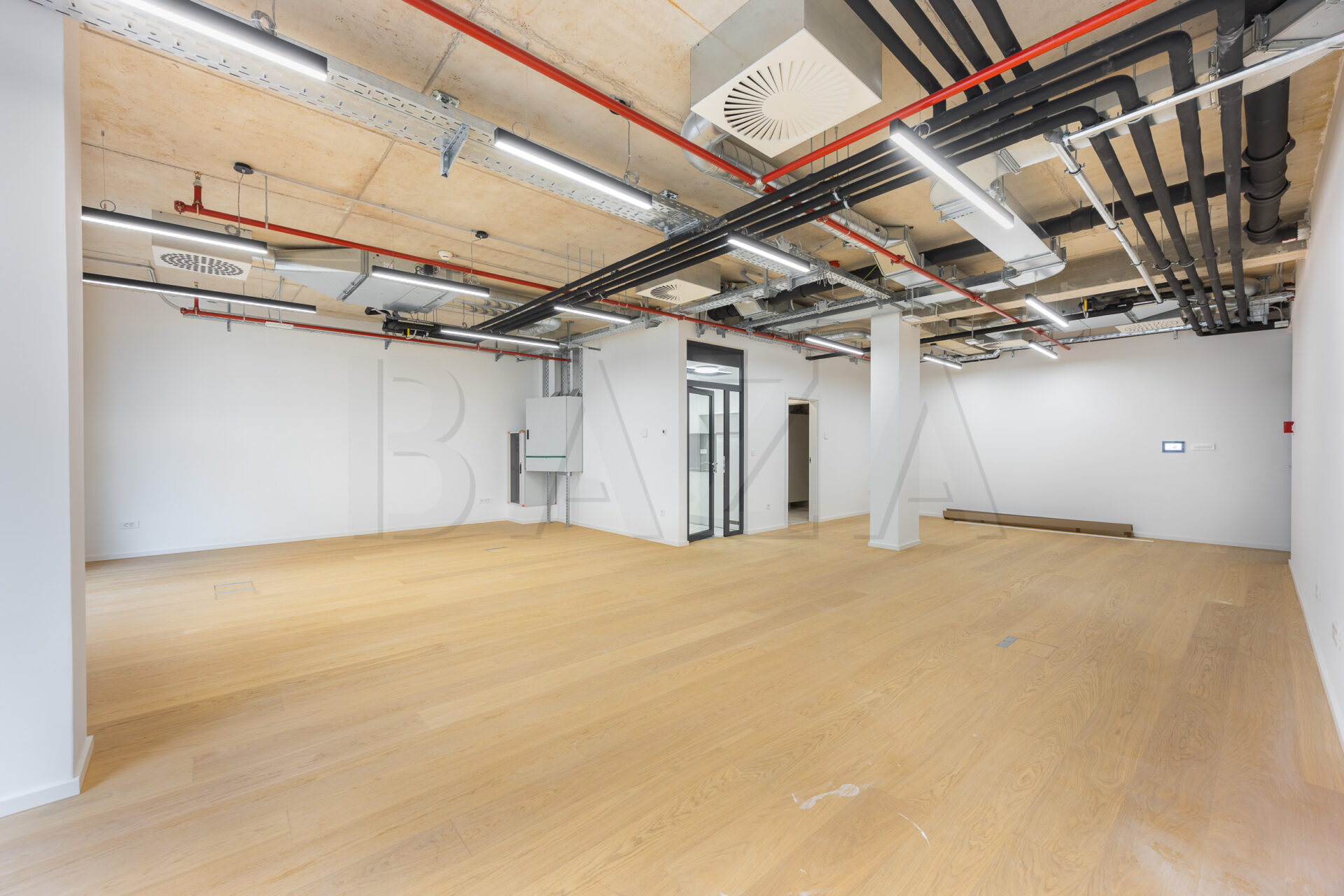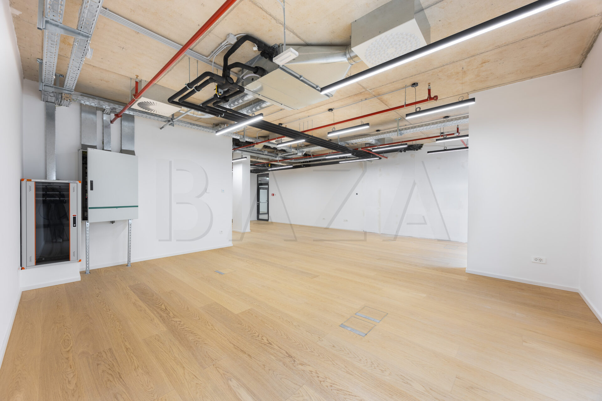 Prostor se nahaja v drugem nadstropju in obsega osrednji prostor, čajno kuhinjo in sanitarije. V prostoru je optični internet, talne vtičnice, panoramska okna, senčila na električni pogon ter senzorji temperature in vlage. Možnost najema parkirnih mest v garaži stavbe za 200 EUR + DDV/mesec. Na 30 m2 notranje površine je predvideno eno parkirno mesto.
