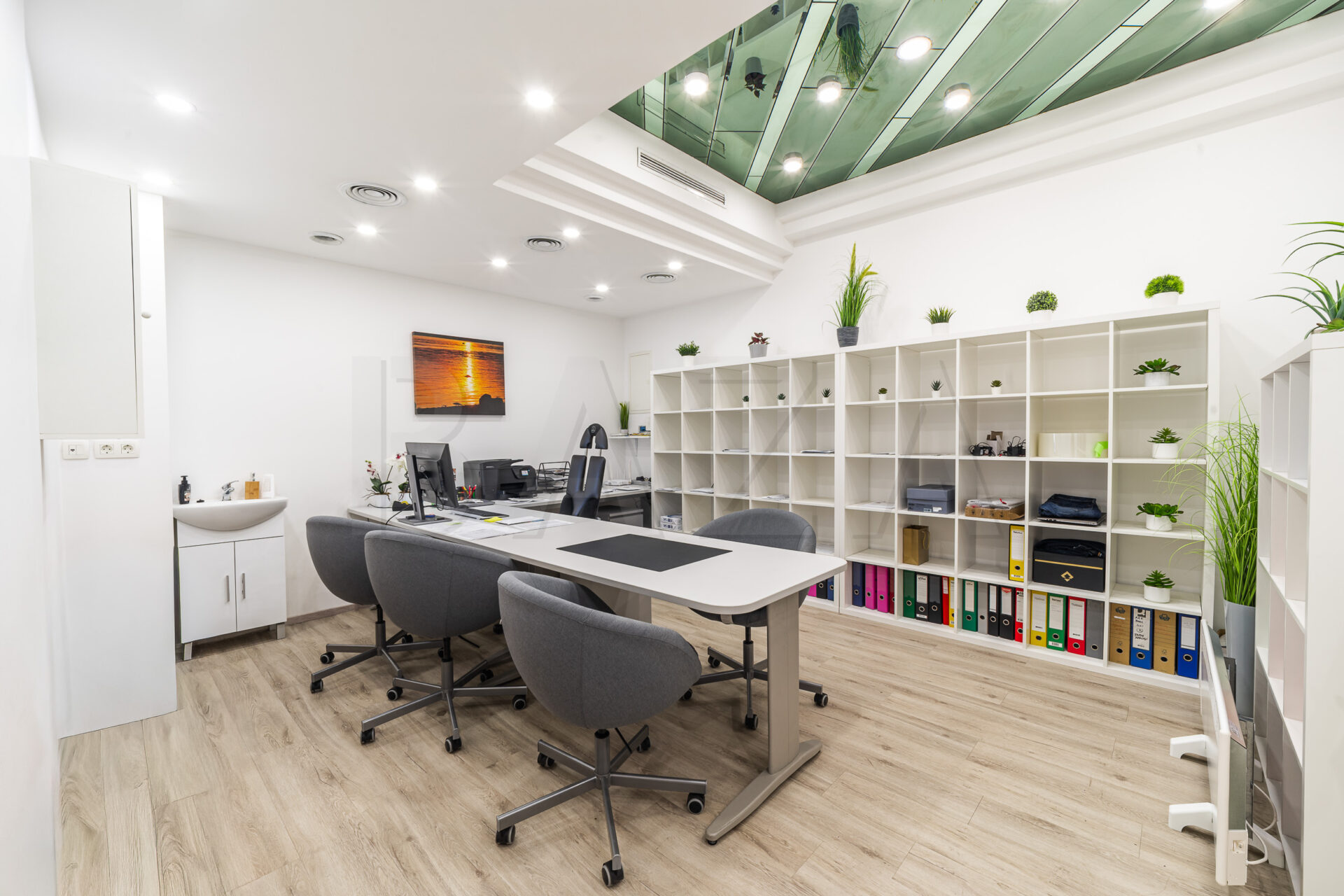 V prvi enoti je manjša pisarna s shrambo, ki jo je možno preurediti v sanitarije, v drugi enoti pa se nahajata čakalnica in pisarna. Večja pisarna je trenutno oddana v najem do konca leta. Možno je podaljšanje najema ali uporaba prostora za lastno dejavnost.