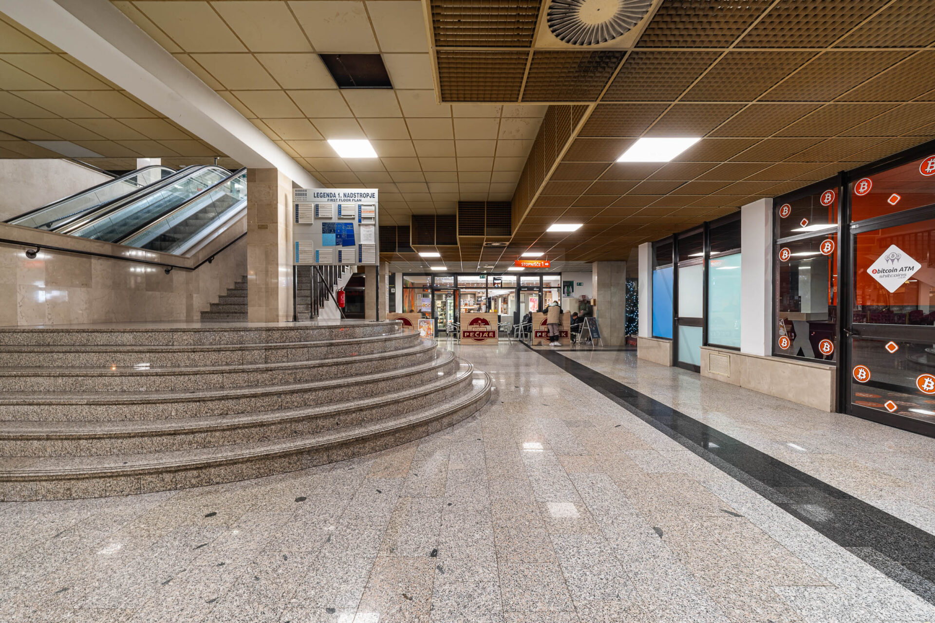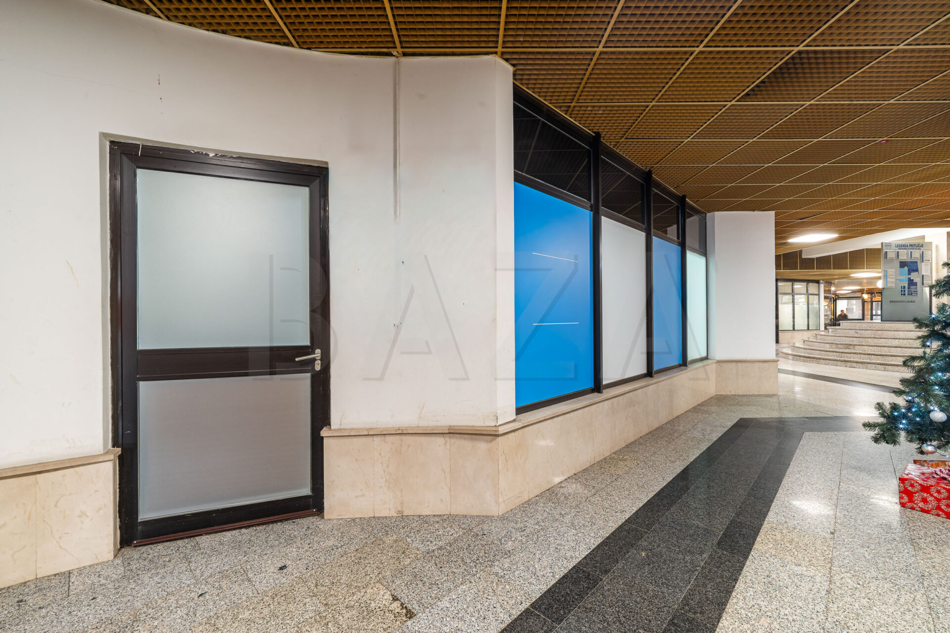 Poslovni prostor se nahaja tik ob glavnem vhodu v stavbo in je trenutno razdeljen na dve ločeni enoti, pri čemer ima vsaka enota svoj samostojen vhod.