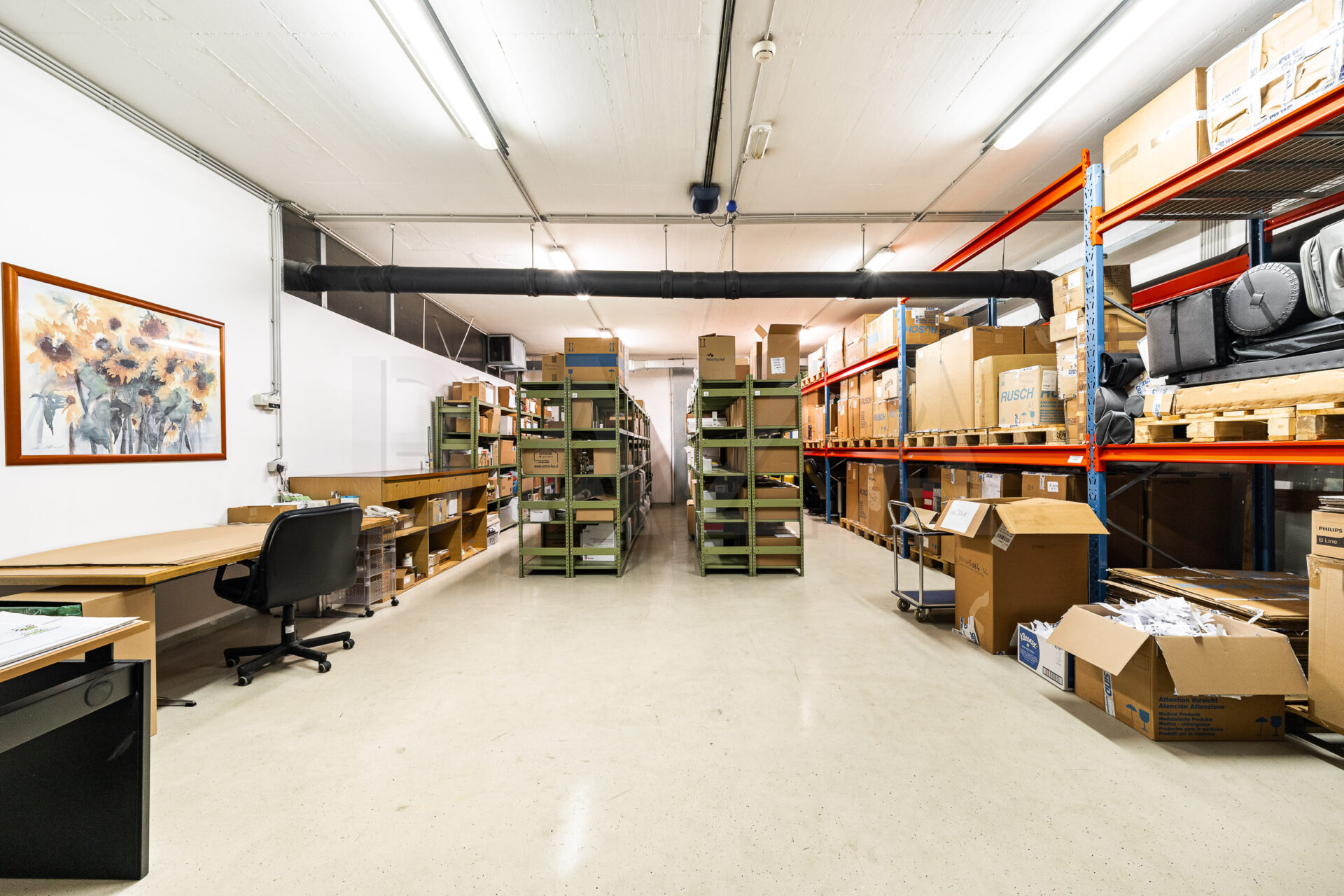 Prostor je tehnično odlično opremljen – senzorji za vlago in temperaturo, prezračevanje in požarni alarmi zagotavljajo pogoje v skladu z dobro skladiščno prakso, primerno tudi za shranjevanje medicinskih proizvodov, kjer je zahtevana najvišja stopnja urejenosti.