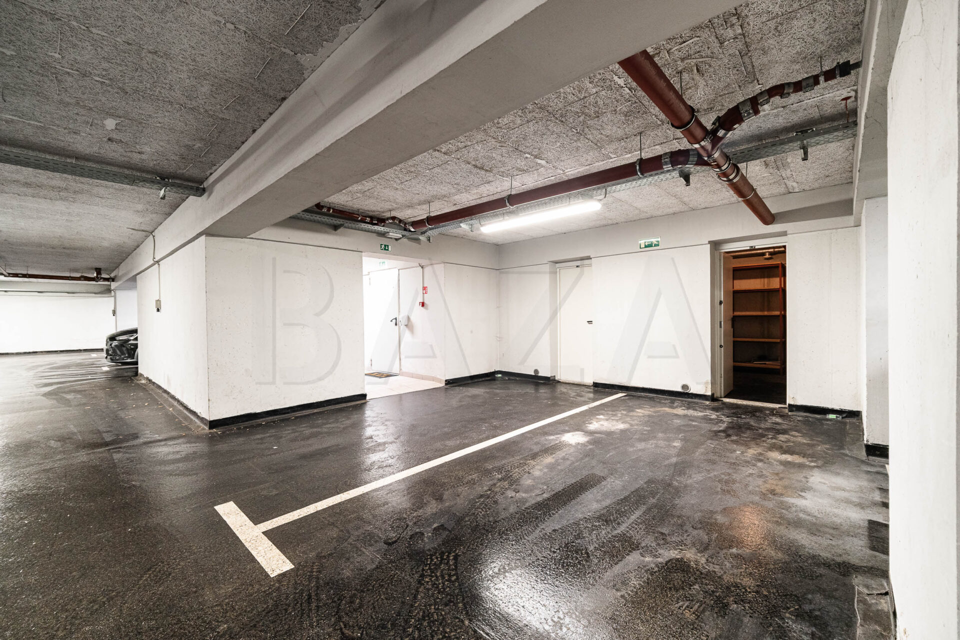 Poleg enega lastniškega parkirnega mesta v kletnem delu stavbe je parkiranje možno tudi pred stavbo ter na javnih parkiriščih v okolici.