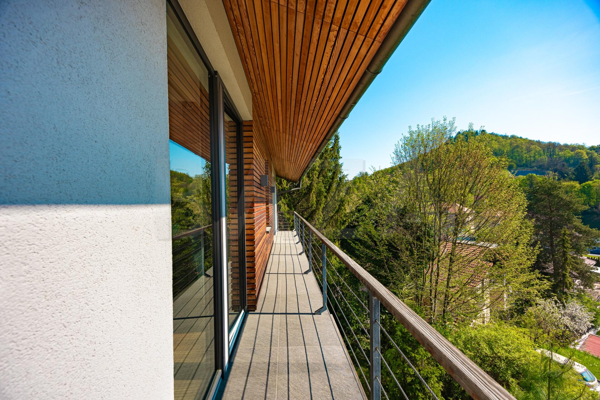 V zgornji etaži se nahaja glavna spalnica z lastno kopalnico ter dodatnim prostorom za sprostitev ali delo z izhodom na balkon. Poleg tega sta v nadstropju še dve sobi, dodatna kopalnica ter večji odprt prostor – galerija, ki ga je možno prilagoditi različnim potrebam, kot so igralnica, knjižnica ali delovni kotiček.