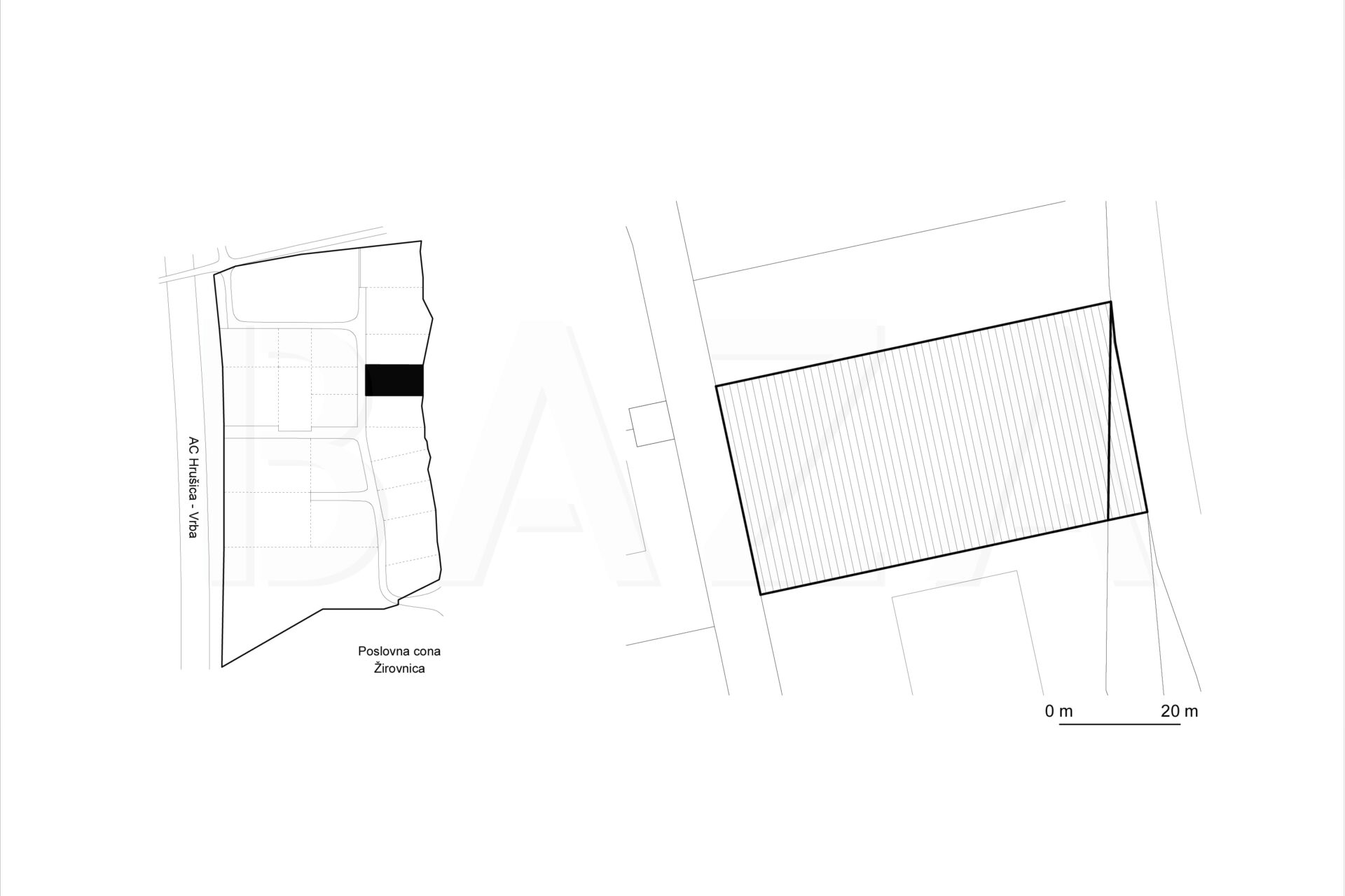 Mogoč je takojšen pričetek projektiranja ter skladno s tem pričetek gradnje objekta. Gradnja objektov je dovoljena skladno z Odlokom o OPPN za območje obrtno-poslovne cone Žirovnica. Na predmetnem zemljišču je možno graditi objekt dimenzij 25,00 m x 23,00 m, etažnosti K+P+2. Maksimalna bruto površina fundusa objekta znaša 575,00 m2. Maksimalna višina objekta je 13 m nad koto pritličja, pri čemer je kota pritličja lahko največ 45 cm nad koto uvoza na gradbeno parcelo.